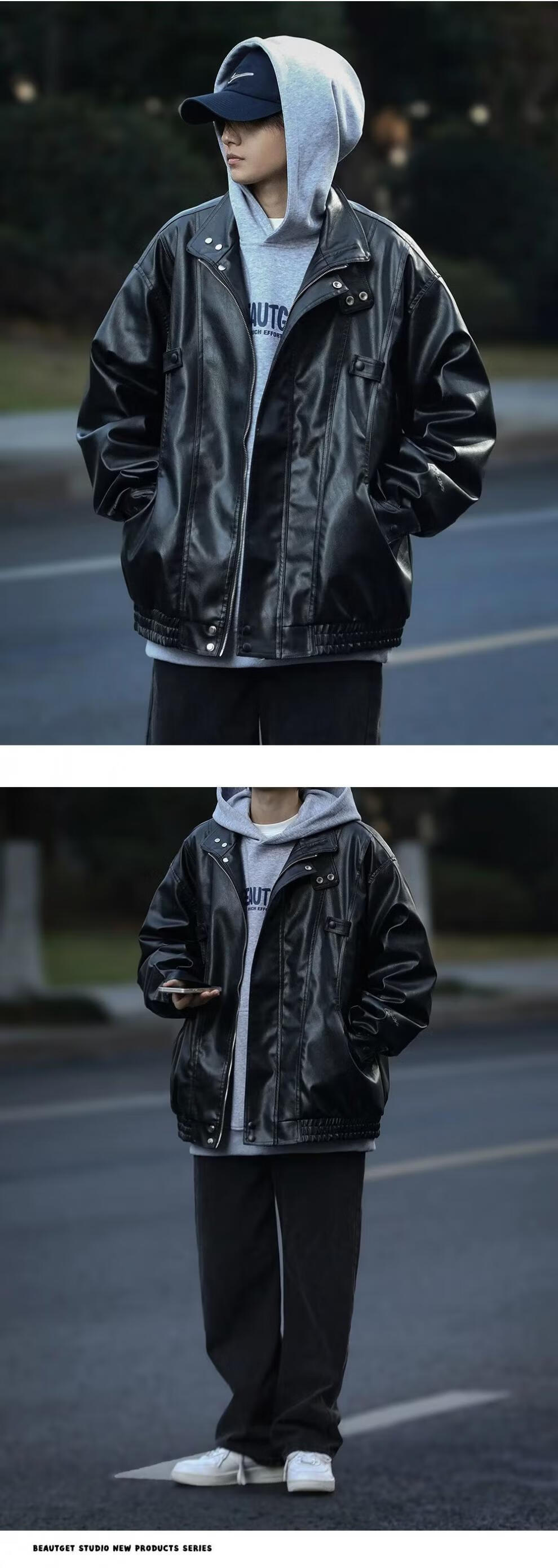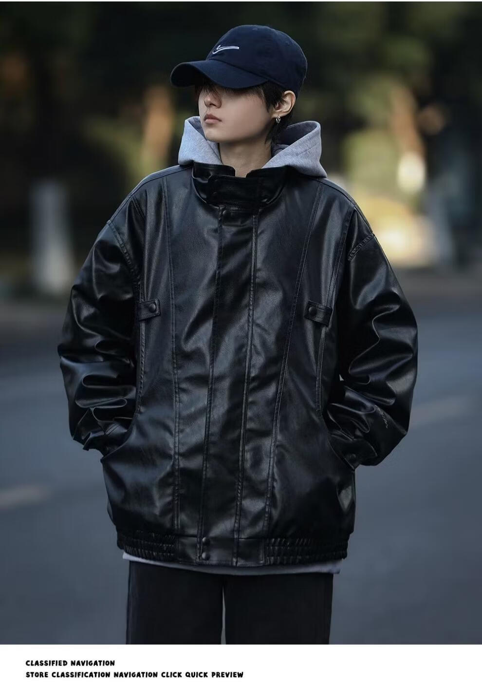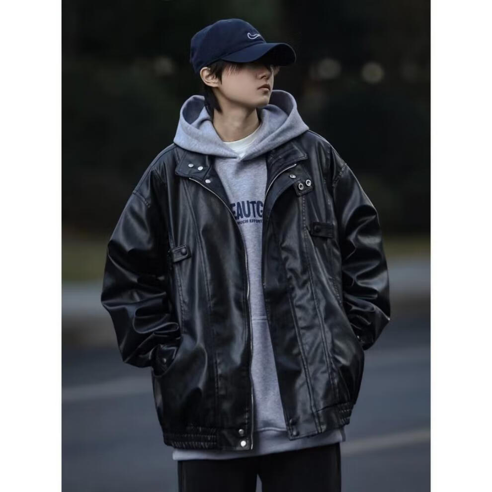 迪伽达美式复古夹克男韩版潮流秋冬新款皮衣男ins宽松加绒保暖黑色外套 WYXH-Y7714黑色 常规 XL [建议105斤-120斤】