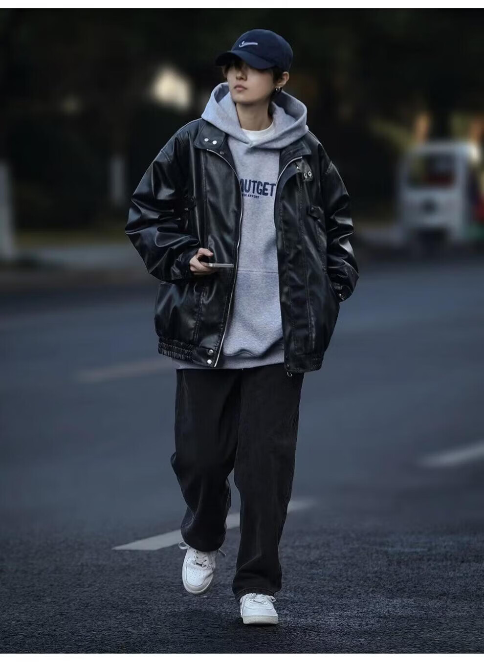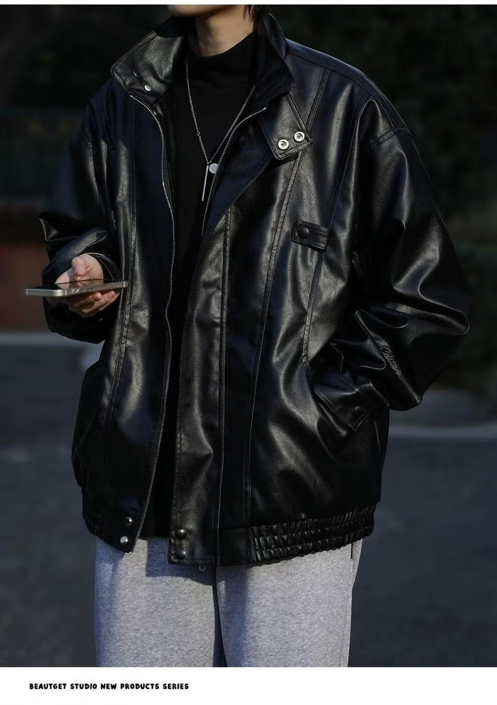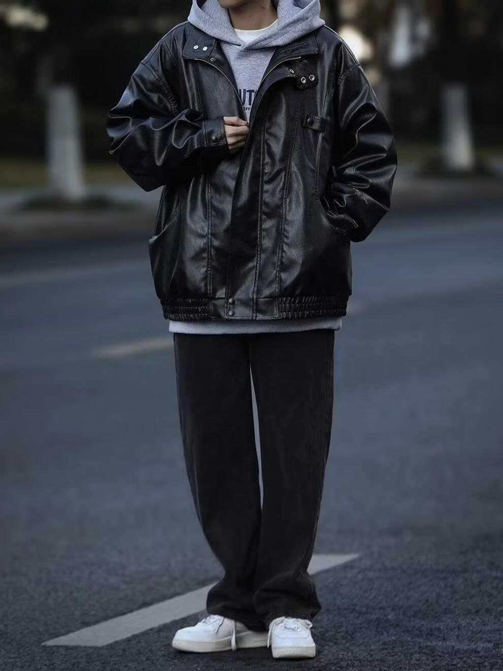迪伽达美式复古夹克男韩版潮流秋冬新款皮衣男ins宽松加绒保暖黑色外套 WYXH-Y7714黑色 常规 XL [建议105斤-120斤】