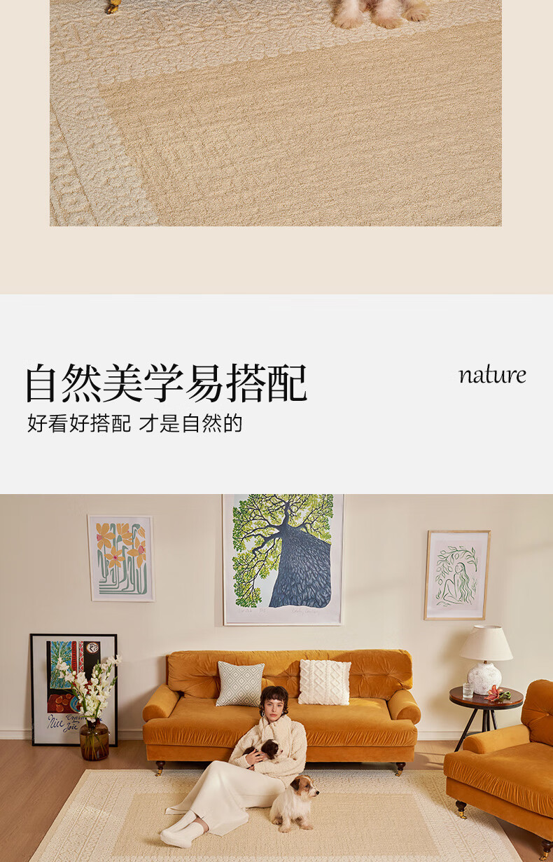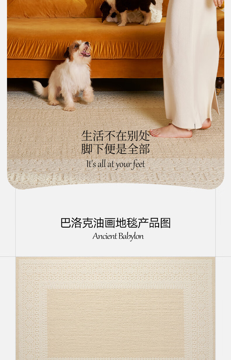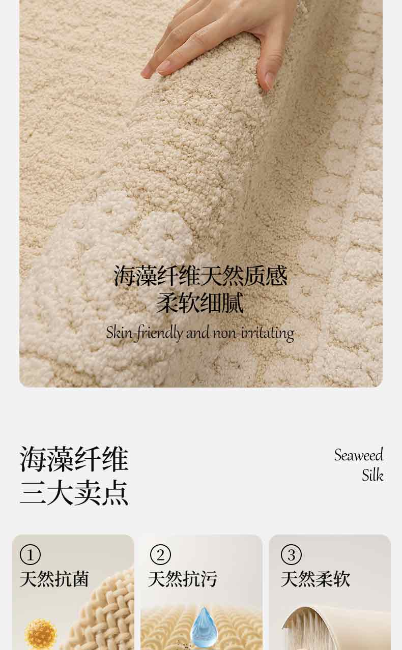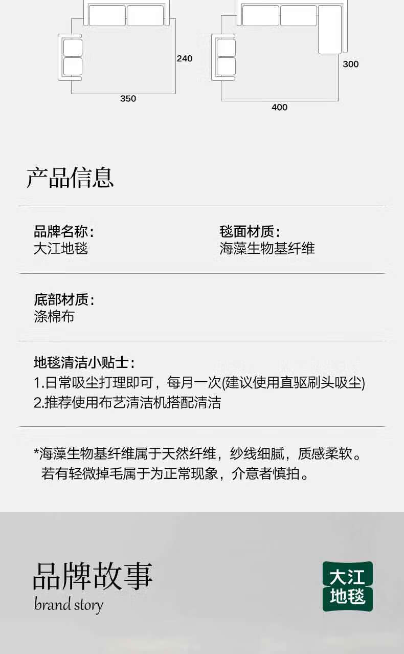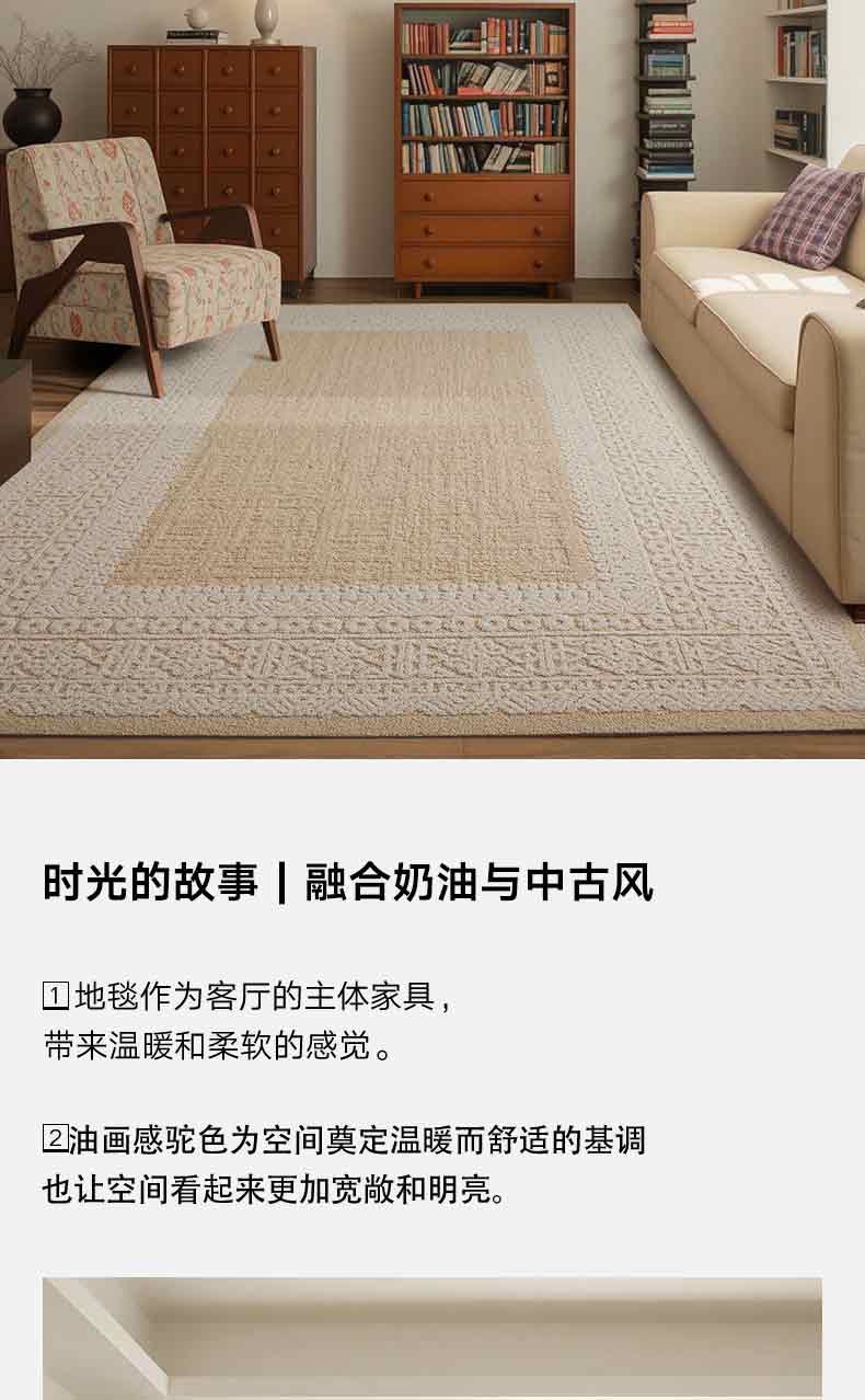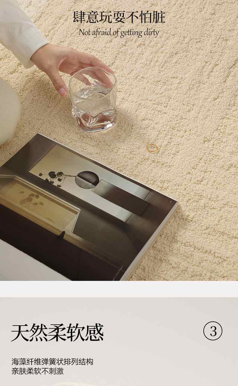 大江海藻丝地毯客厅高级感免洗轻奢卧室地毯大宅标配沙发地毯大面积 皇家宴会厅 140cm*200cm 1件
