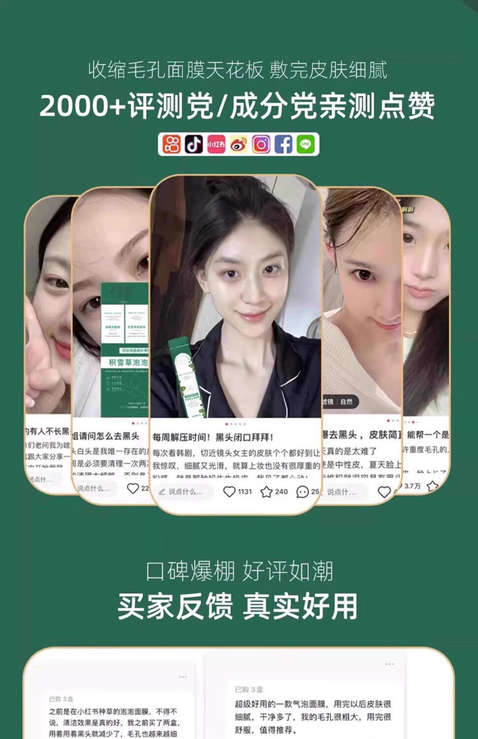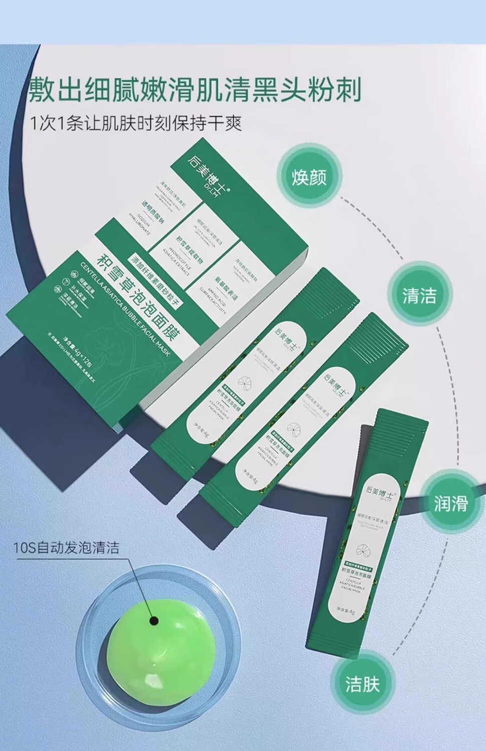 后美博士积雪草泡泡面膜收缩毛孔去黑头粉刺深层清洁涂抹式女男士正品 10盒【重度清洁】买5送5 发10盒