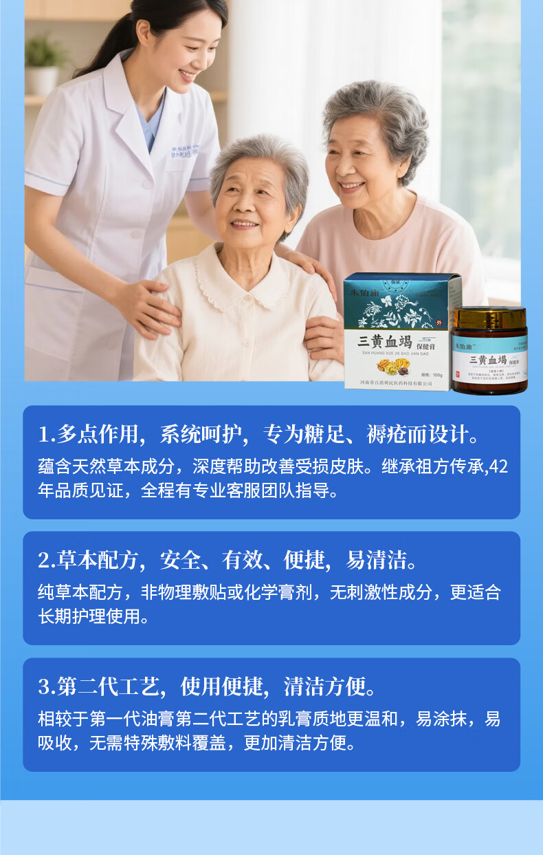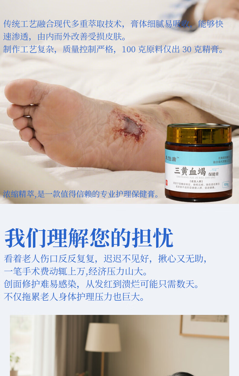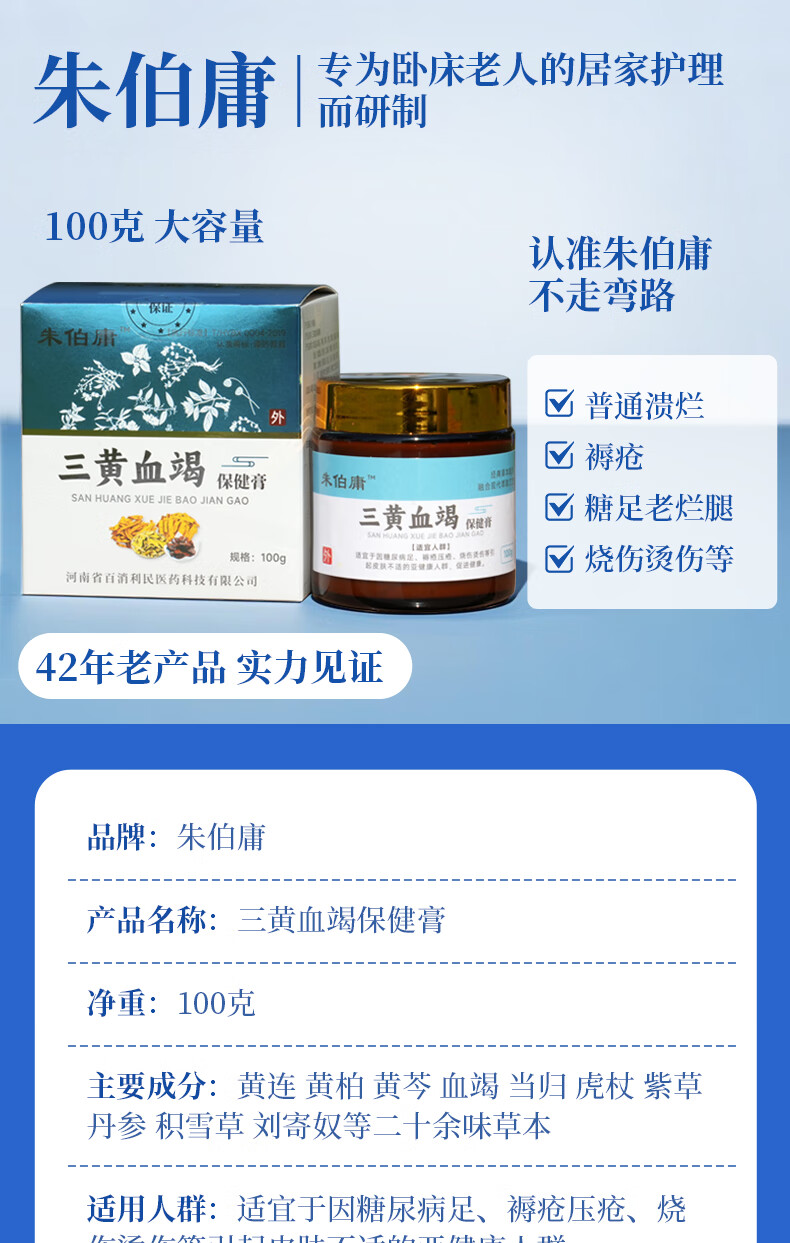 朱伯庸三黄血竭保健膏糖足膏褥疮膏卧床老人护理膏糖尿病足健字号 黑色