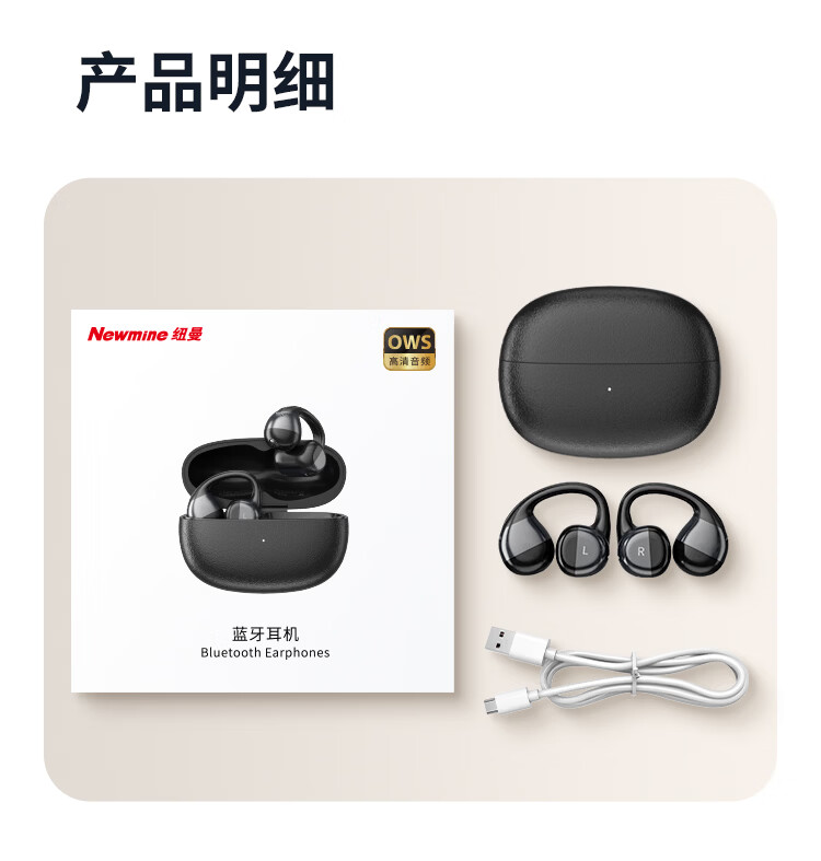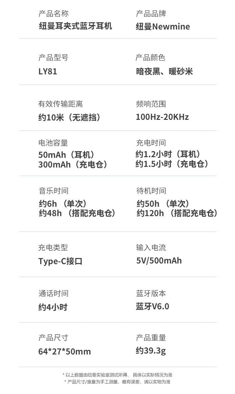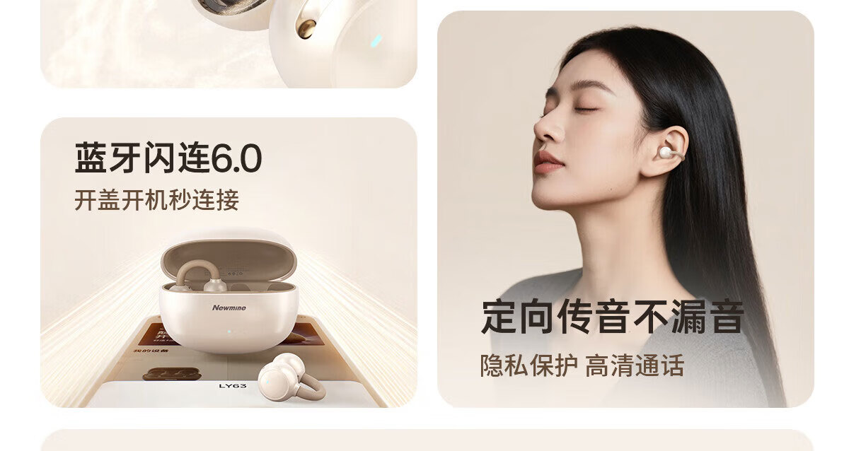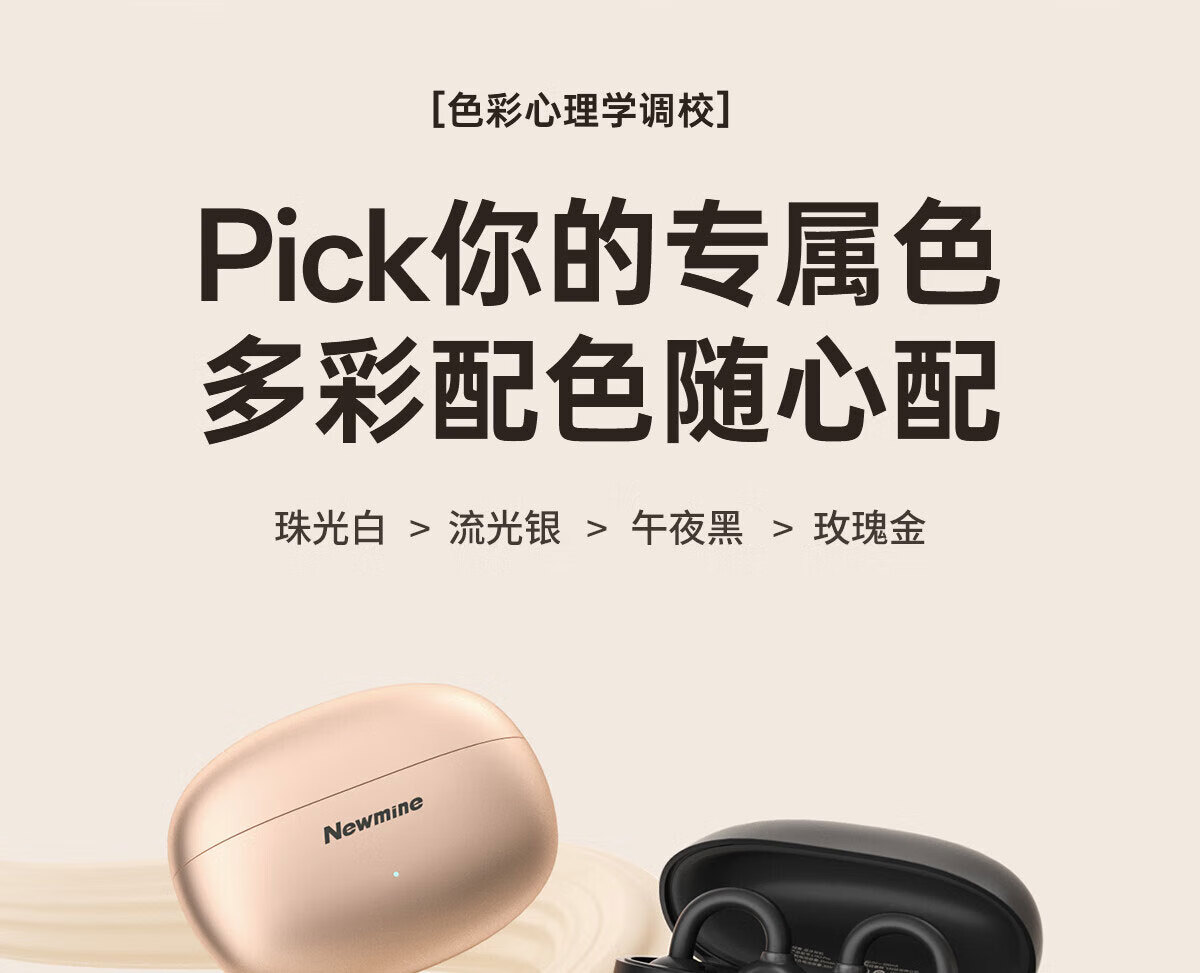 纽曼(Newmine)夹耳式蓝牙耳机运动无线骨传导概念不入耳跑步骑行迷你耳夹耳机超长续航礼物苹果华为手机通用 LY81暖砂米 48H续航丨ENC通话降噪 官方标配