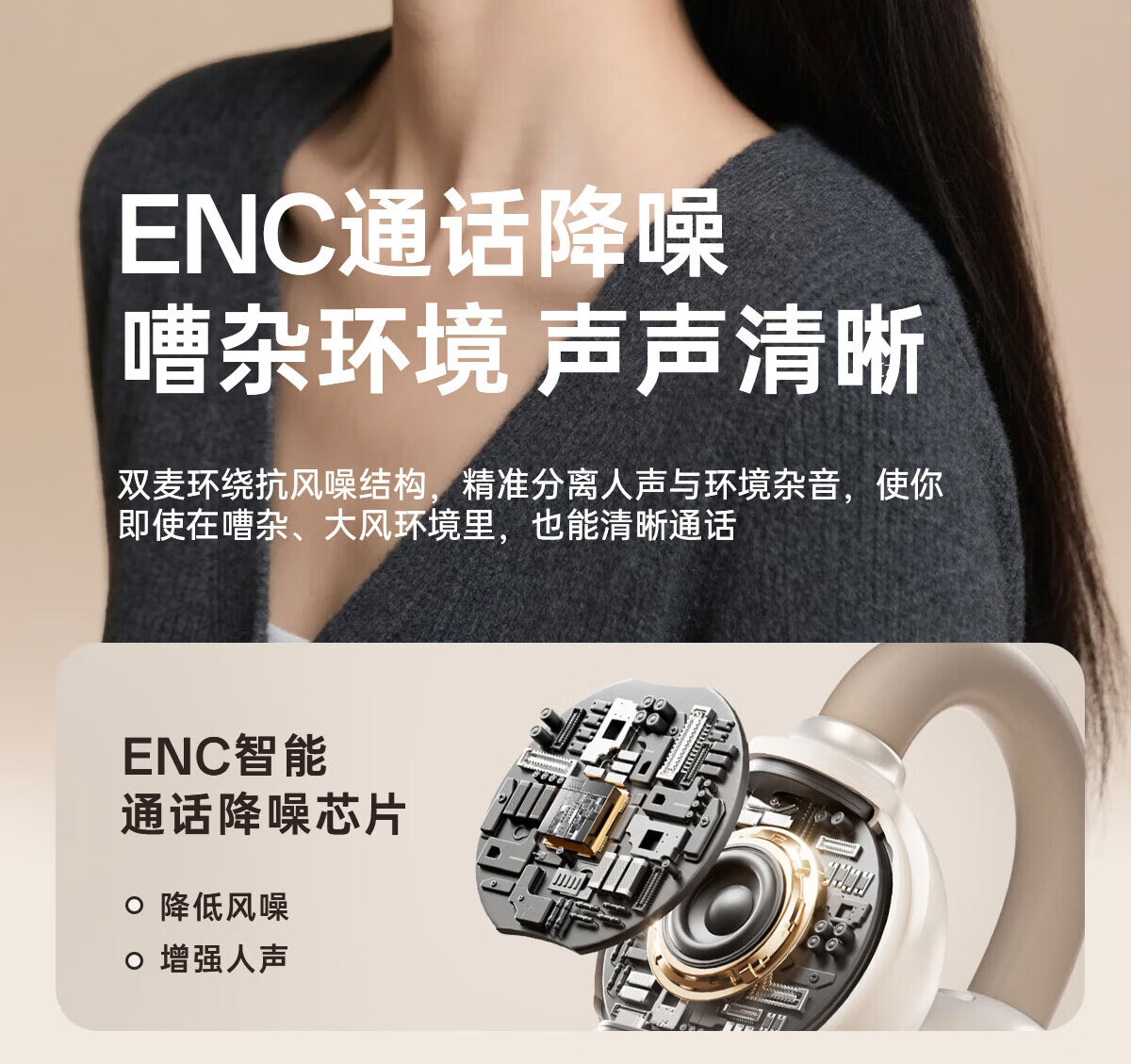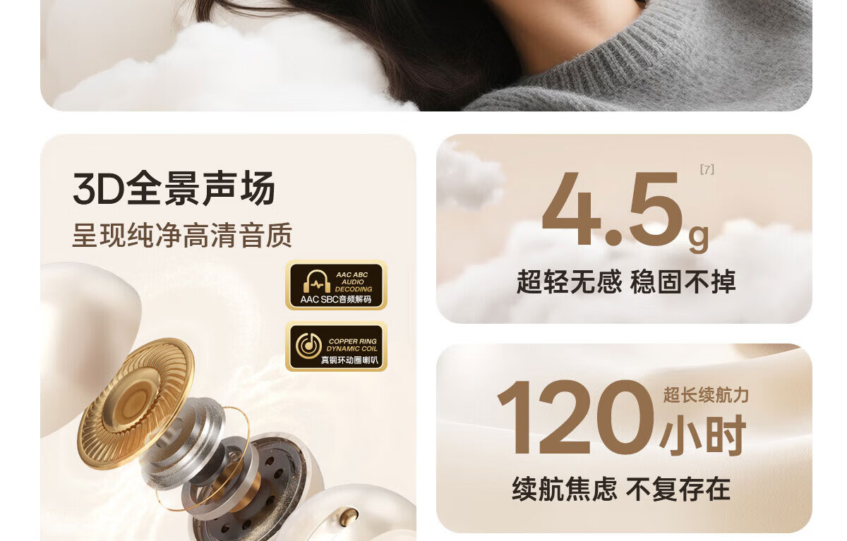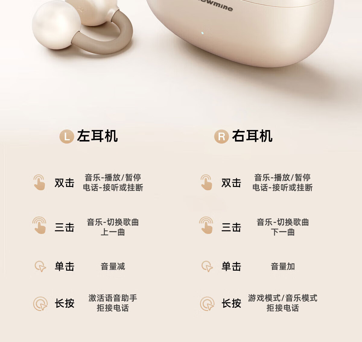 纽曼(Newmine)夹耳式蓝牙耳机运动无线骨传导概念不入耳跑步骑行迷你耳夹耳机超长续航礼物苹果华为手机通用 LY81暖砂米 48H续航丨ENC通话降噪 官方标配