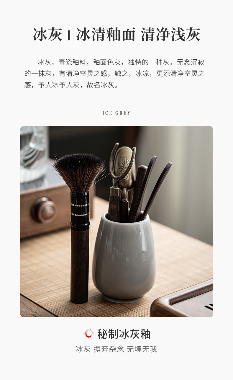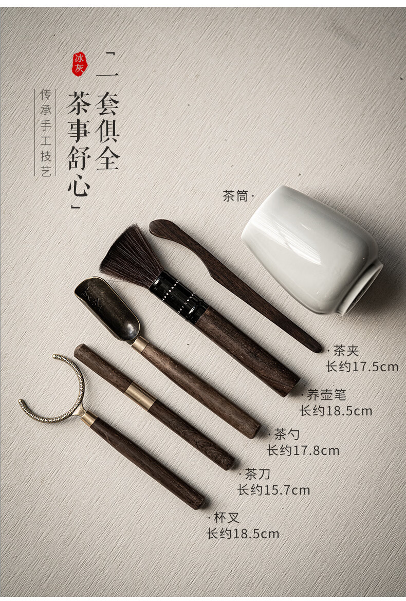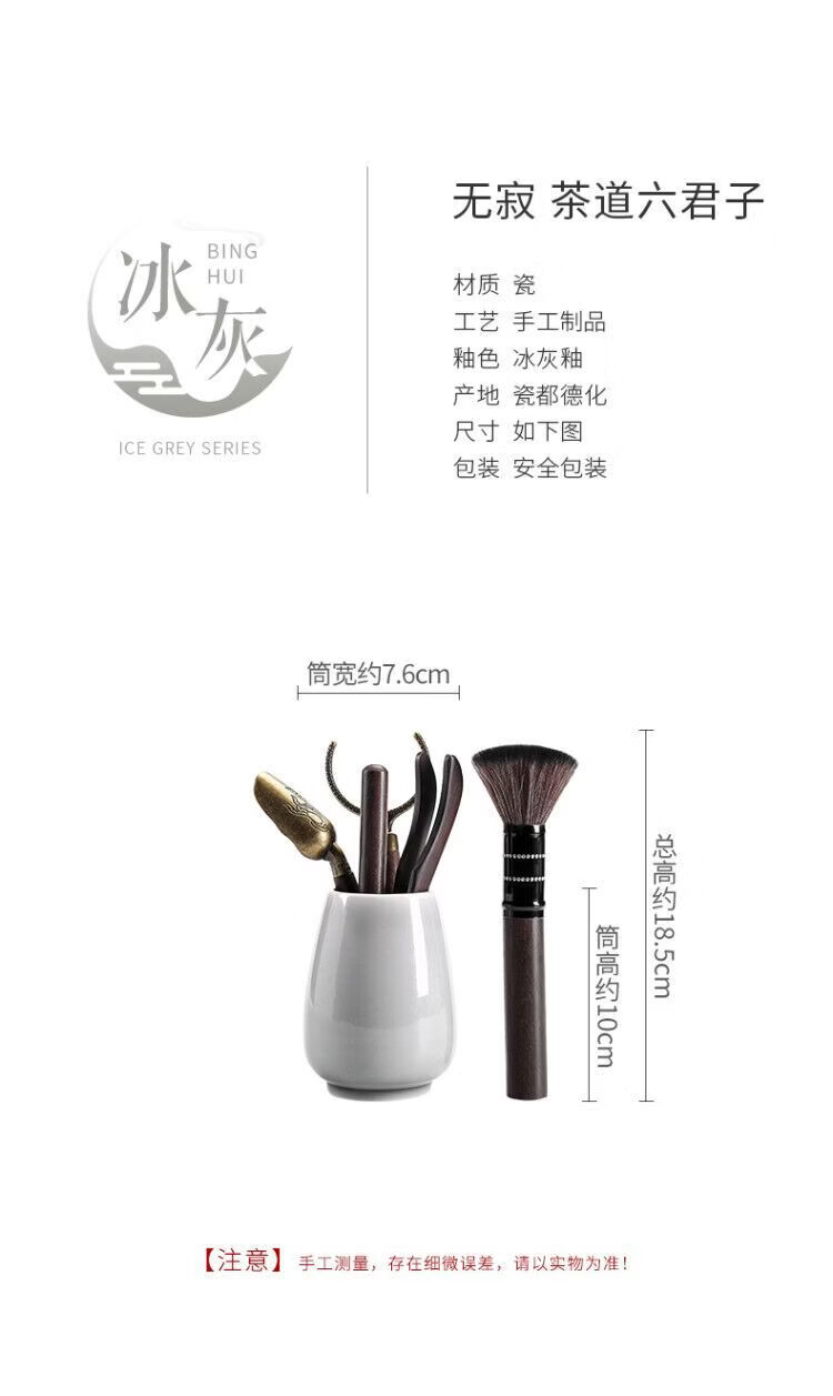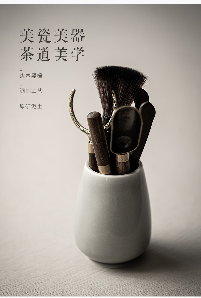 语森忆冰灰釉茶道六君子 日式手工木实木茶刀茶勺陶瓷功夫茶道配件 青璃无寂茶道六君子