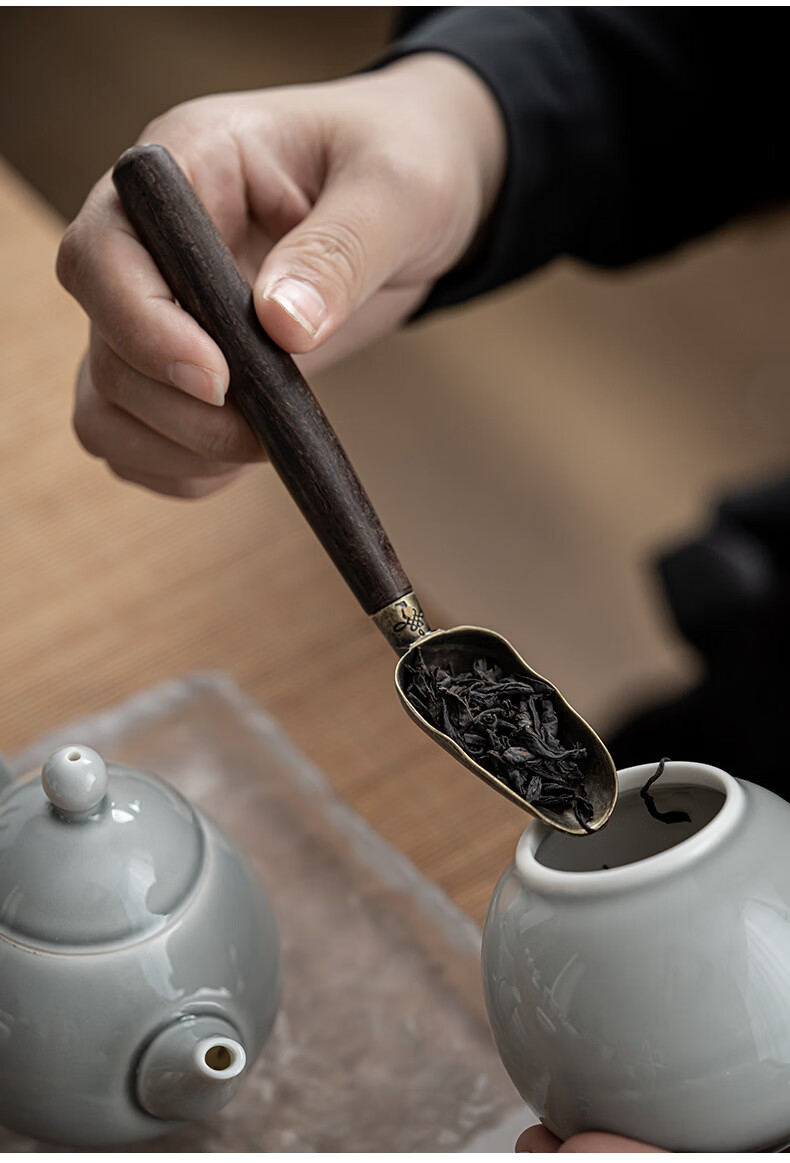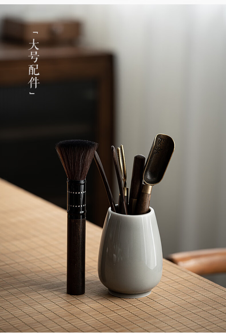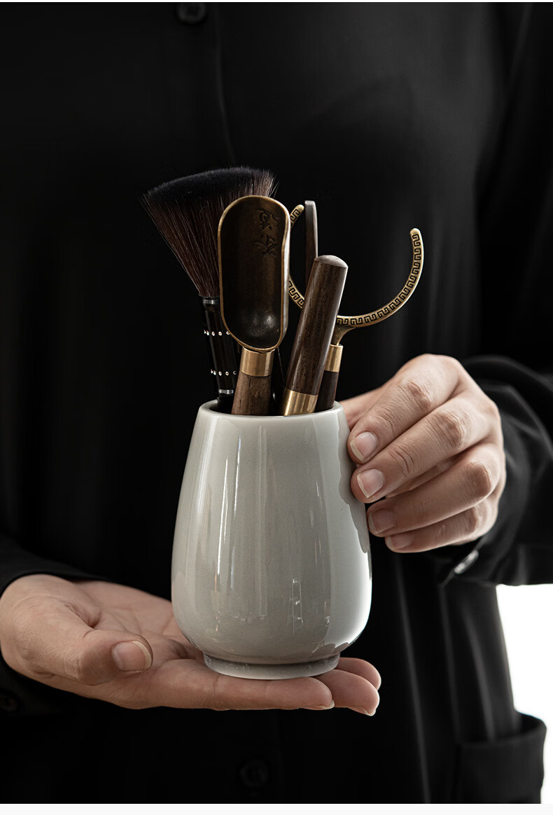 语森忆冰灰釉茶道六君子 日式手工木实木茶刀茶勺陶瓷功夫茶道配件 青璃无寂茶道六君子