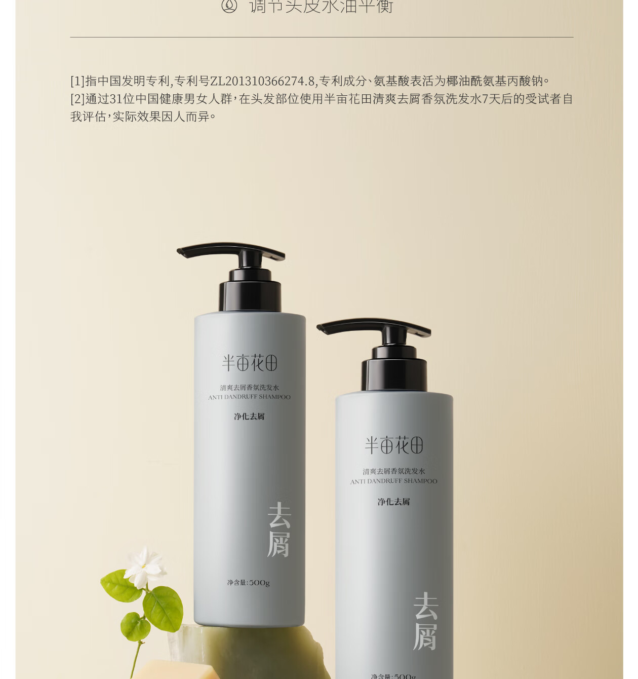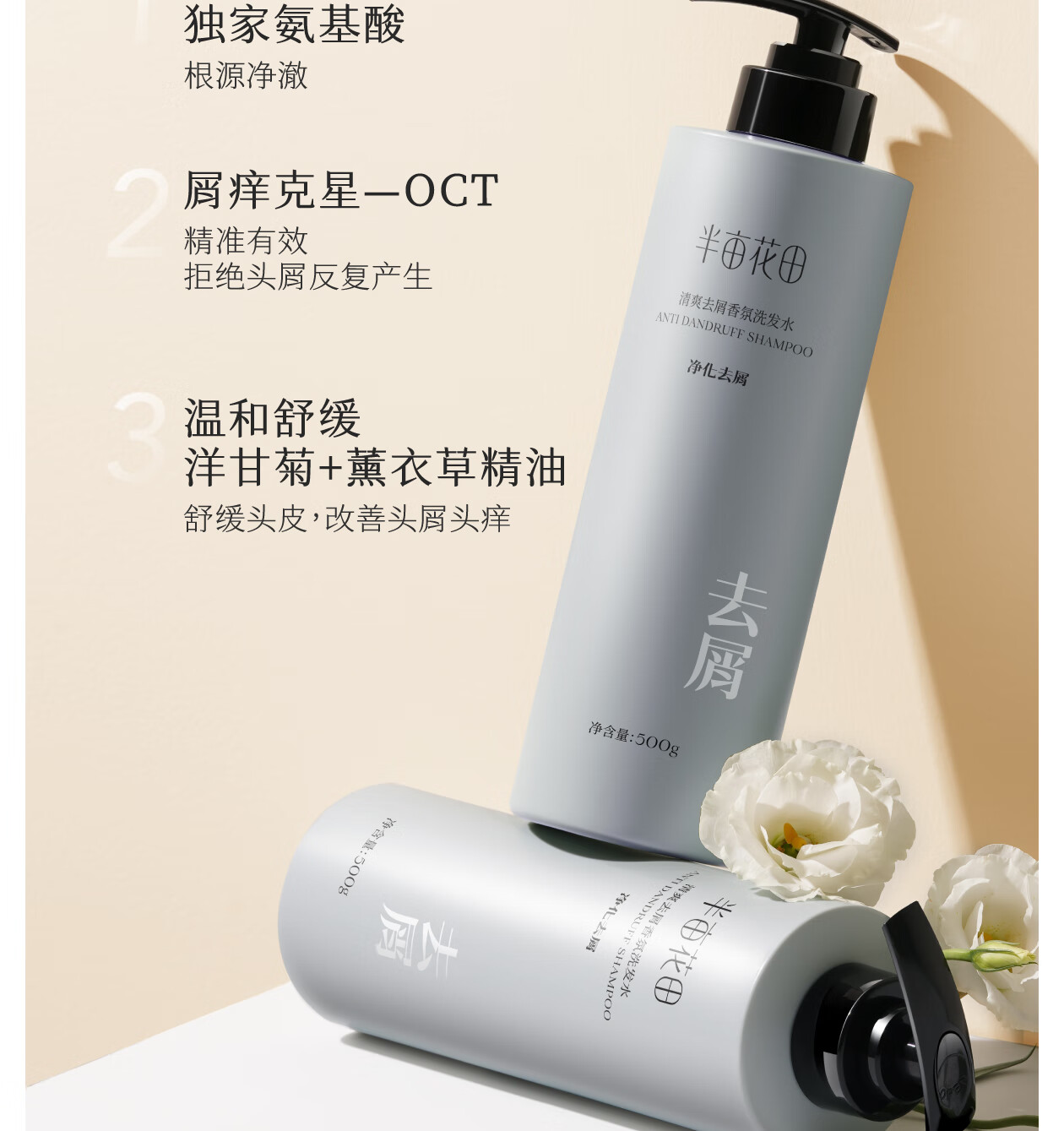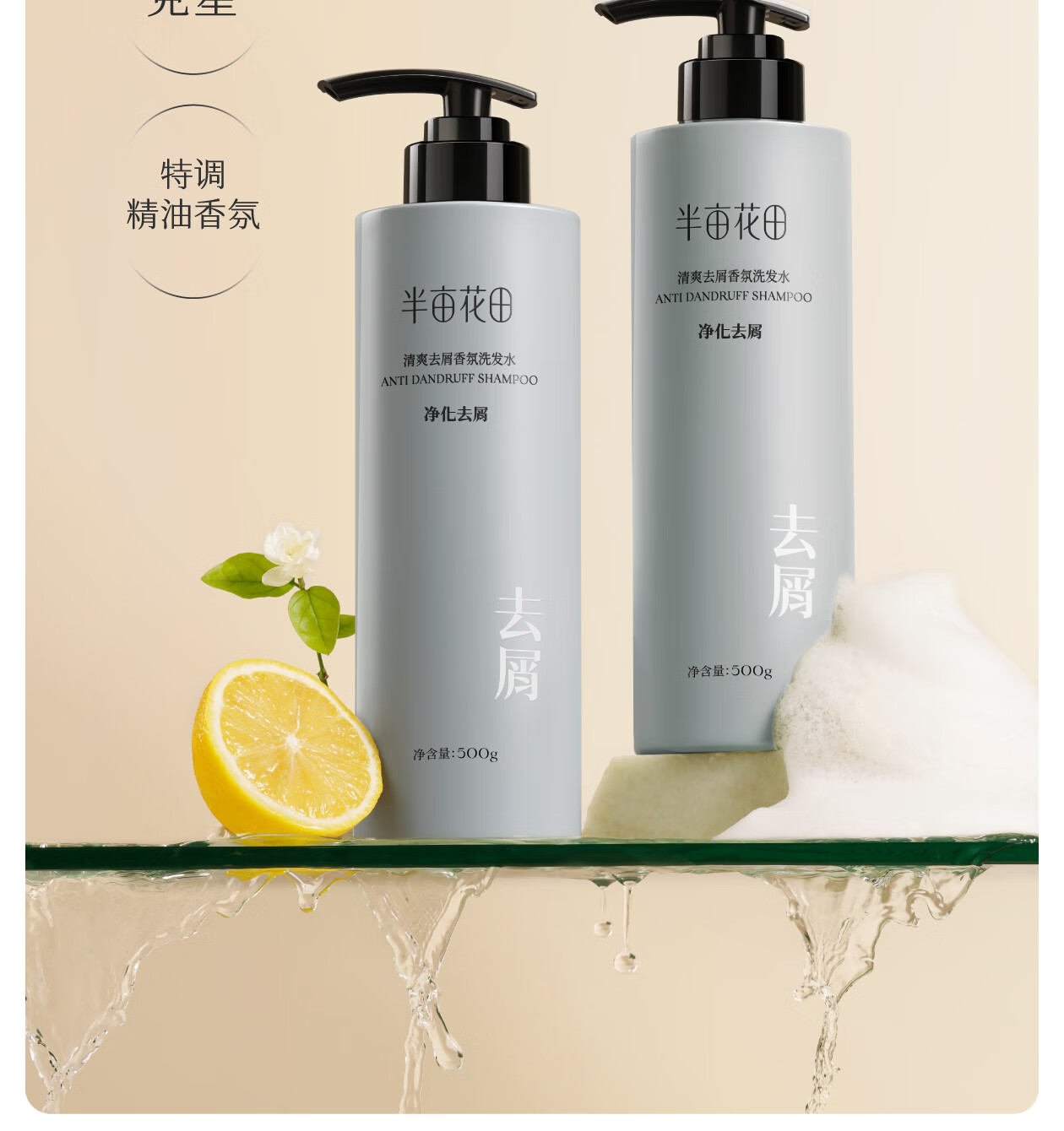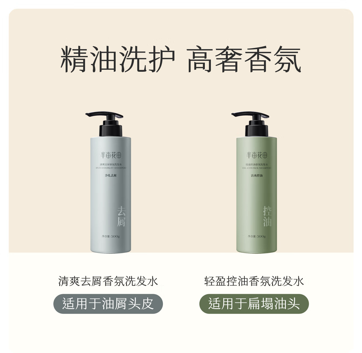 半亩花田控油洗发水去屑止痒精油香氛清爽蓬松洗头膏持久留香洗发露女男 控油500g
