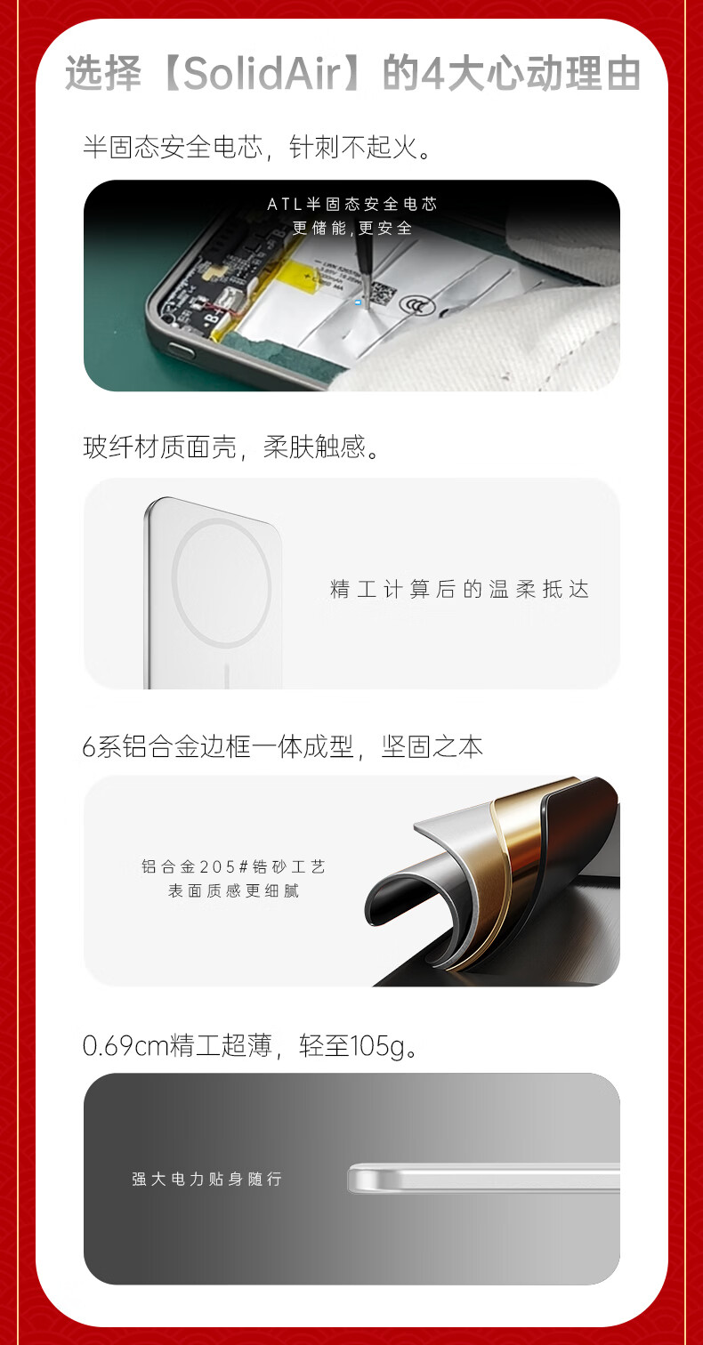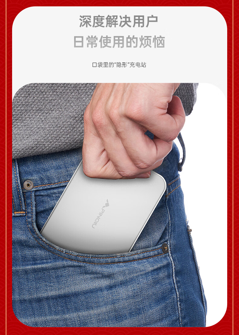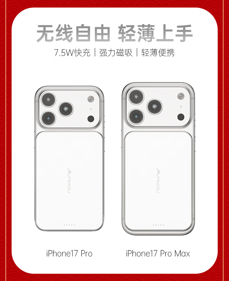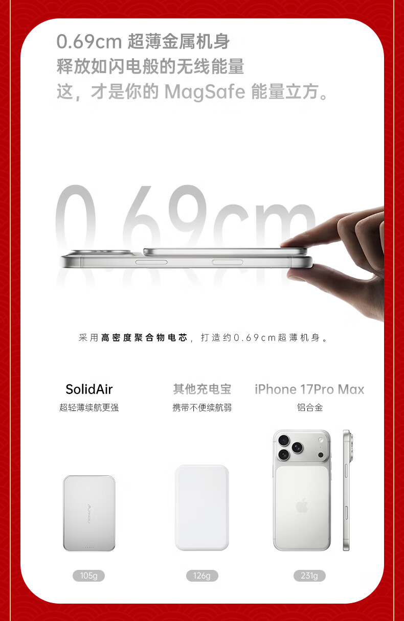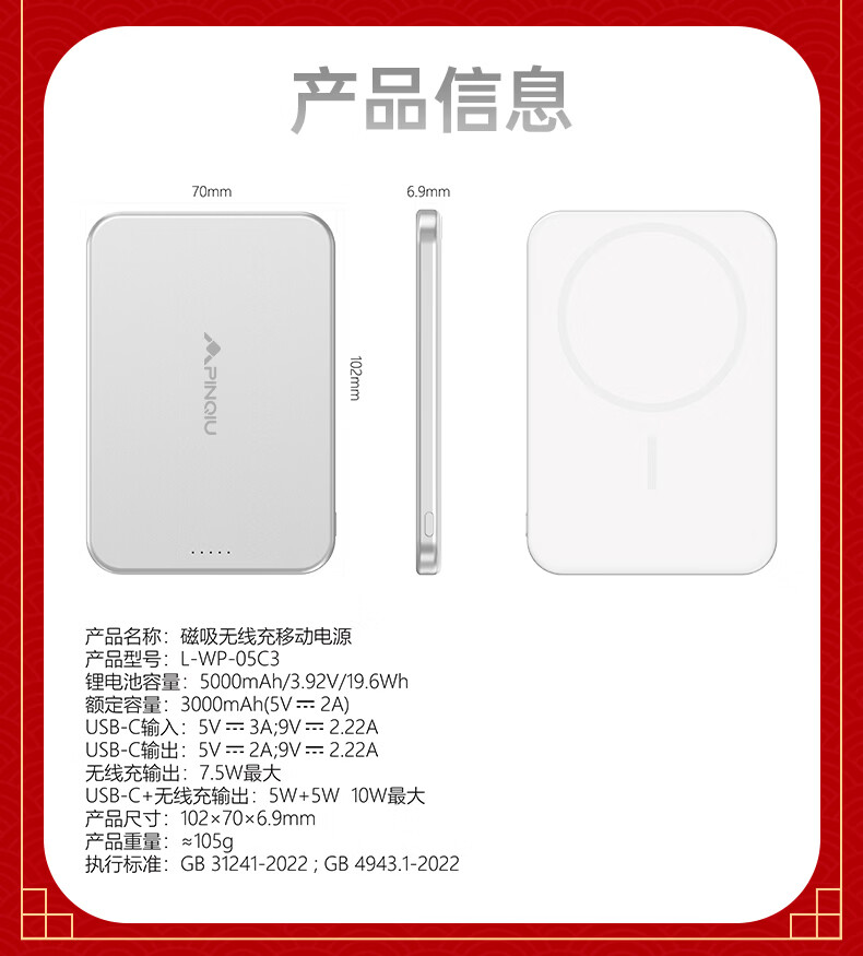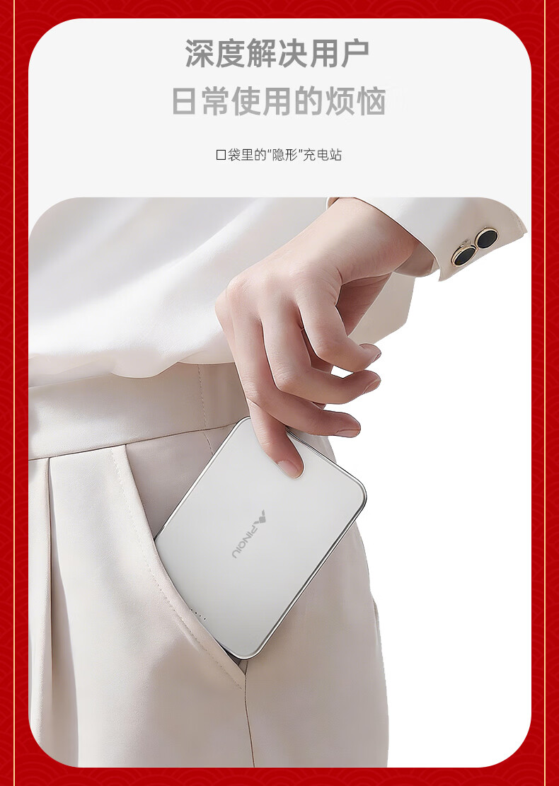 品丘磁吸无线充电宝6.9mm超薄半固态安全电芯苹果手机适用3C认证可上飞机 月光银