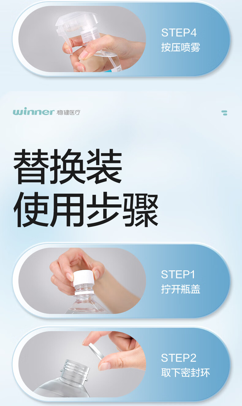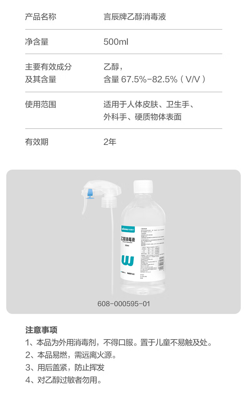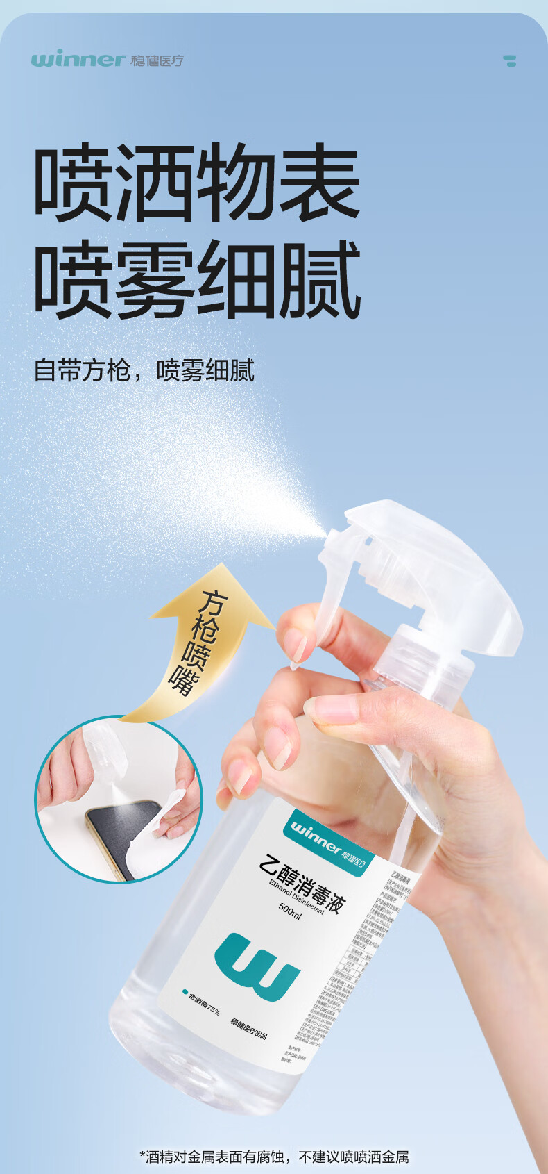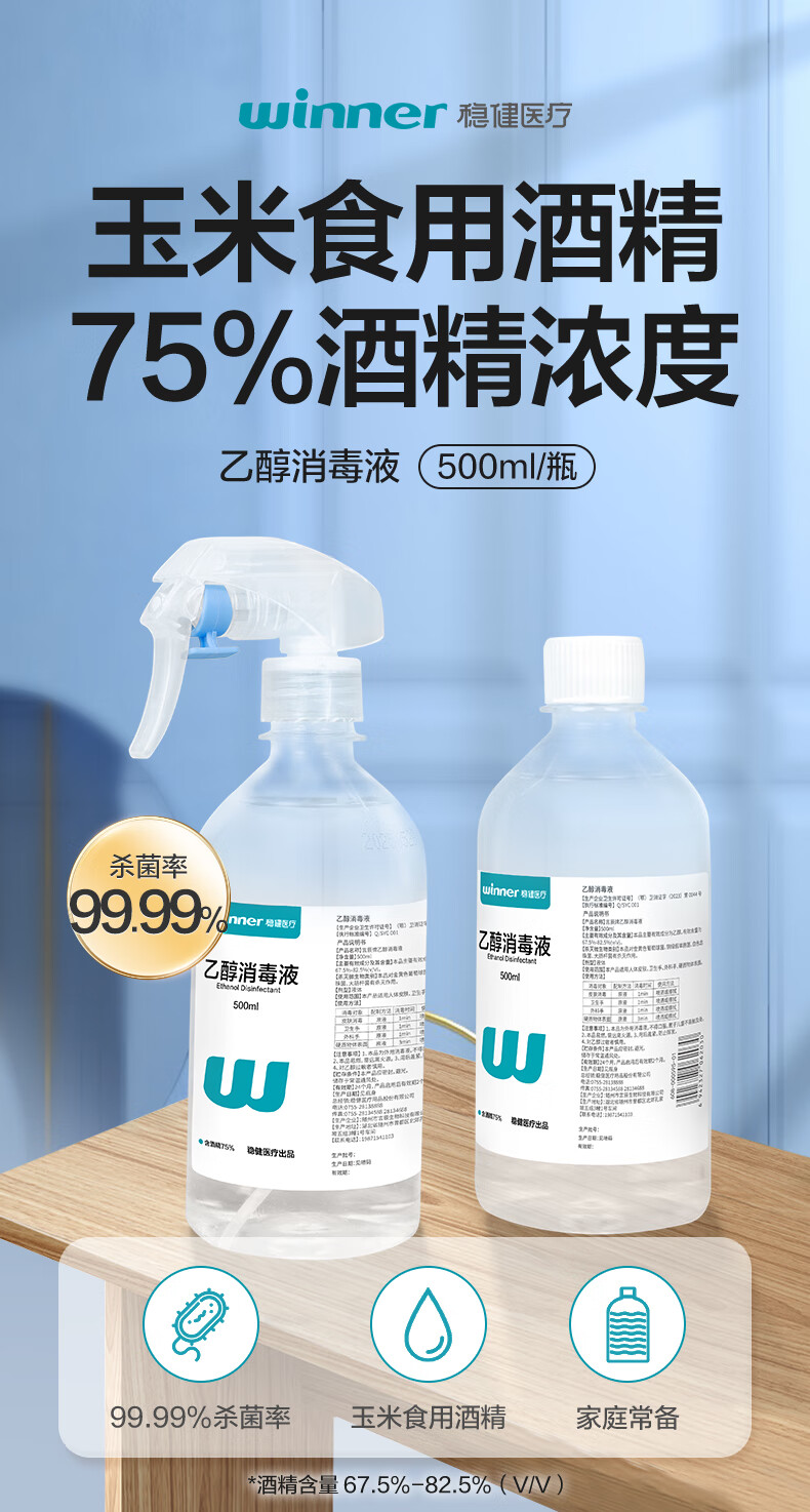 稳健75%酒精乙醇消毒液500ml带喷头 手部清洁液食品用酒精杀菌率99.9%