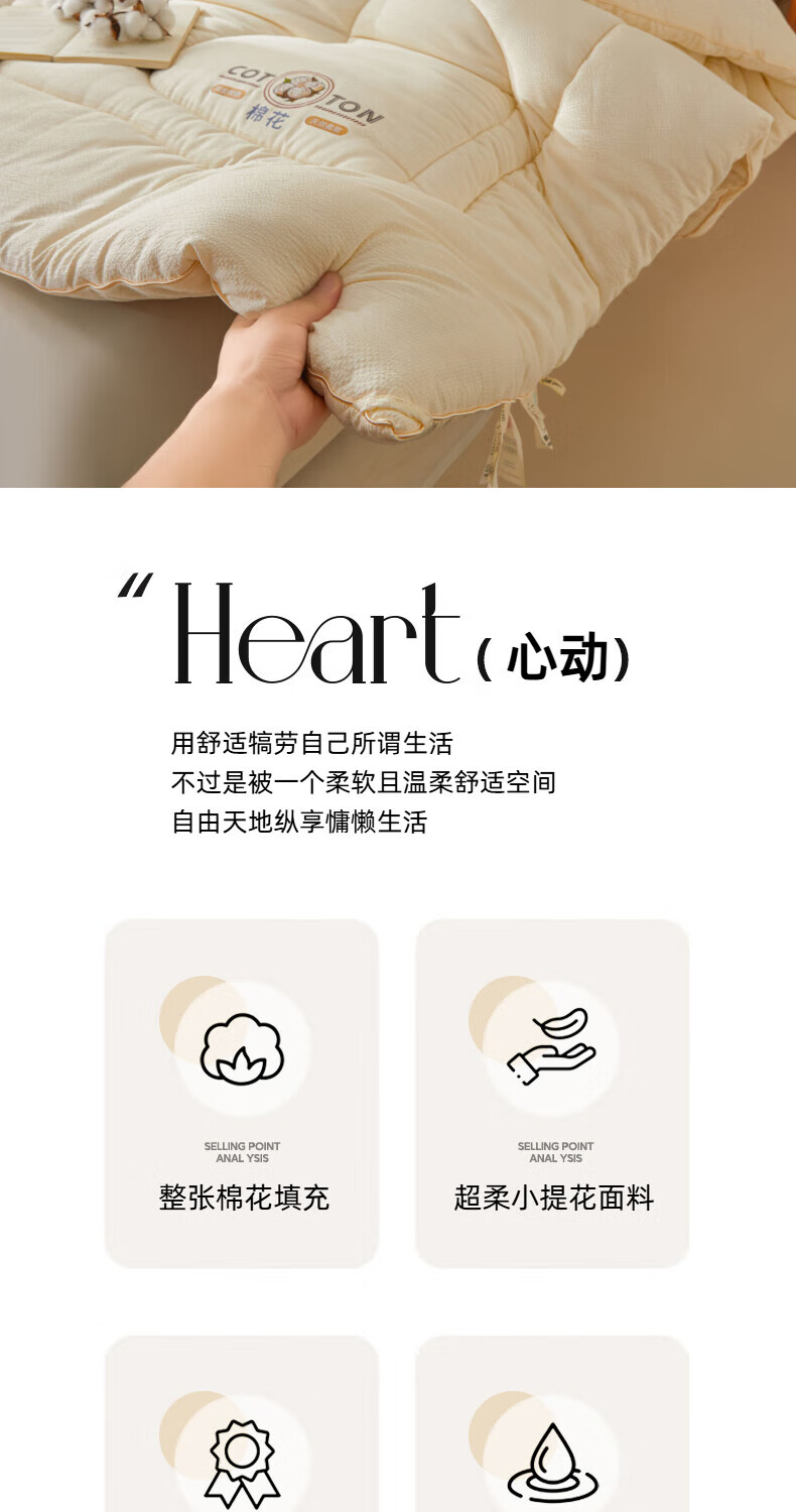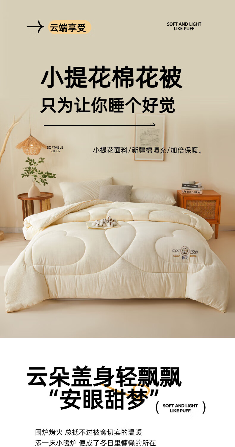 猫人(MiiOW)新疆棉花被子冬季被芯秋冬加厚保暖春秋季棉被家用单双人四季通用 棉语提花被-白 春秋被:150*200cm【约4斤】