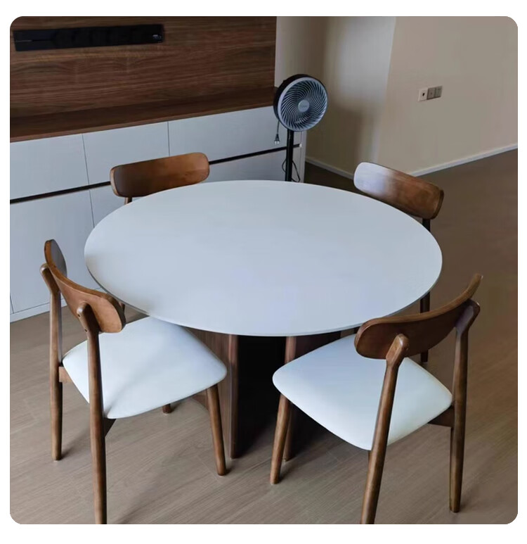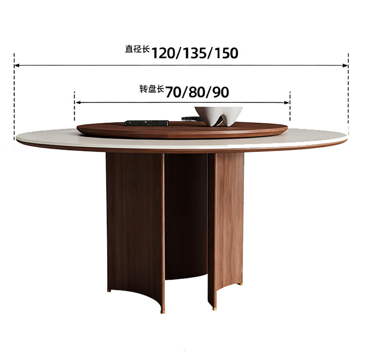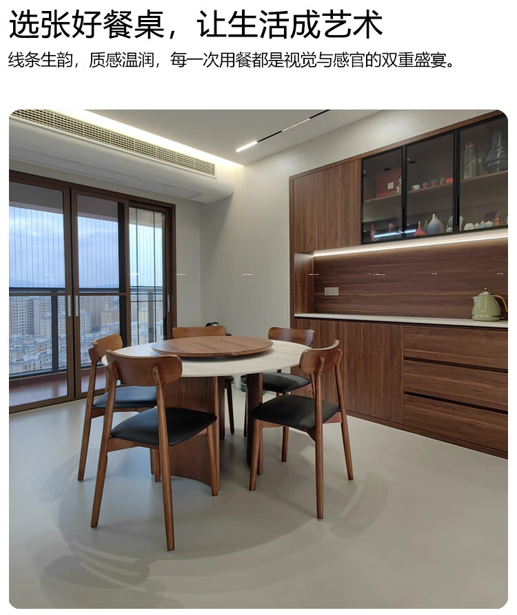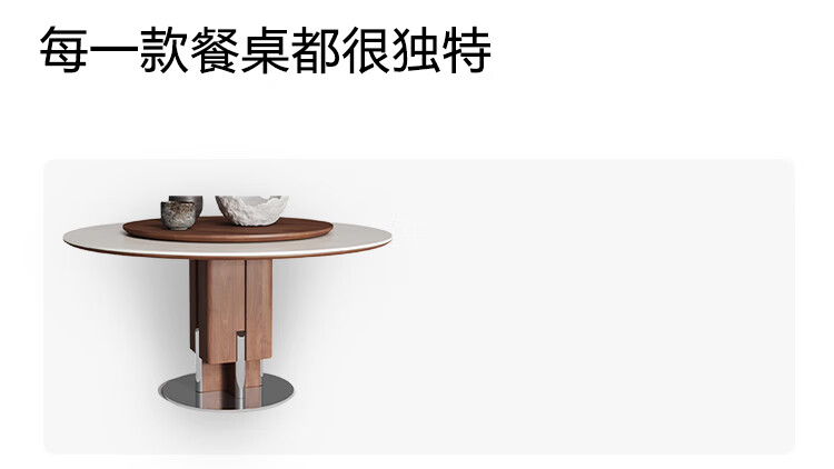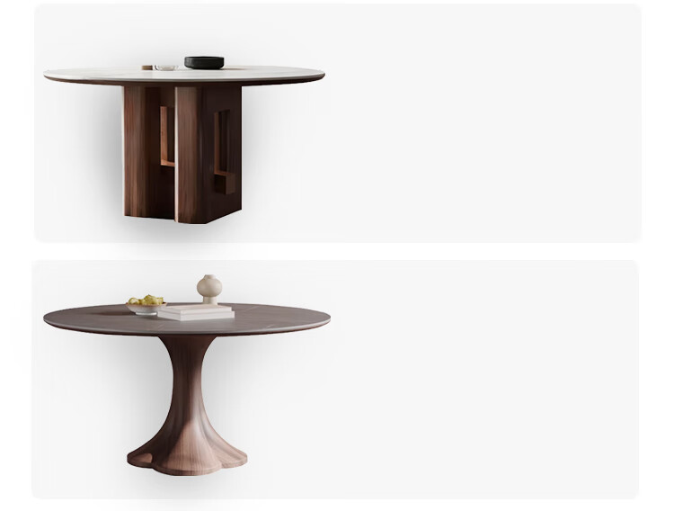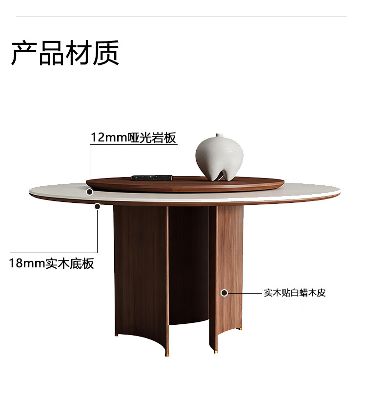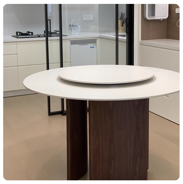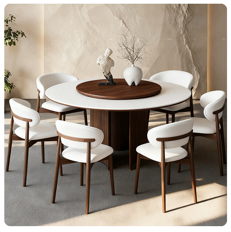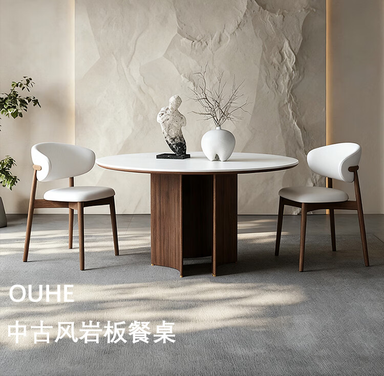 欧荷家具2025新款中古风洞石岩板餐桌家用圆形设计师圆餐桌实木圆桌带转盘 1.2m岩板餐桌 【基础款】无实木转盘