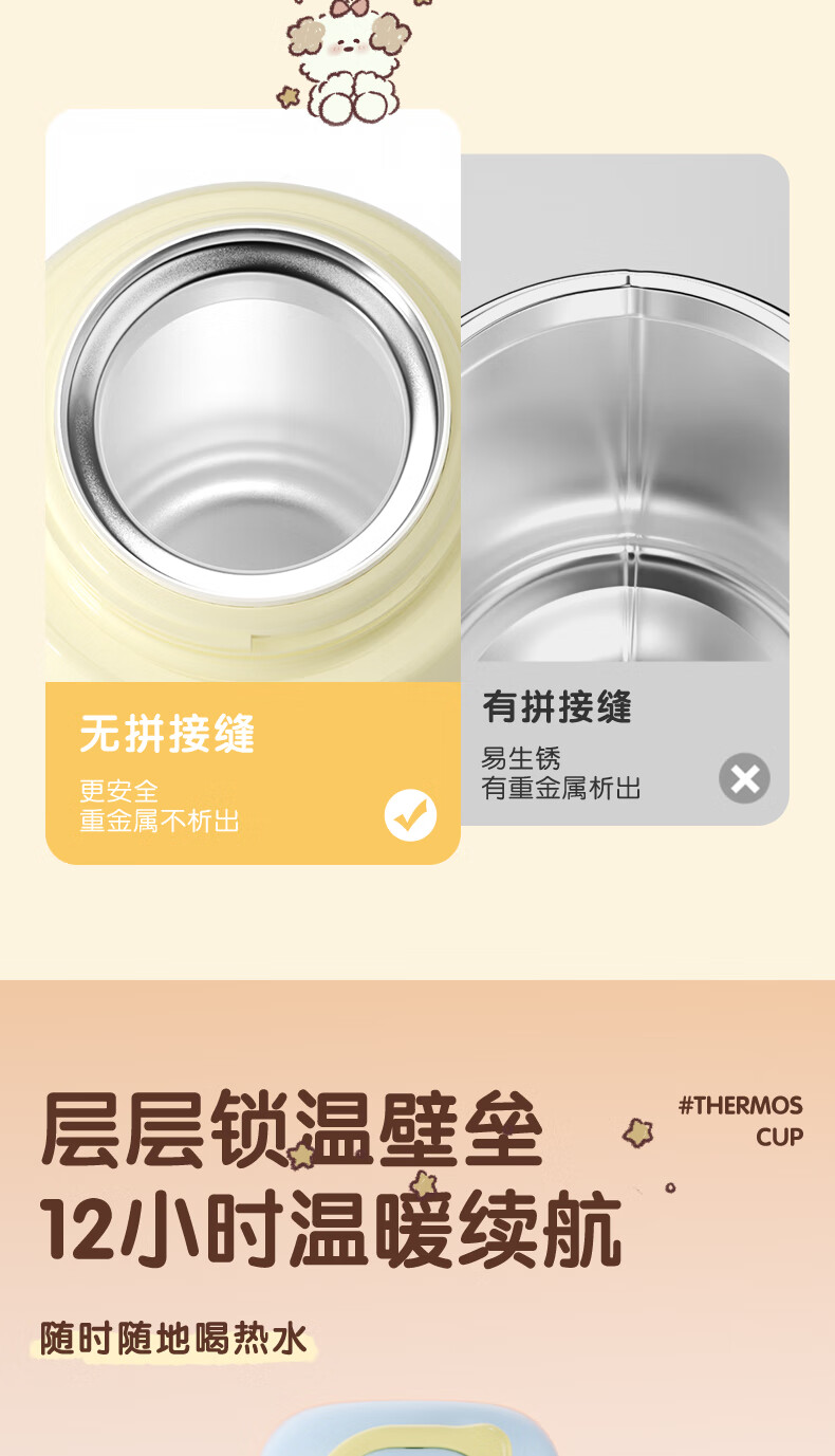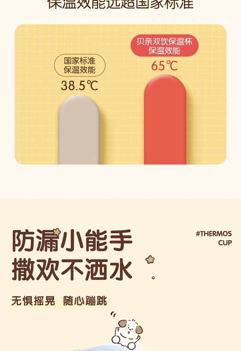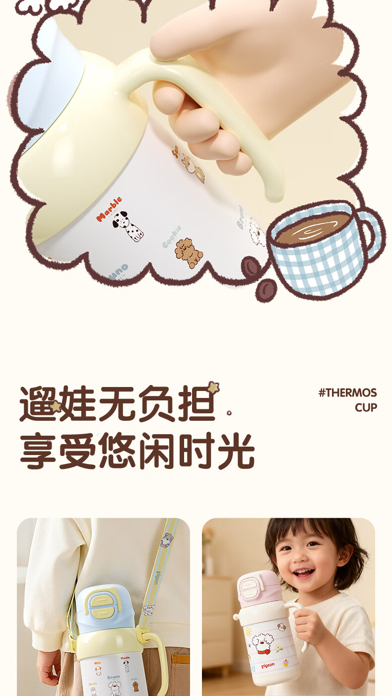 贝亲水杯保温杯 保冷杯单手柄 双饮儿童水杯450ML (灰色淘气萌宠)