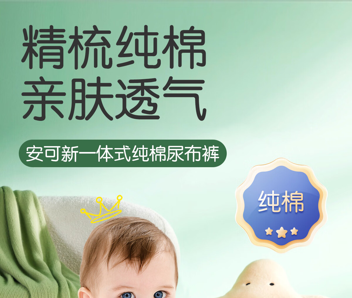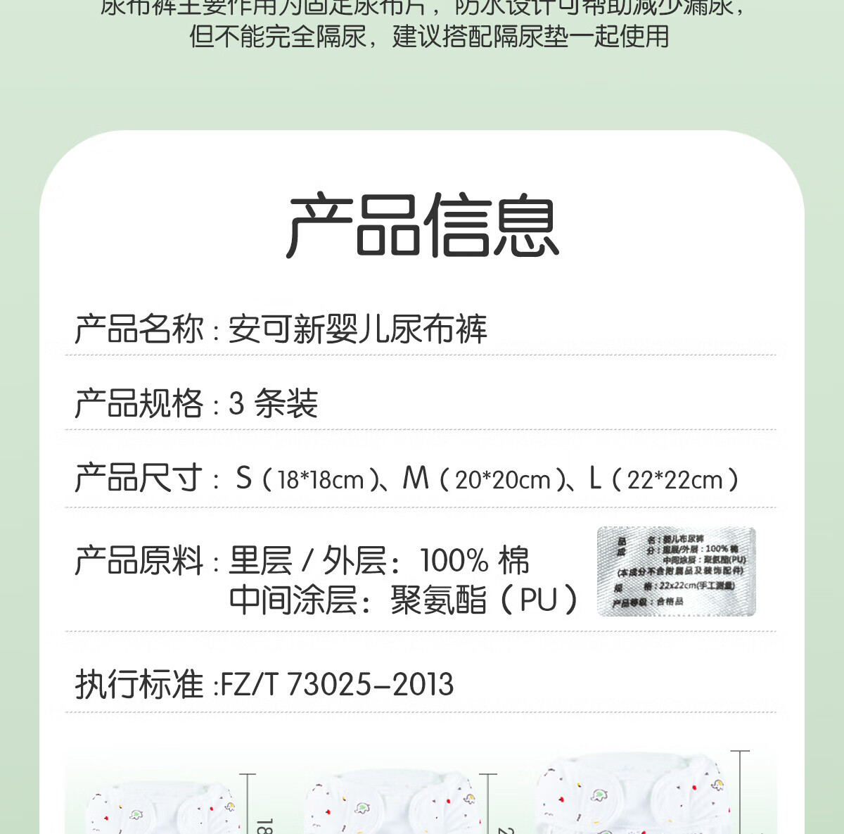 安可新婴儿尿布兜可洗新生儿隔尿纯棉亲肤透气隔尿隔污3件装L码 15-20斤
