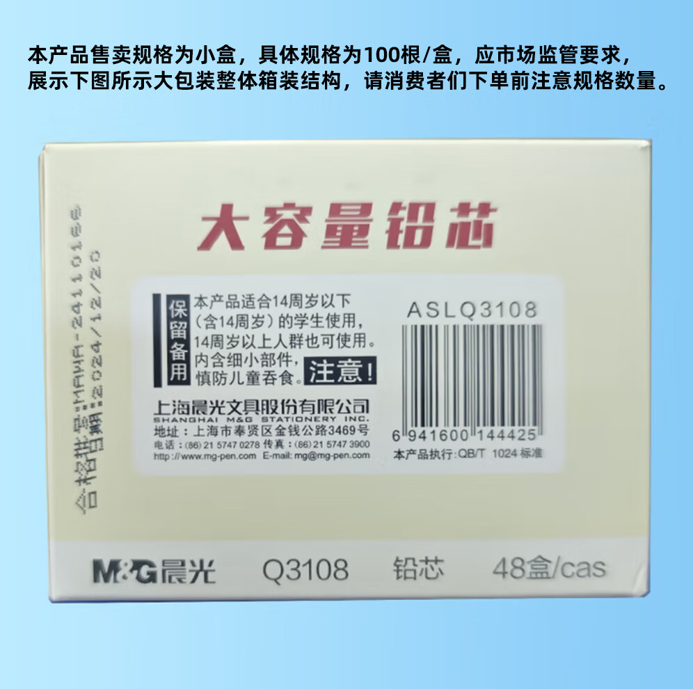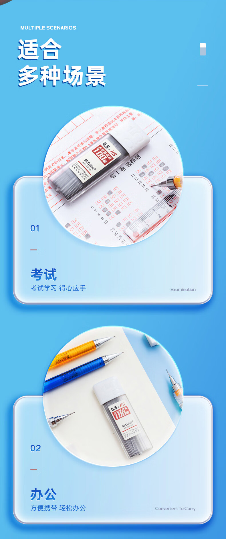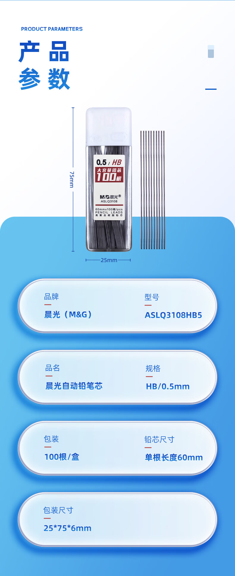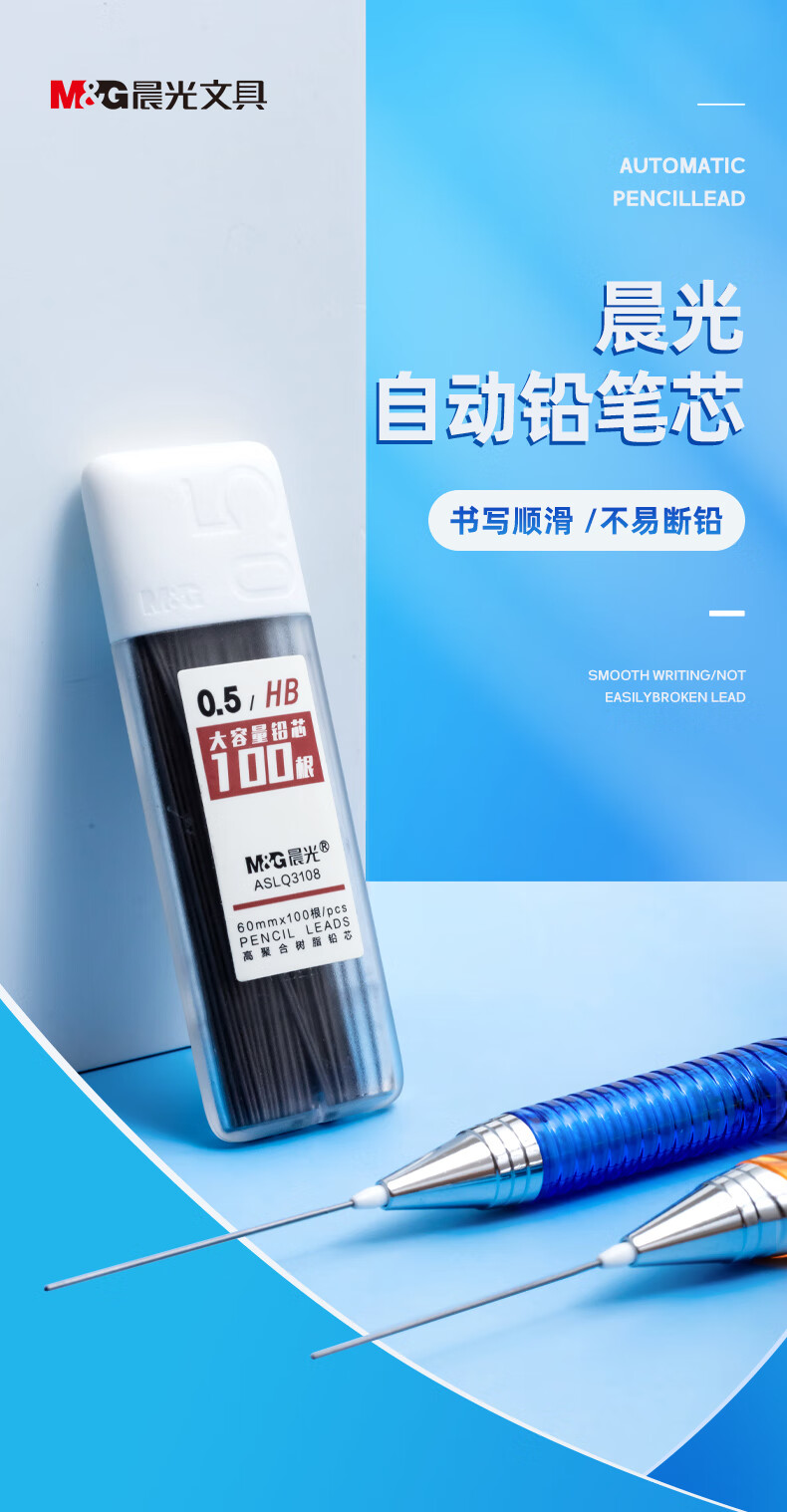 晨光(M&G)文具HB/0.5mm自动铅笔替芯 树脂铅芯 大容量铅芯盒 100根/盒 单盒装ASLQ3108HB5考试必备