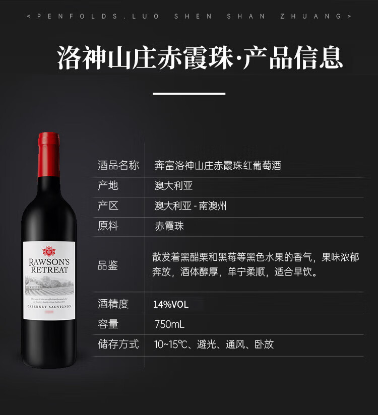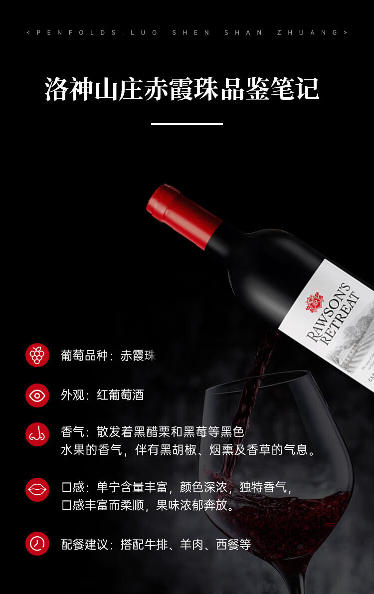 洛神山庄奔富 赤霞珠干红葡萄酒 750ml*6木塞原箱 年货【澳版】