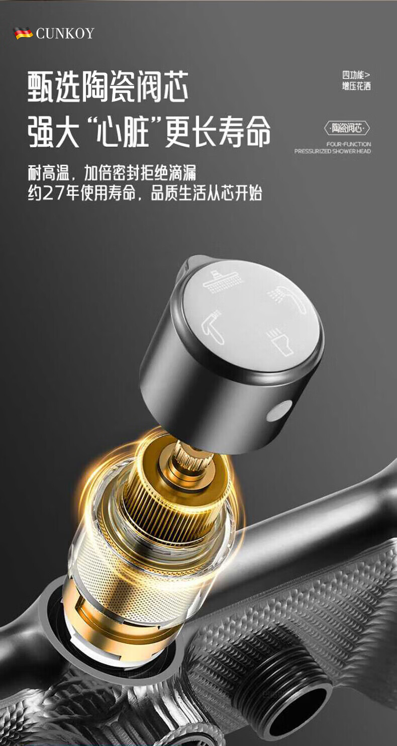 CUNKOY【德国】淋浴花洒套装一体全铜冷热花洒淋浴全套一整套2025新款 圆形四功能花洒套装【全铜主体】旗舰款 全铜加厚主体丨四档旋转调节丨AIR星空顶喷