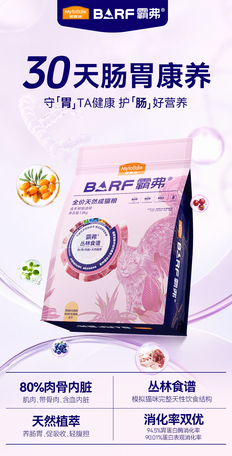 麦富迪 猫粮 barf霸弗生骨肉主食冻干双拼天然粮鲜肉营养无谷高肉高蛋白 【囤货装】成猫7.2kg|混合口味