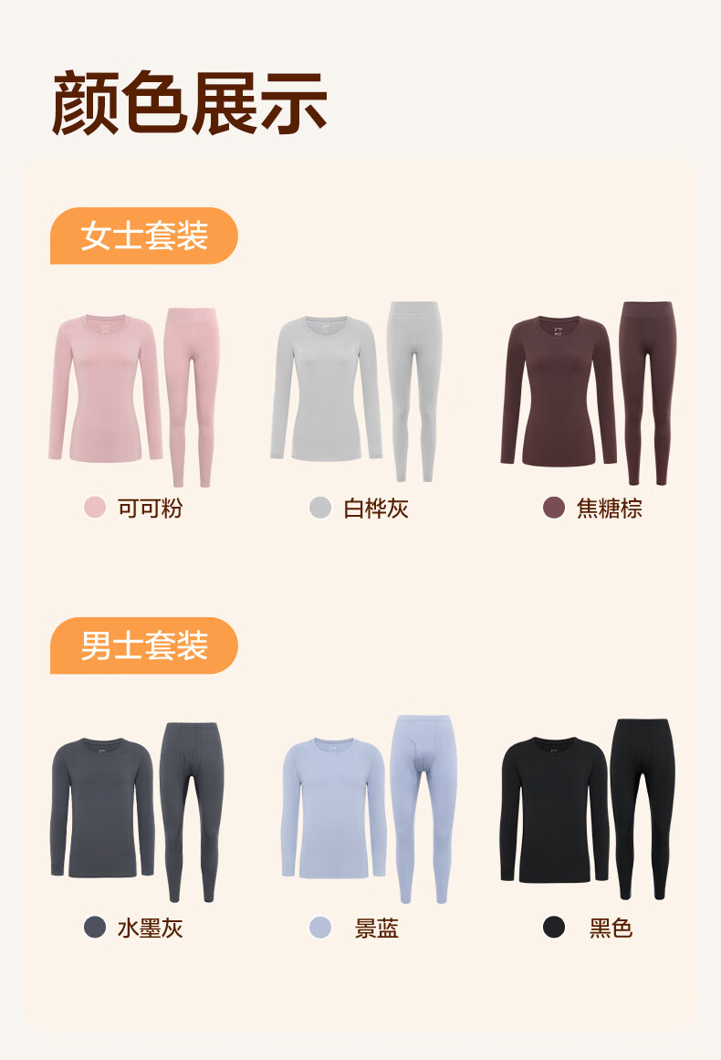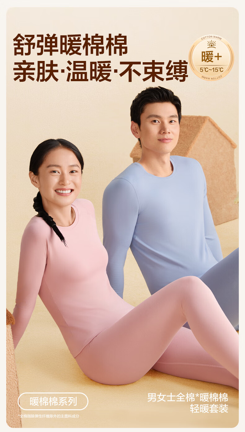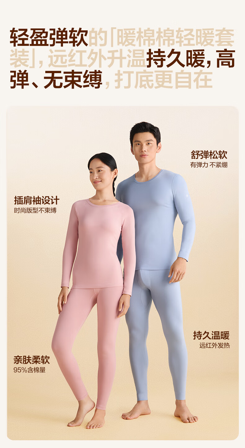 全棉时代新品保暖内衣【远红外发热舒弹】暖棉棉轻暖套装男女士秋衣秋裤