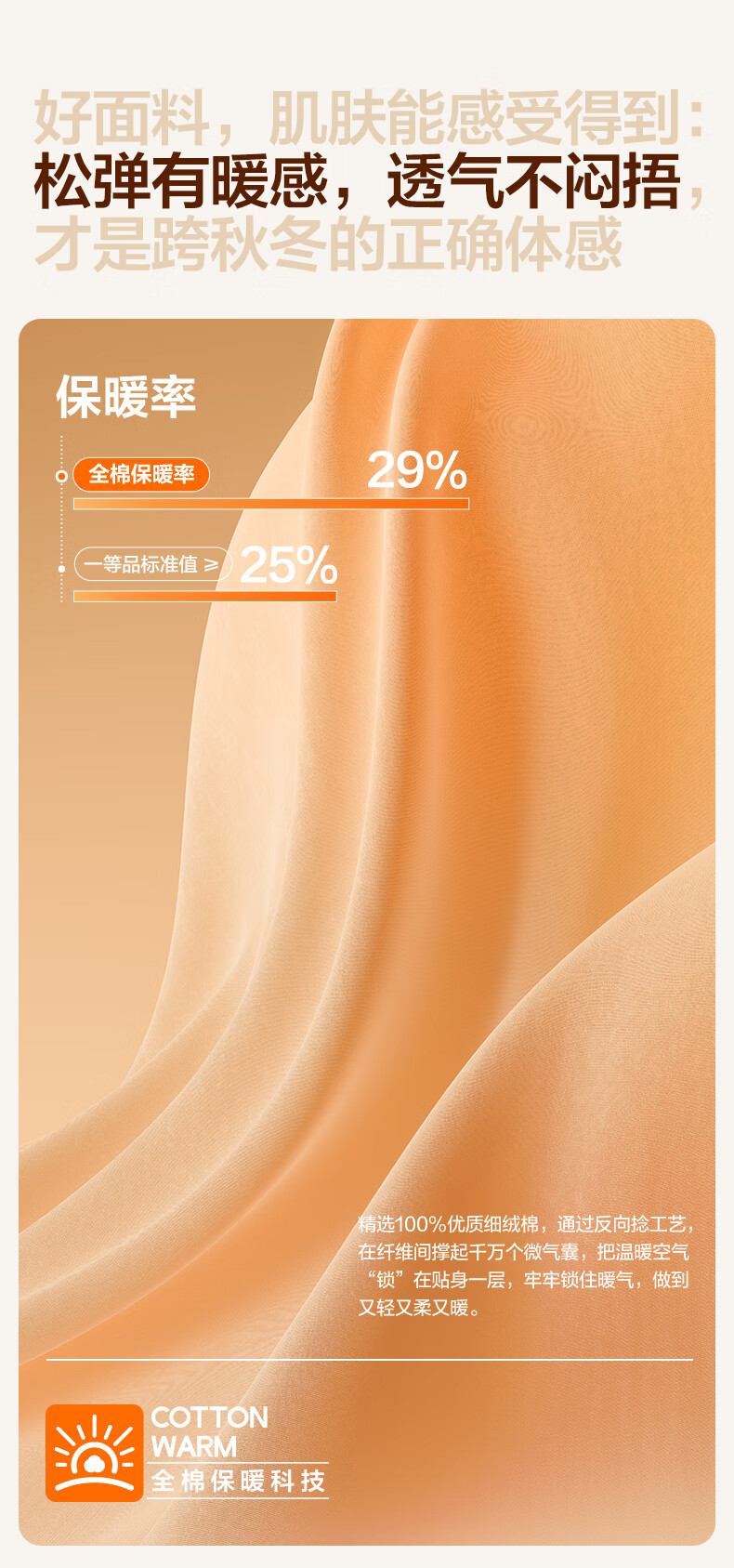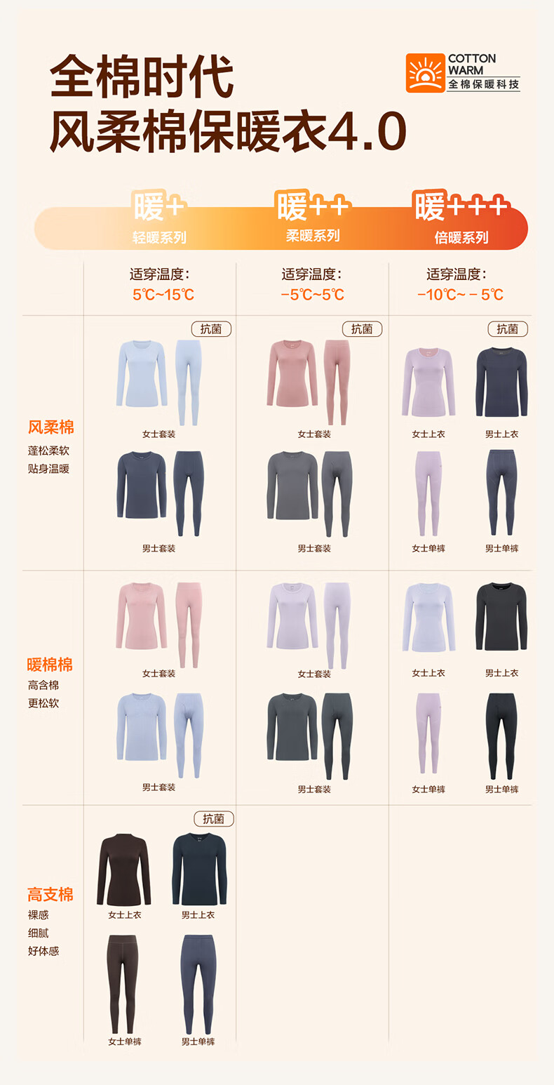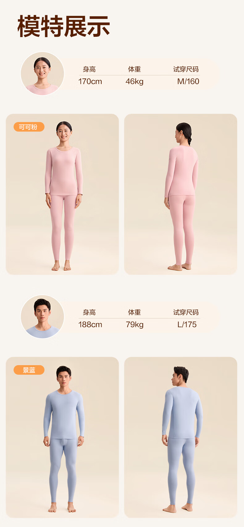 全棉时代新品保暖内衣【远红外发热舒弹】暖棉棉轻暖套装男女士秋衣秋裤
