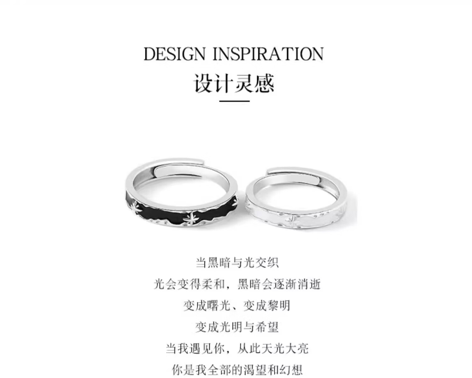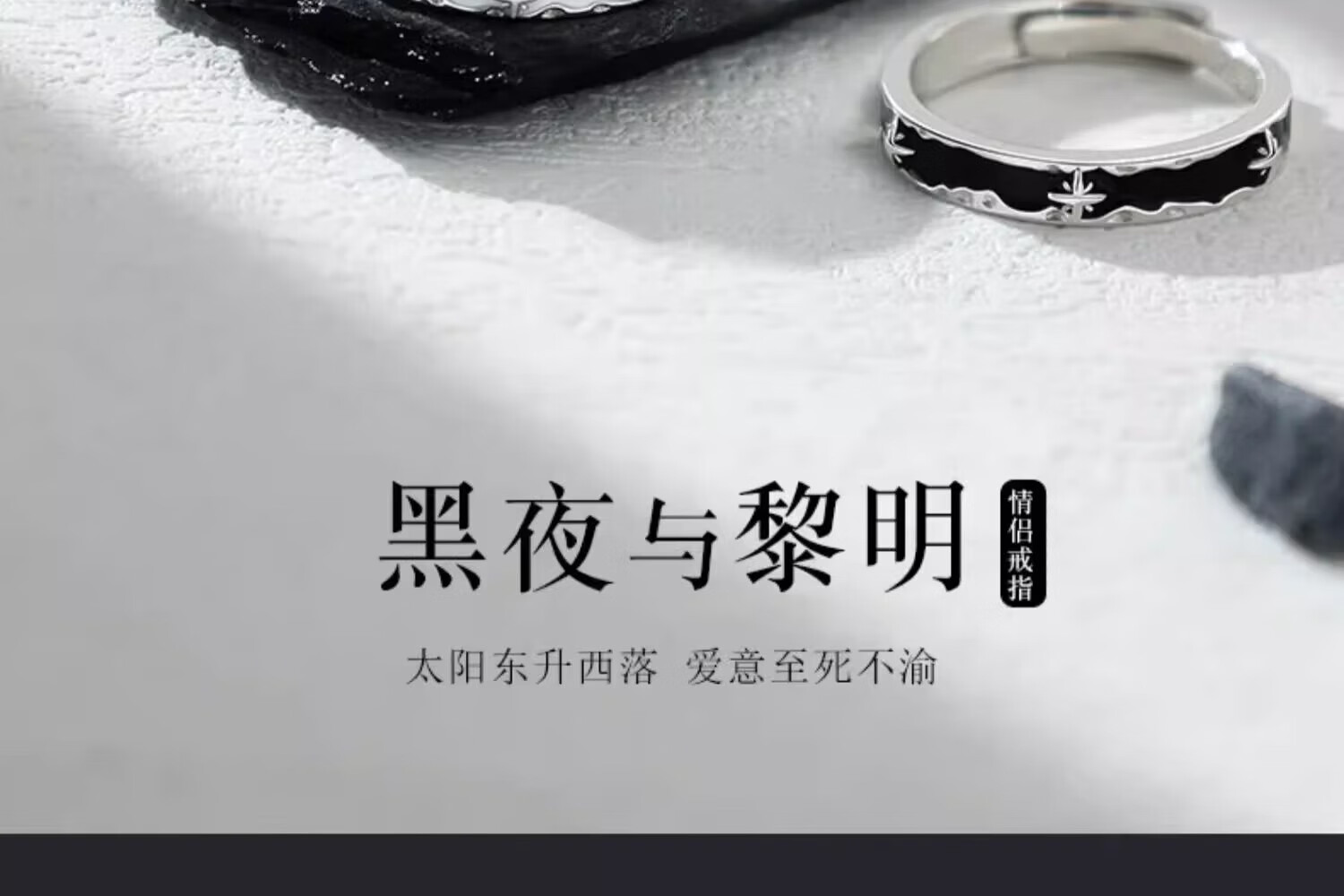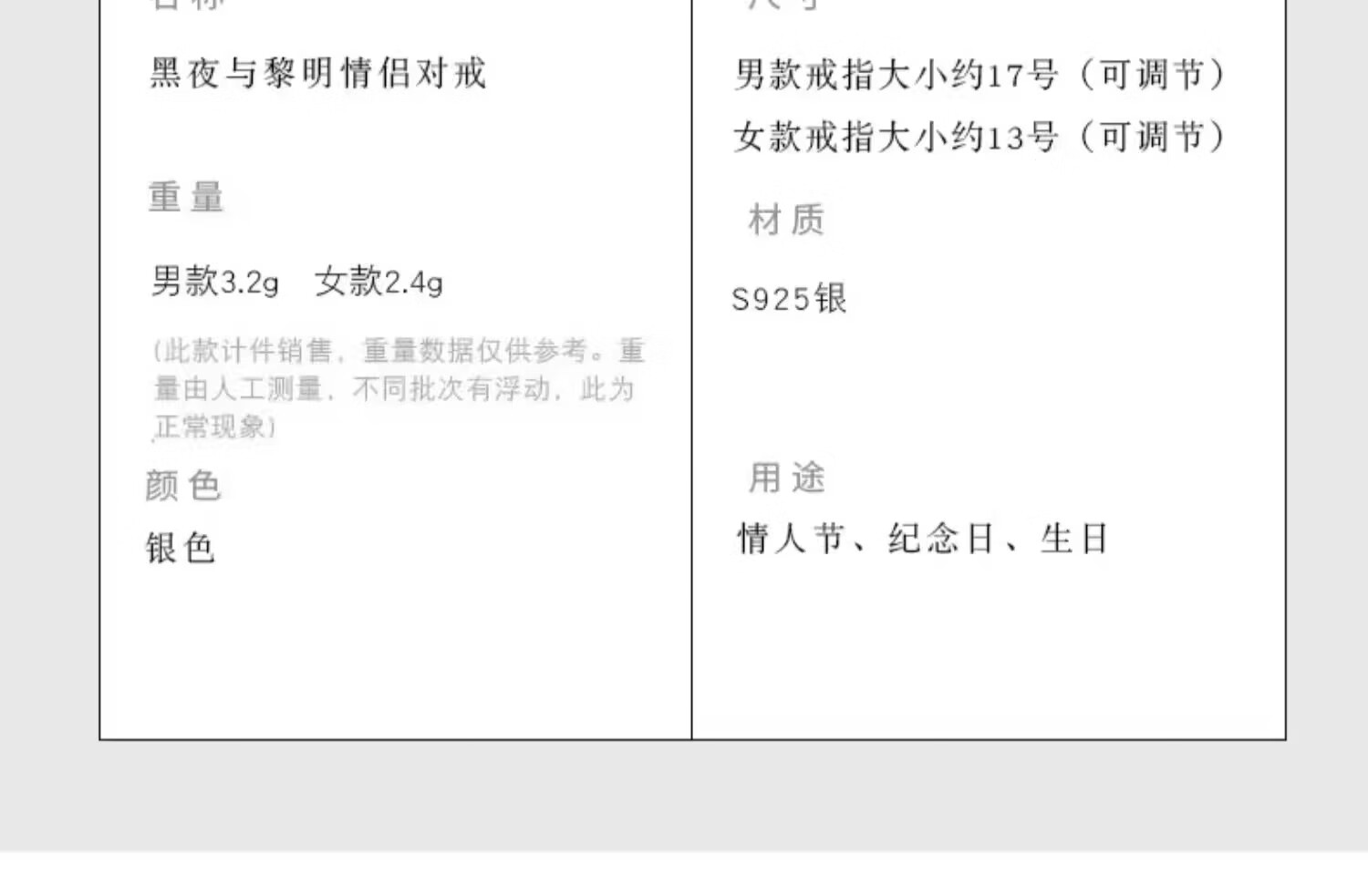 赫莲娜黑夜与黎明足银情侣款戒指女小众对戒生日纪念日情人节礼物送女友 「黑暗与黎明」S999对戒+礼盒
