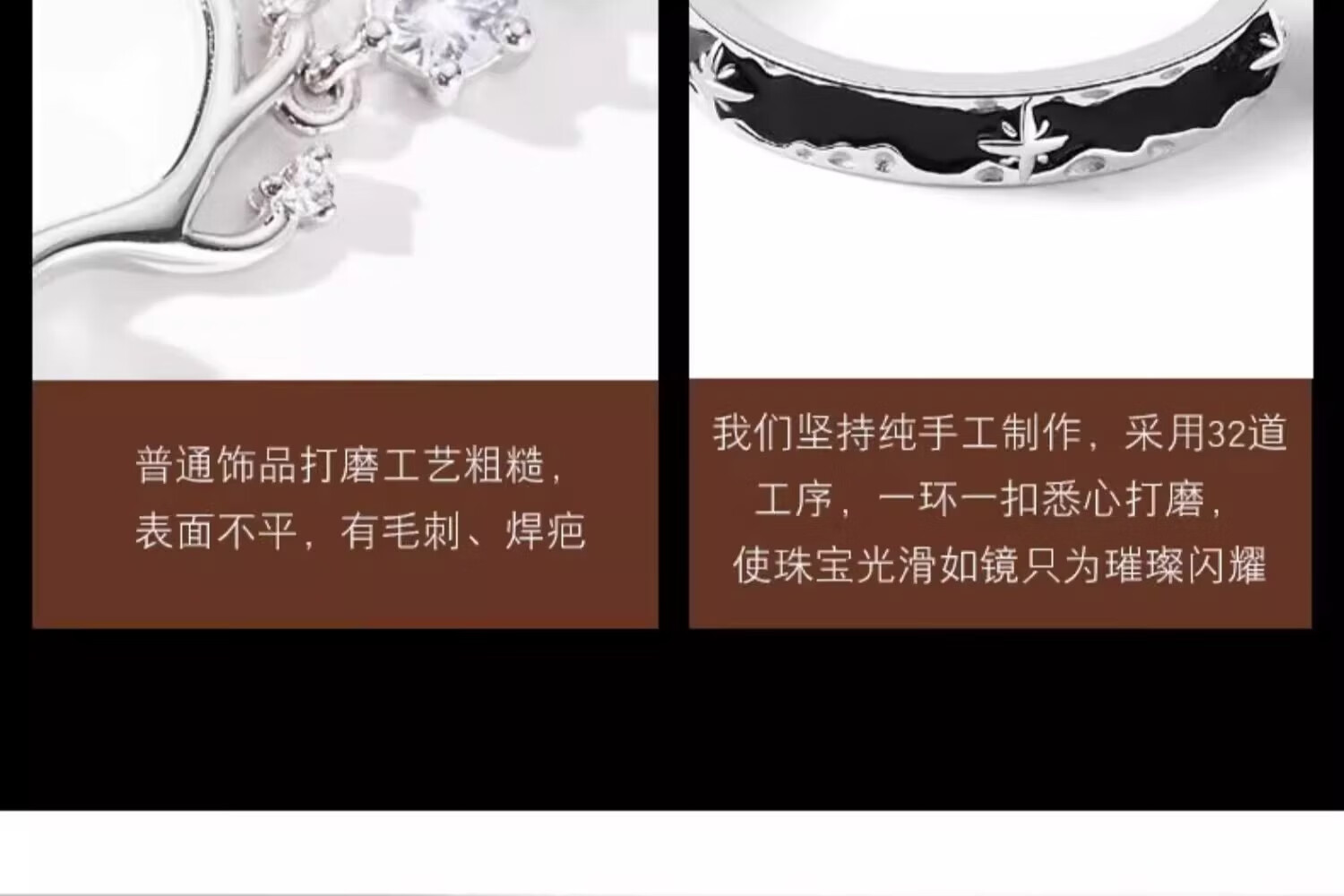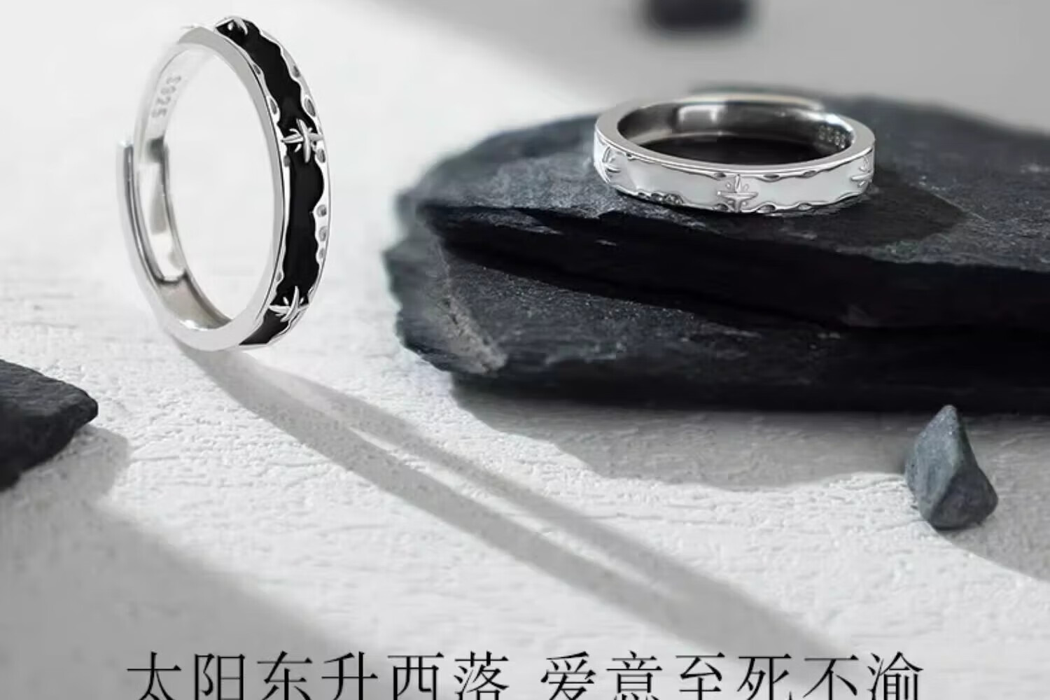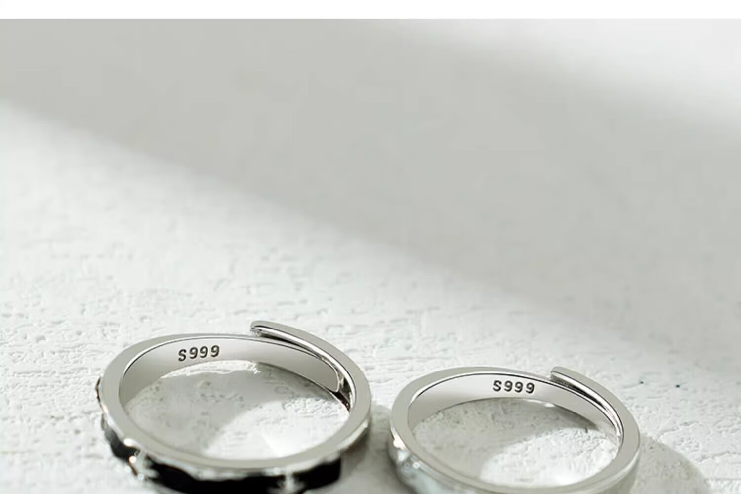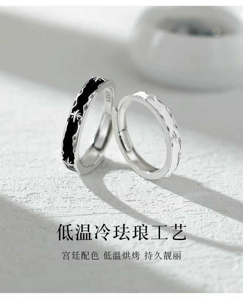 赫莲娜黑夜与黎明足银情侣款戒指女小众对戒生日纪念日情人节礼物送女友 「黑暗与黎明」S999对戒+礼盒