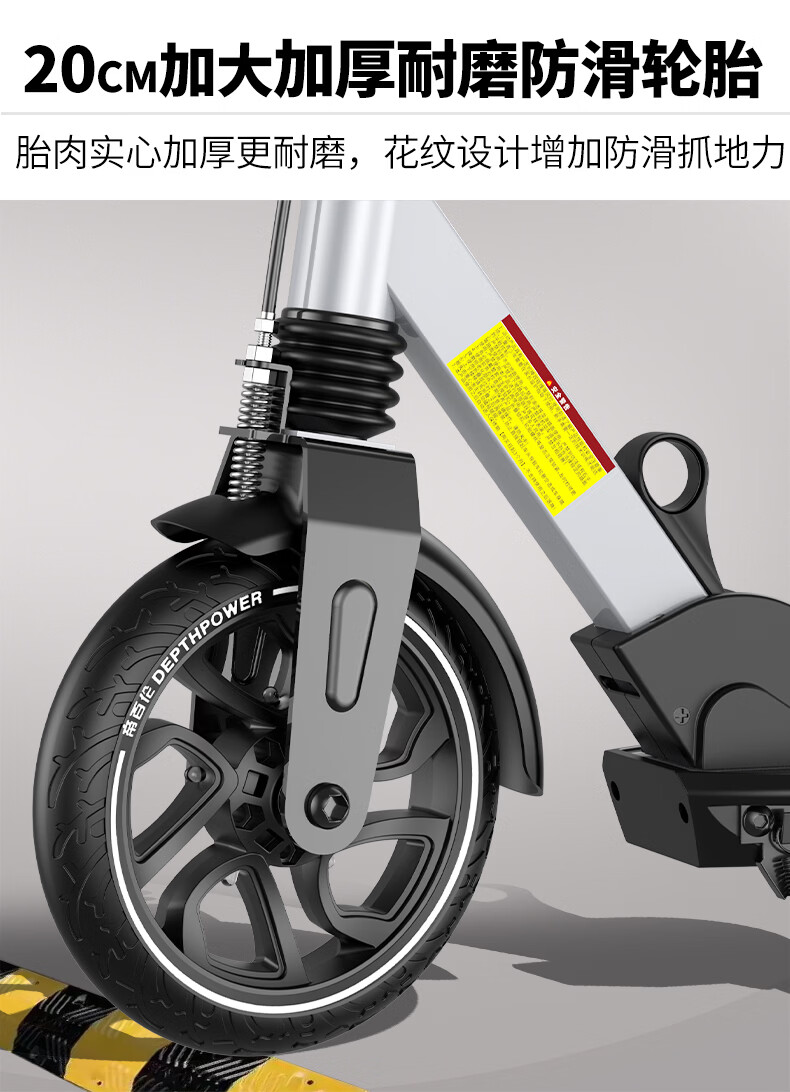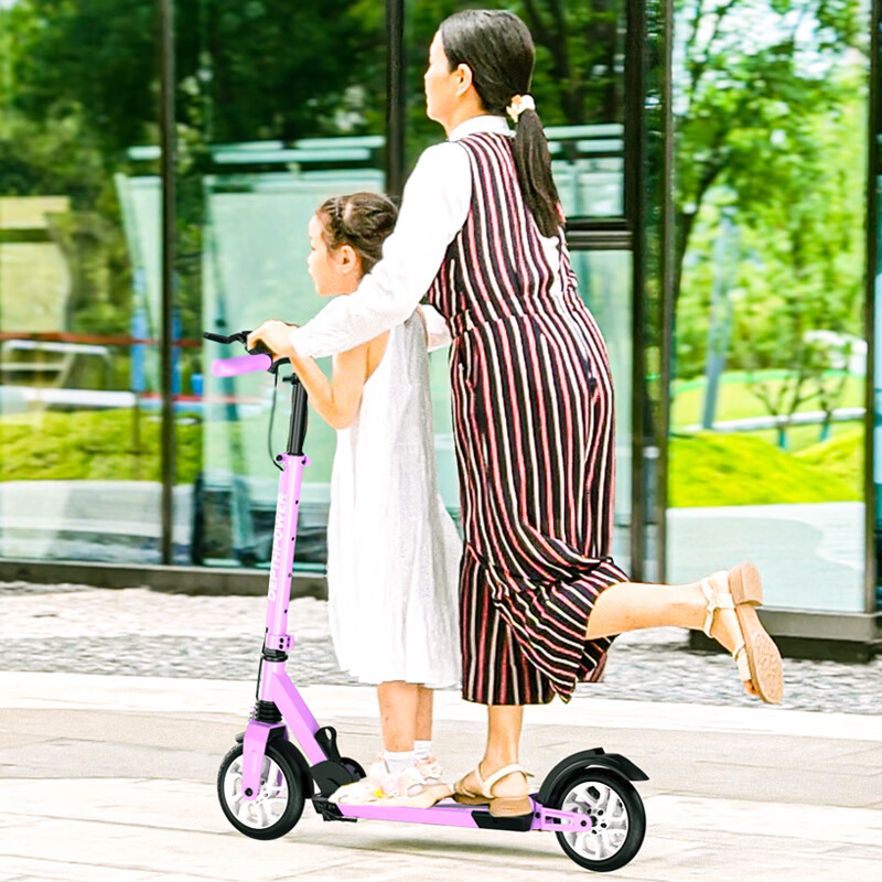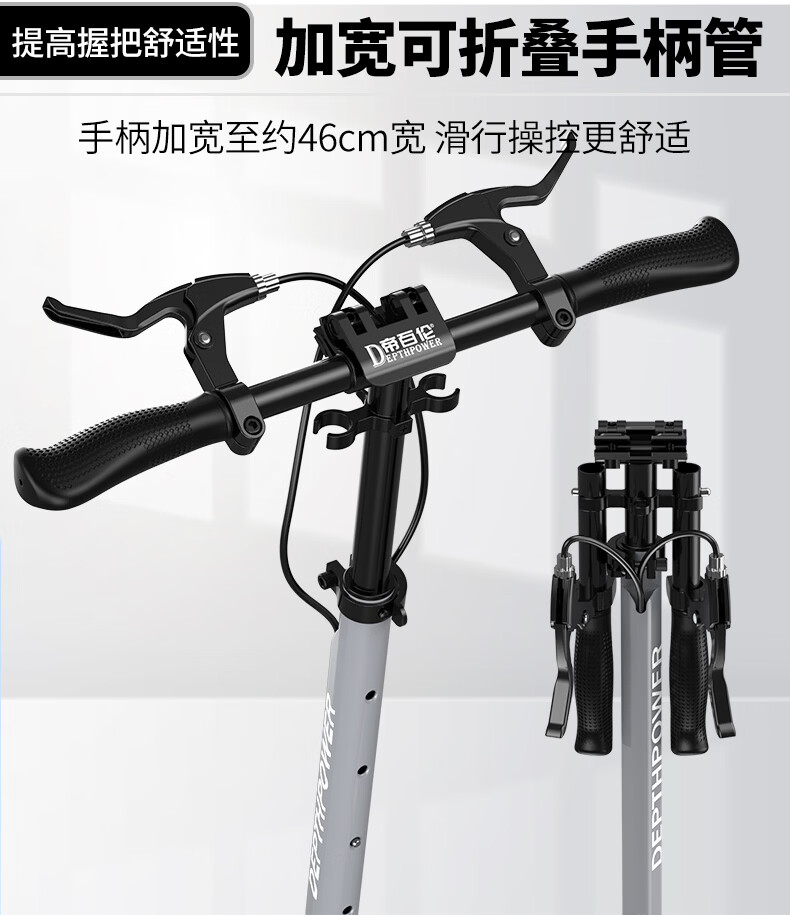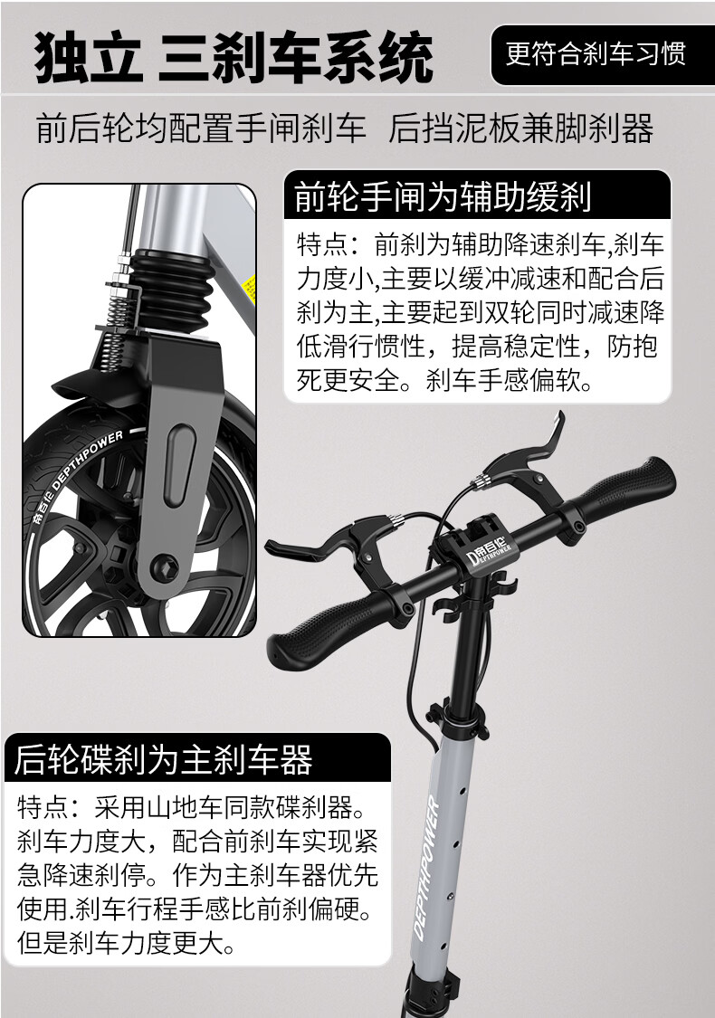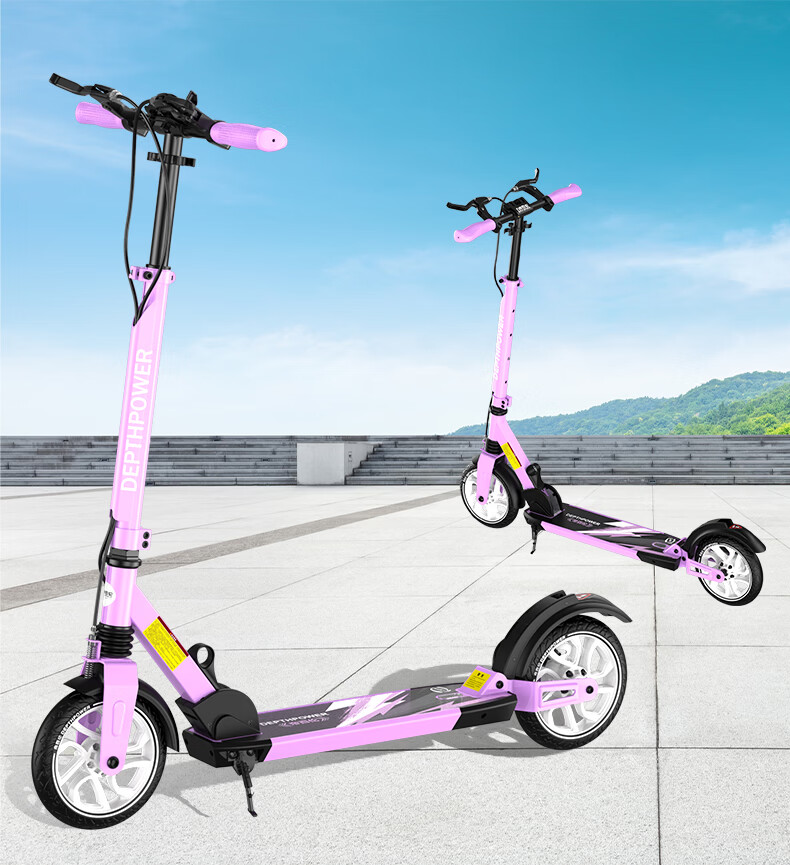 DEPTHPOWER成人滑板车儿童6-14岁大人两轮通勤代步车三刹车两减震 罗兰紫[三刹车+防滑闪光轮+转向限位]