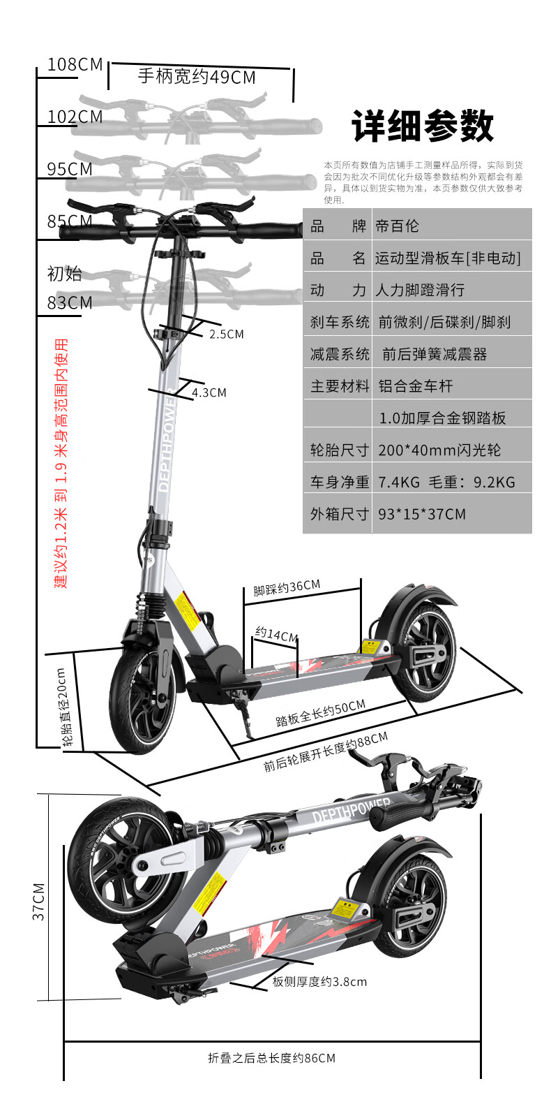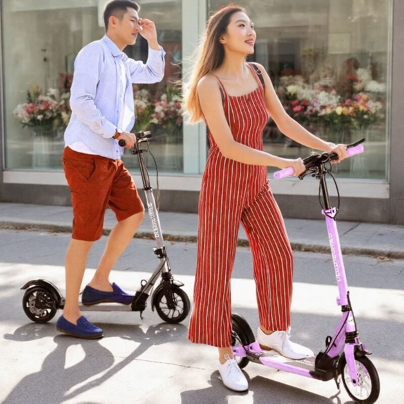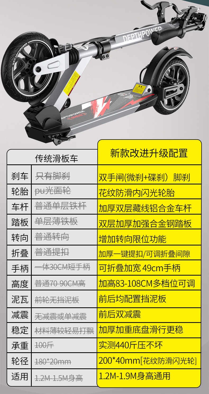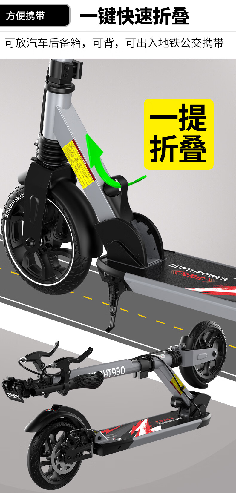 DEPTHPOWER成人滑板车儿童6-14岁大人两轮通勤代步车三刹车两减震 罗兰紫[三刹车+防滑闪光轮+转向限位]