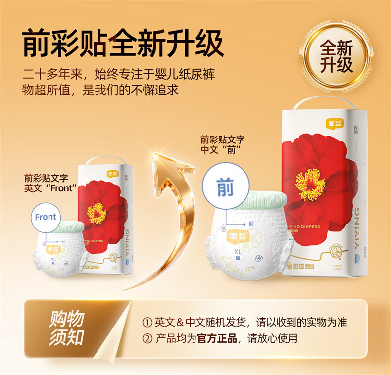 宜婴弱酸红山茶花裤小内裤干爽透气拉拉裤新生儿尿不湿 拉拉裤M16片【Mini装】