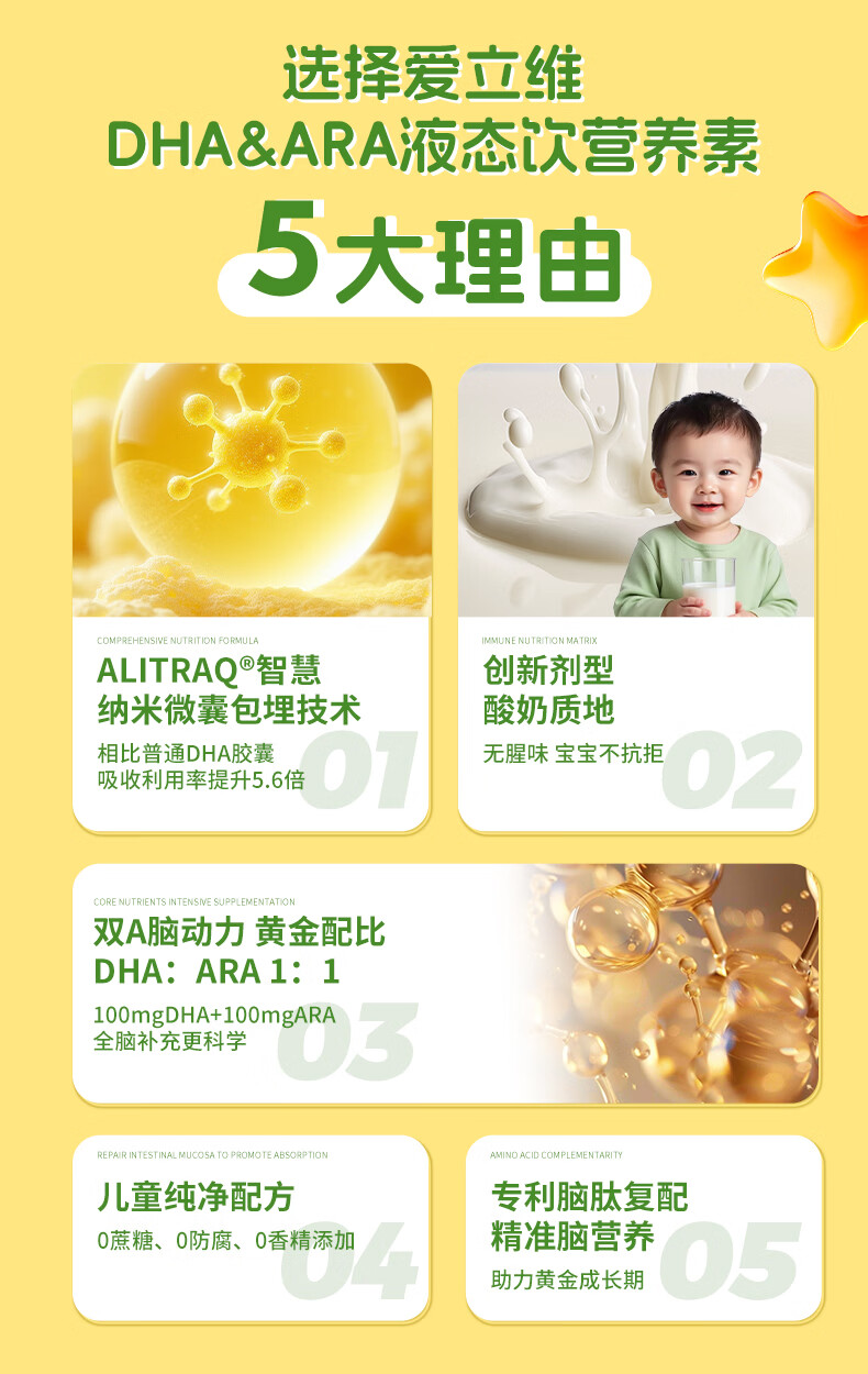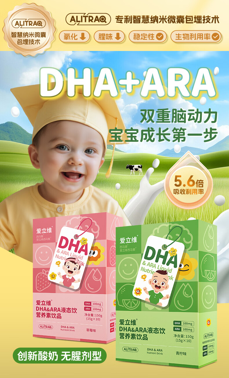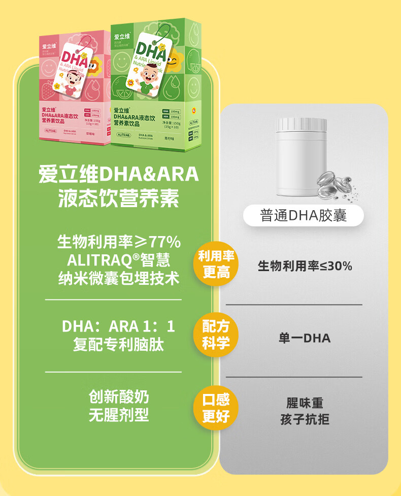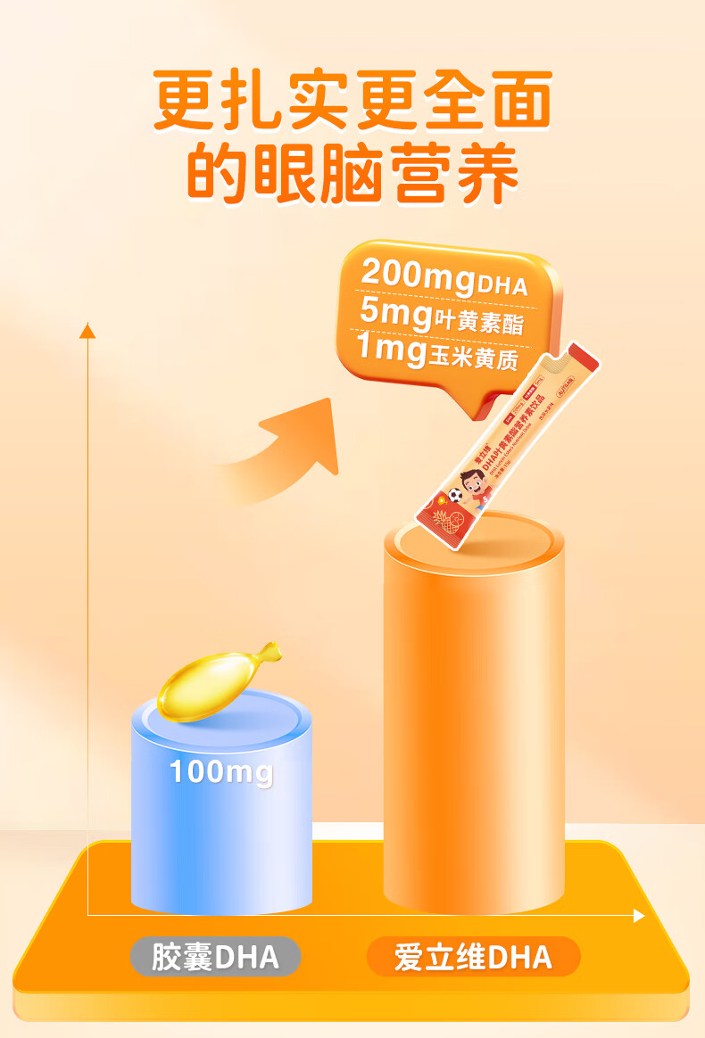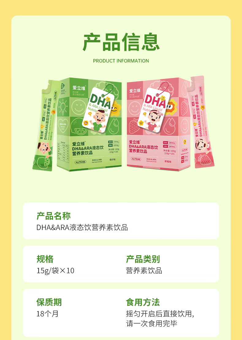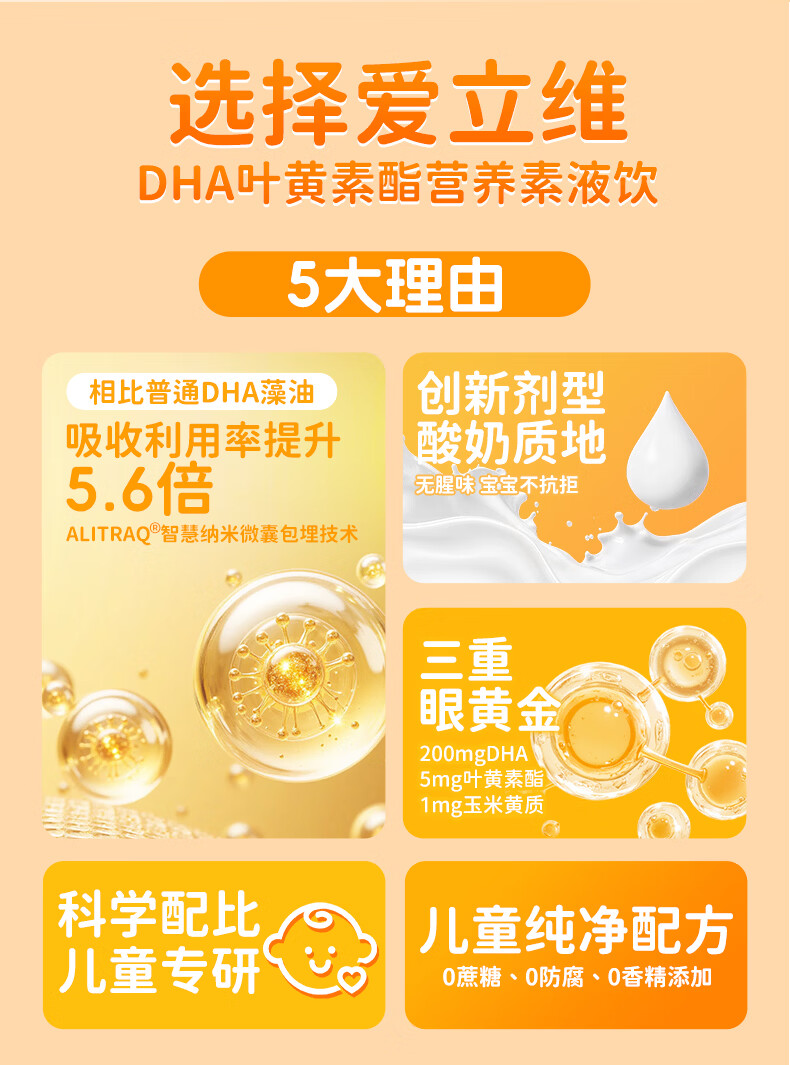 佰倍优爱立维dha藻油ARA双A液态饮叶黄素酯眼脑健康营养素饮品 【眼脑双营养】热带水果味 10条*3盒