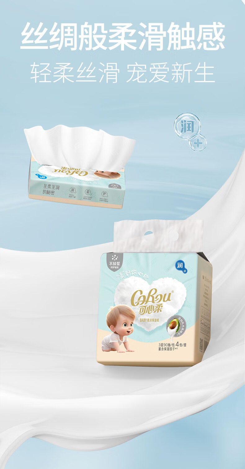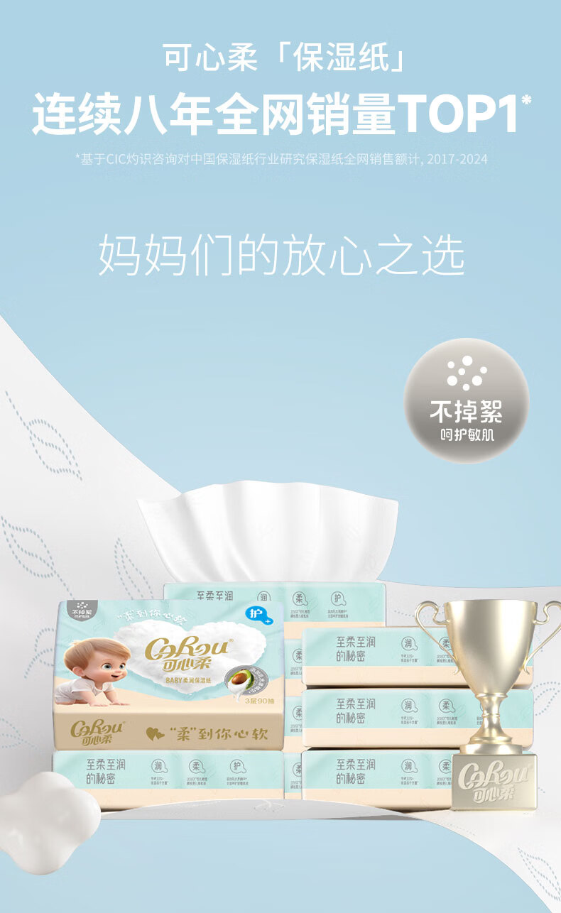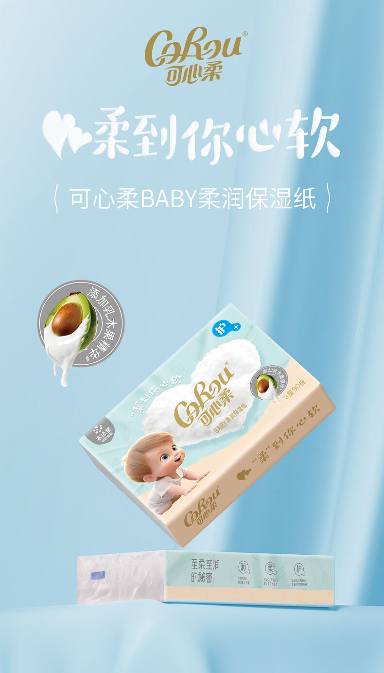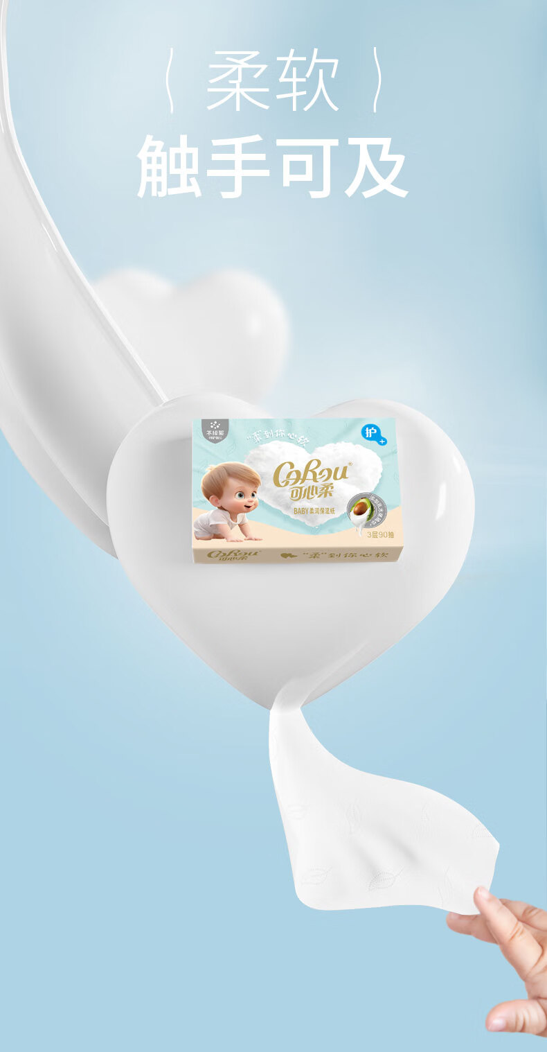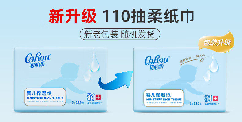 可心柔(COROU)V9婴儿乳霜纸母婴宝宝云柔巾卫生纸抽纸 【经典保湿纸】 3层 120抽*15包