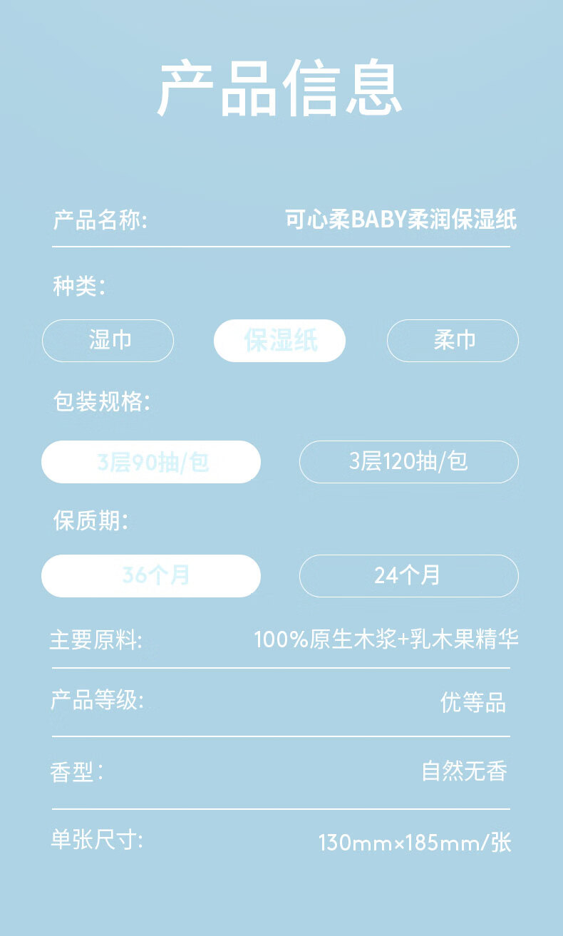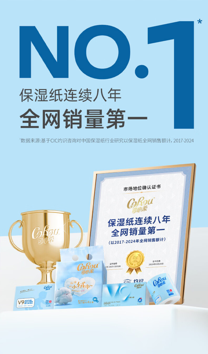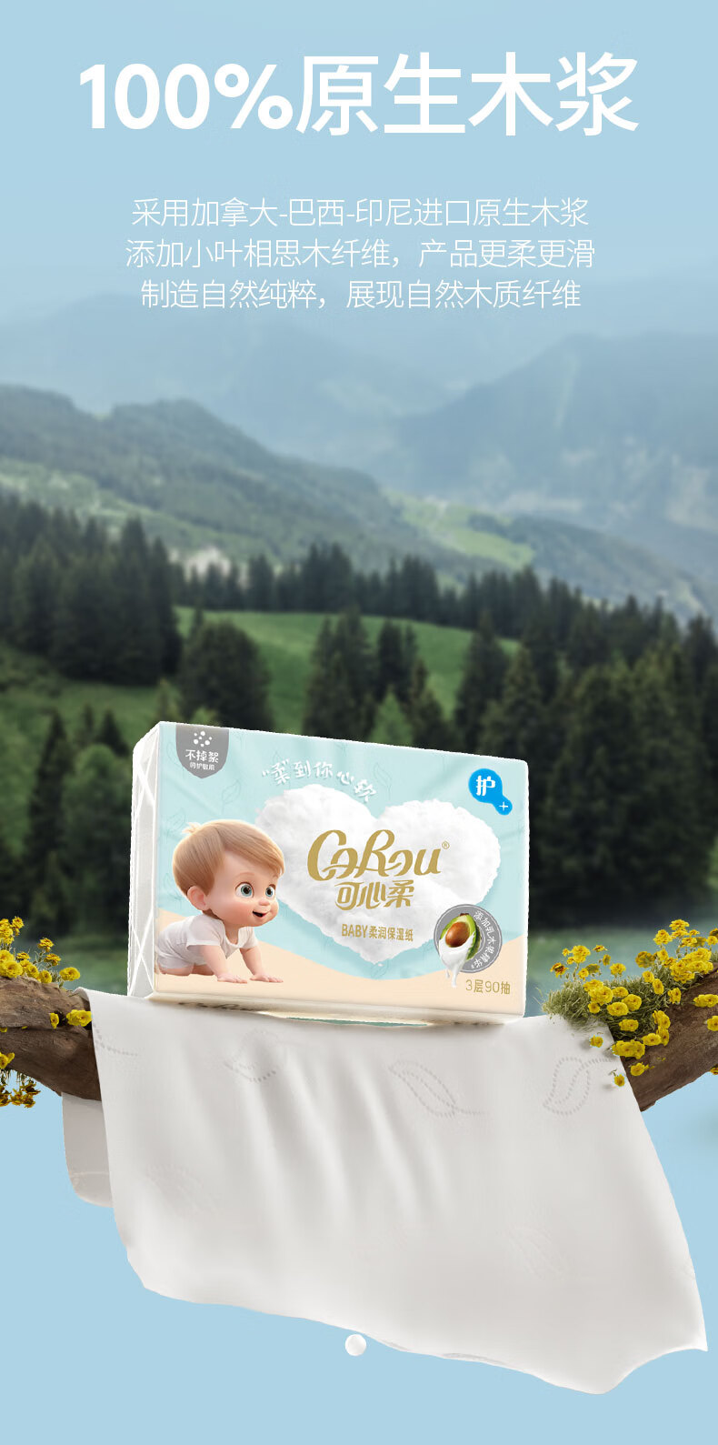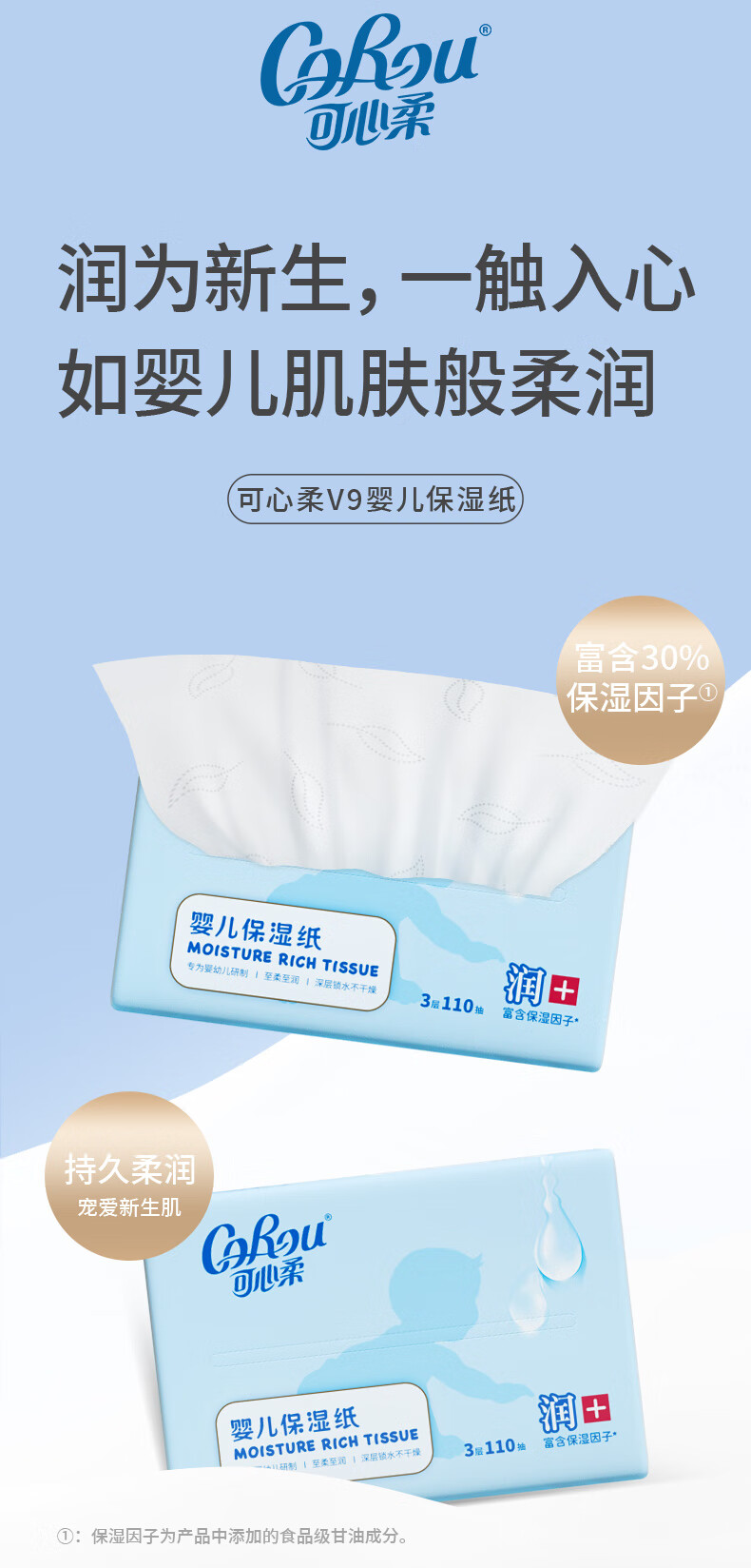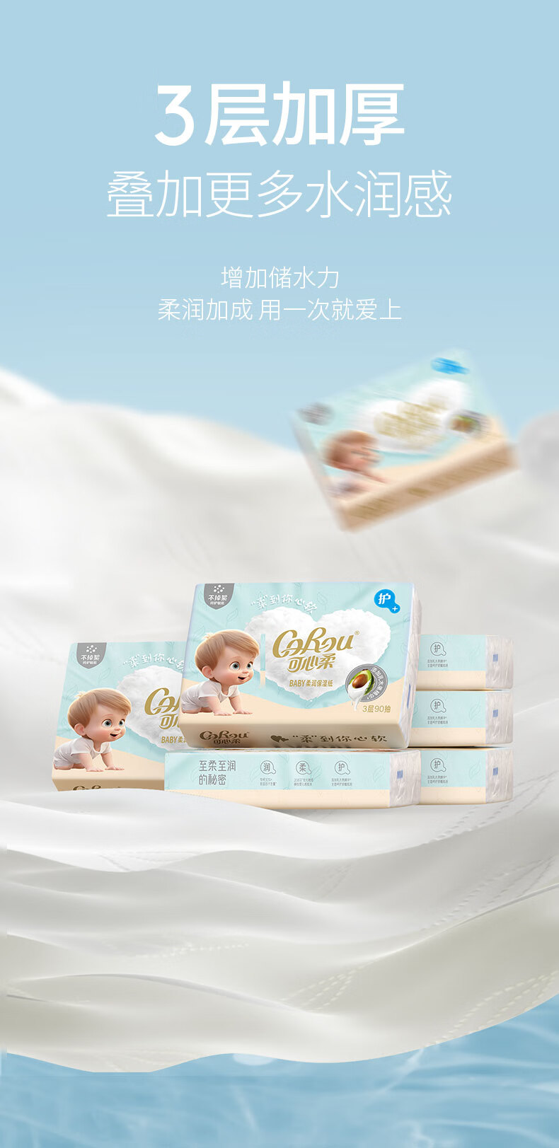 可心柔(COROU)V9婴儿乳霜纸母婴宝宝云柔巾卫生纸抽纸 【经典保湿纸】 3层 120抽*15包