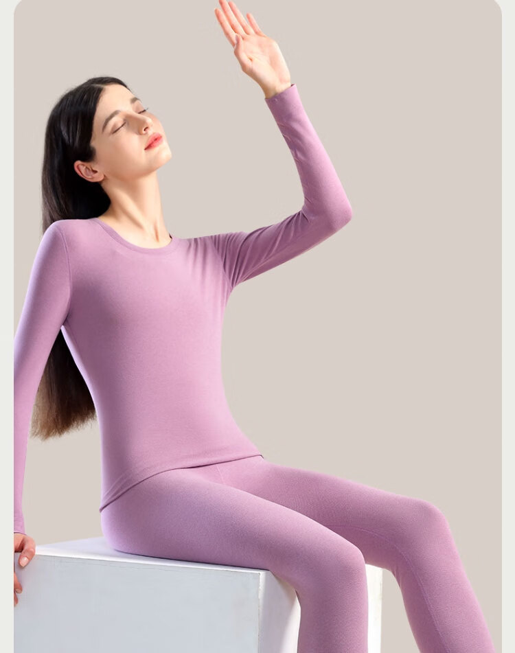 雪中飞羽绒蚕丝秋衣秋裤女套装德绒保暖内衣加绒加厚秋冬季线衣裤 XZFZX-TZ9910香芋 【260g】 L 【建议100-115斤】