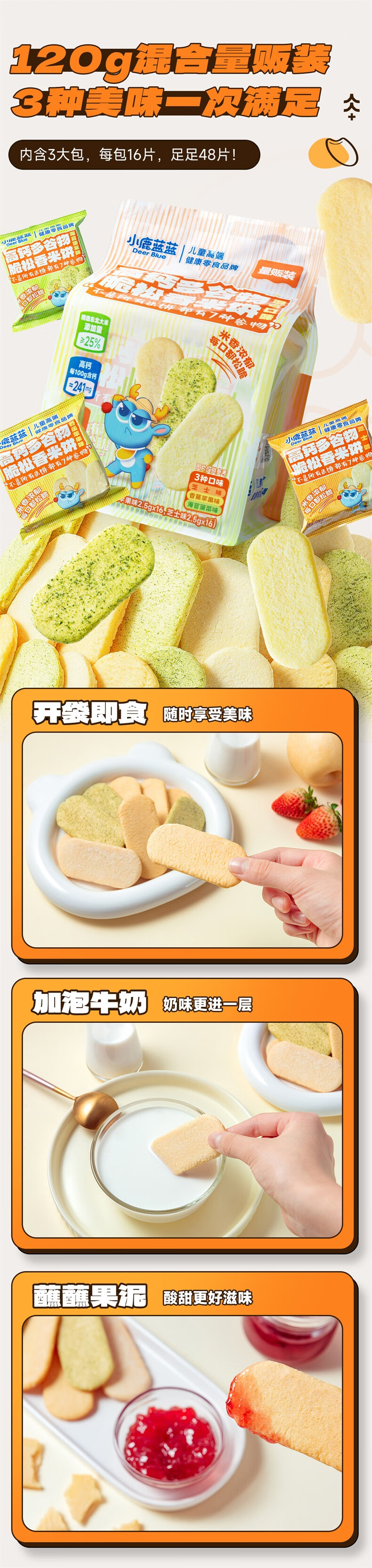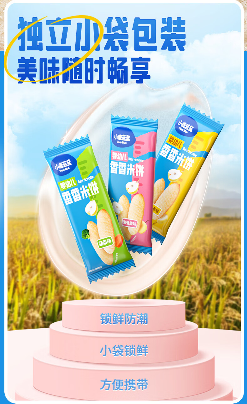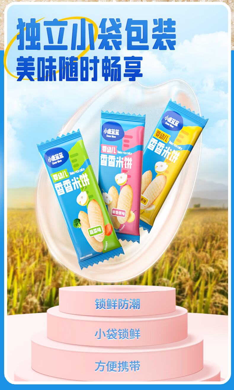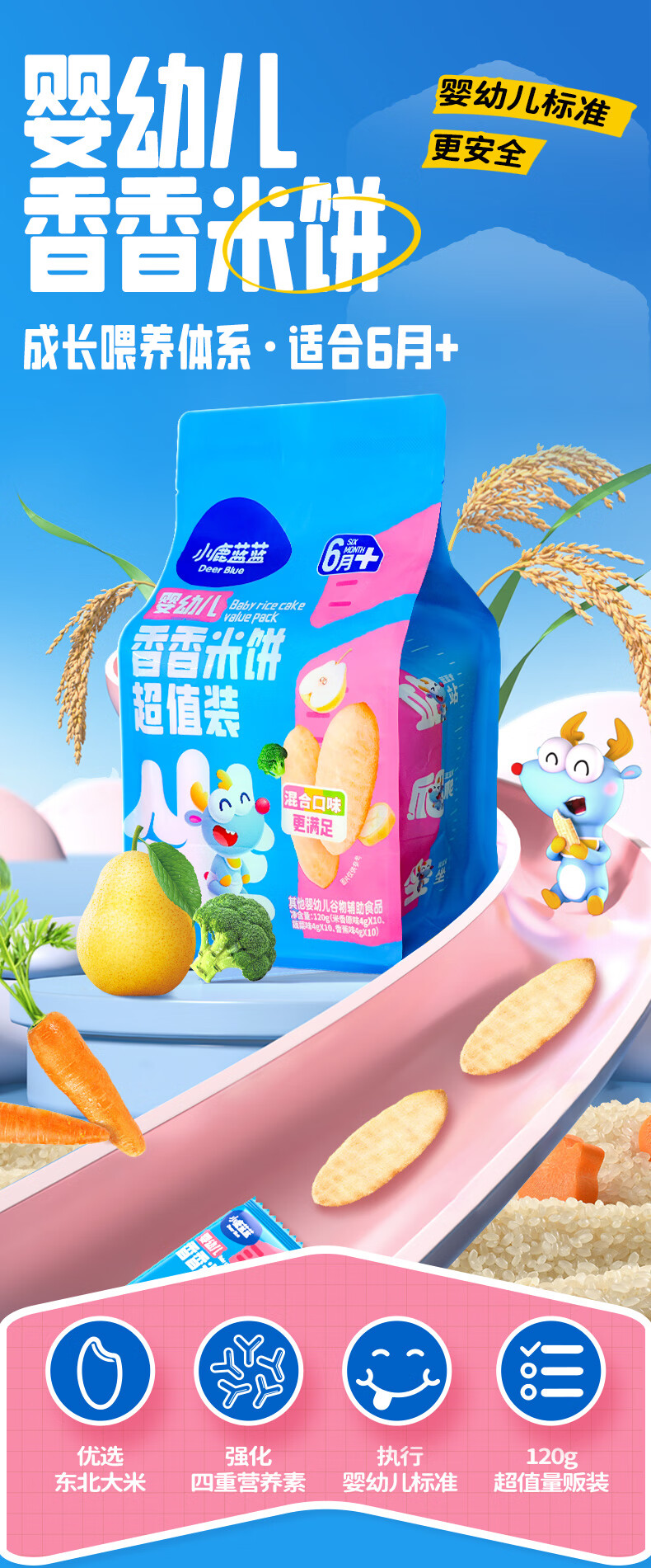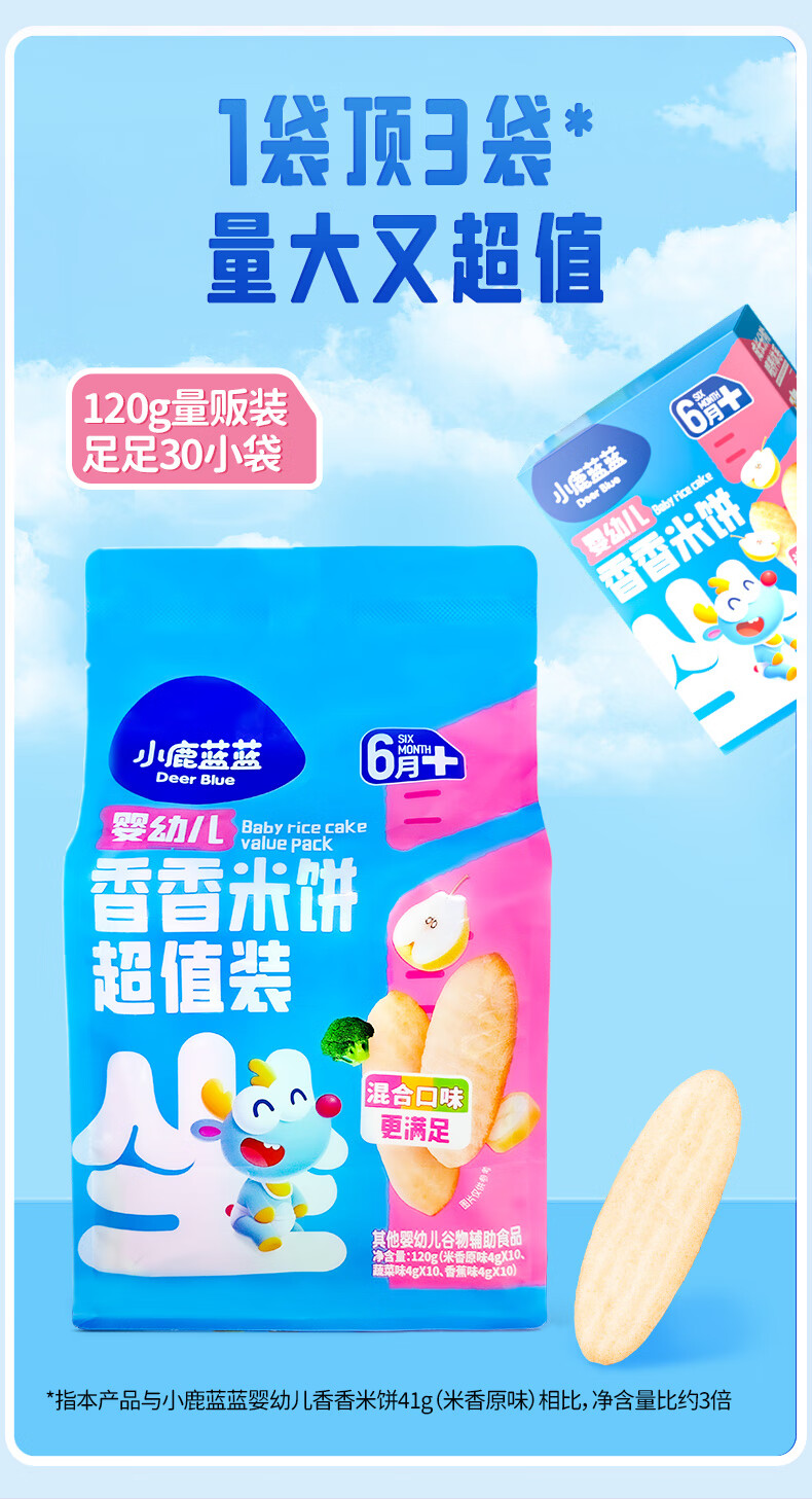 小鹿蓝蓝婴幼儿香香米饼 宝宝零食营养辅食温和磨牙米饼 入口易溶儿童零食 【6月+】混合口味60片120g