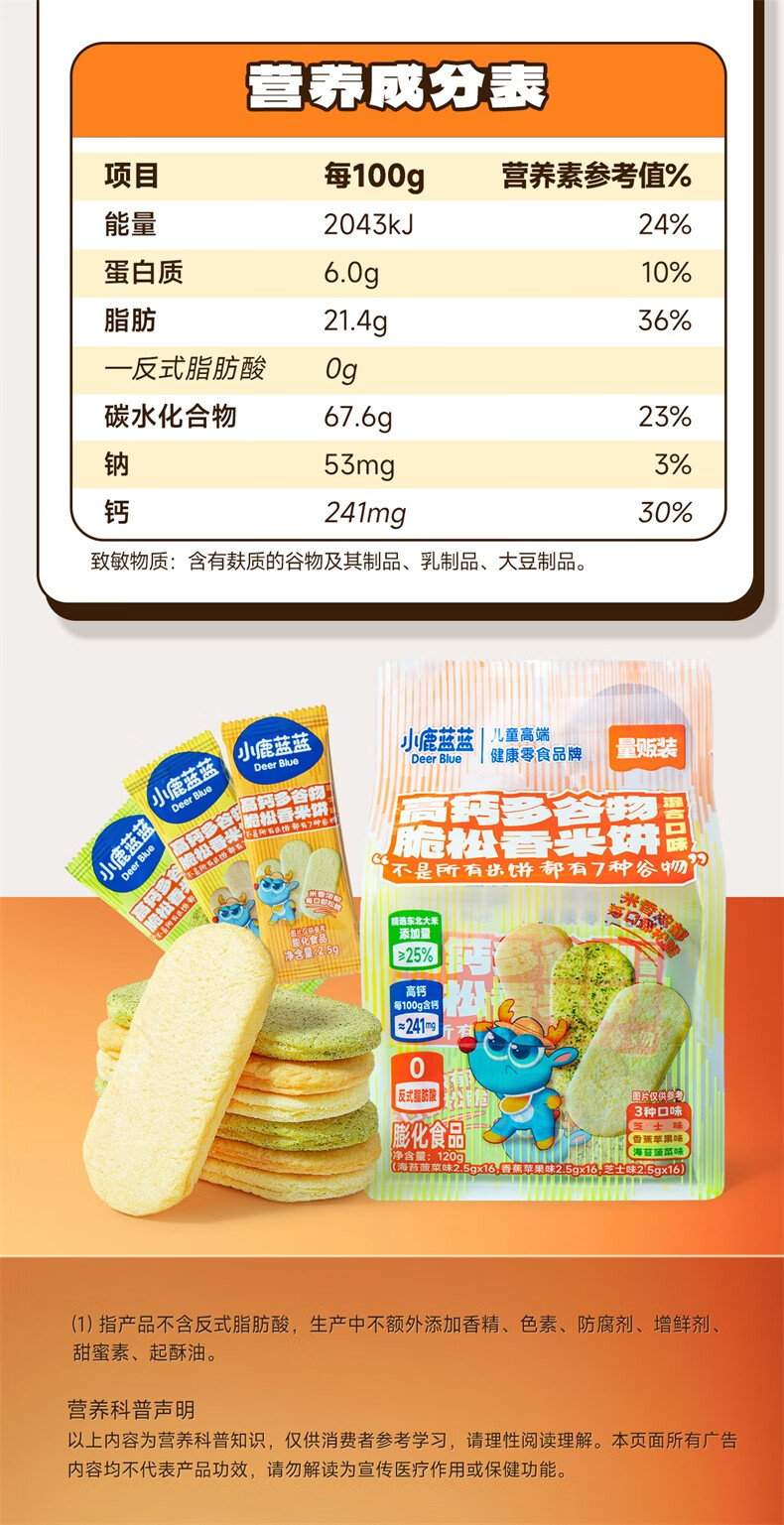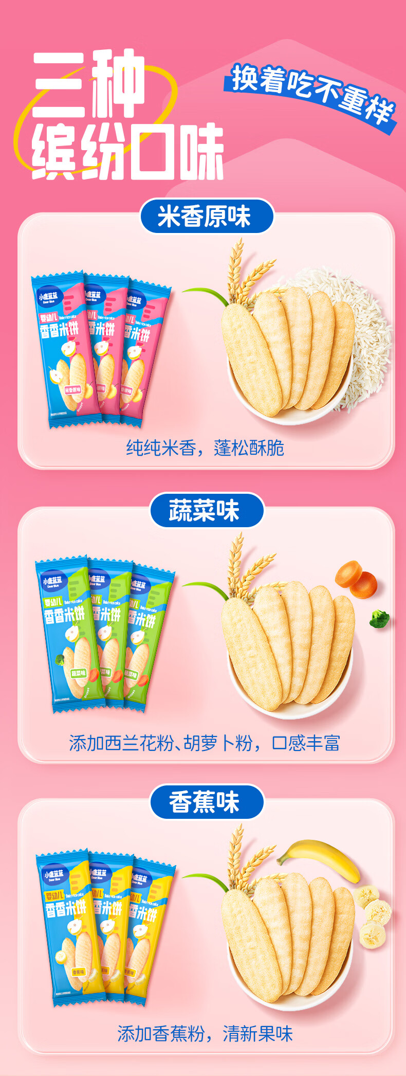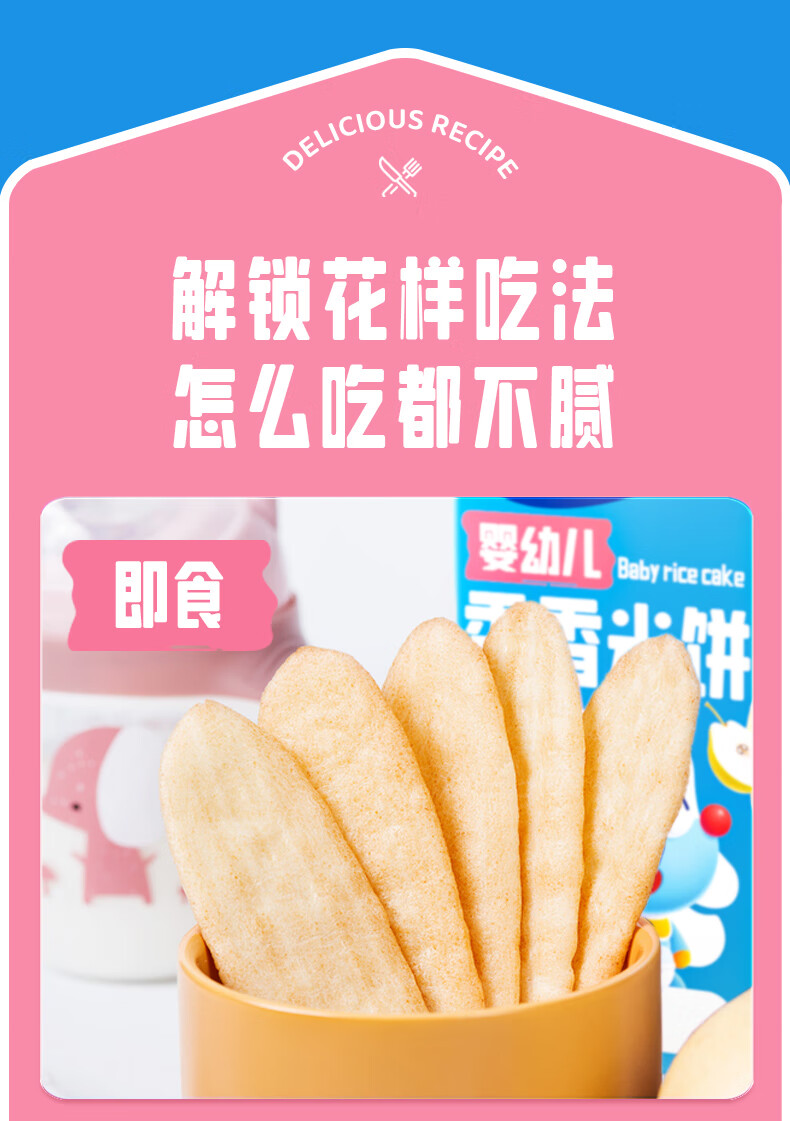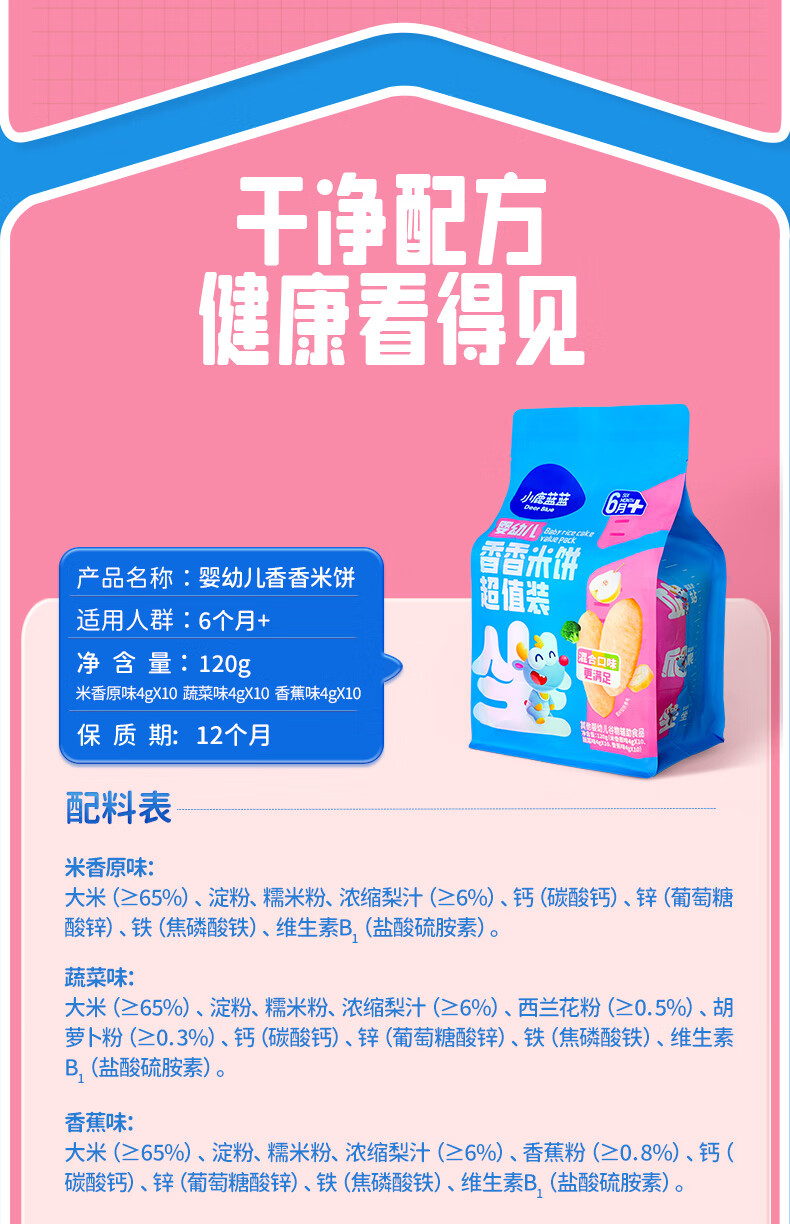 小鹿蓝蓝婴幼儿香香米饼 宝宝零食营养辅食温和磨牙米饼 入口易溶儿童零食 【6月+】混合口味60片120g