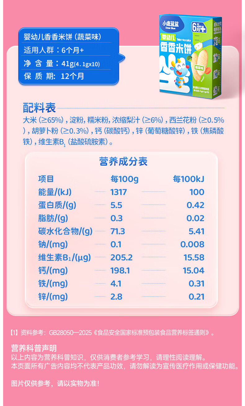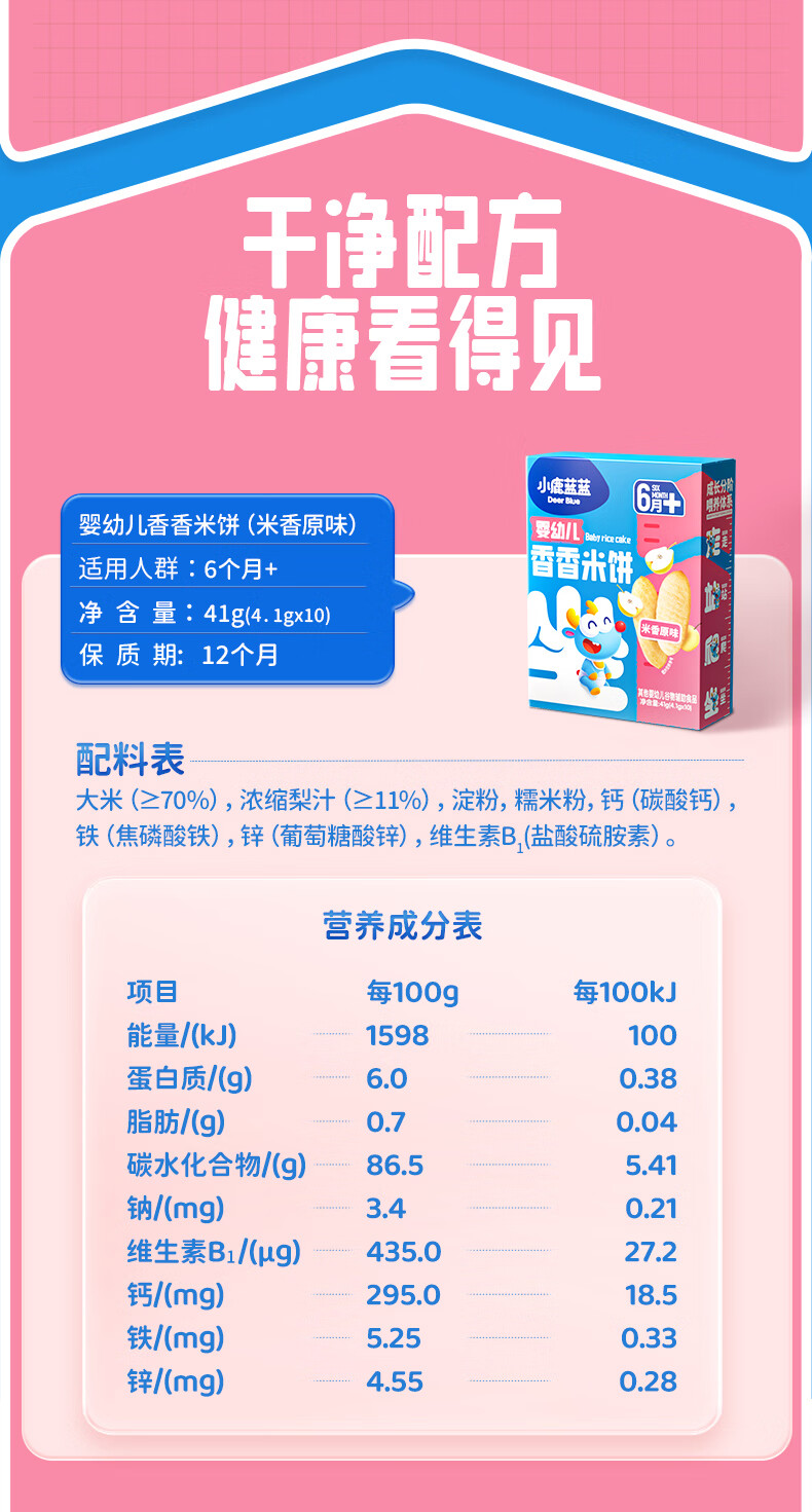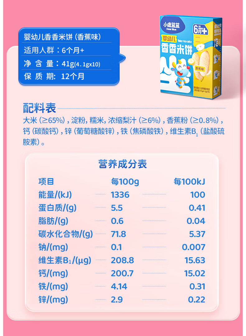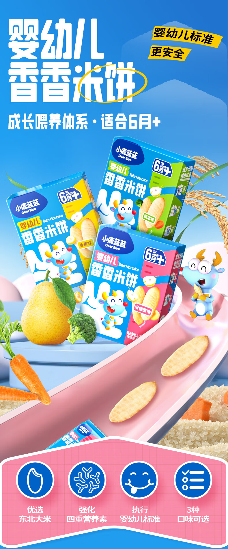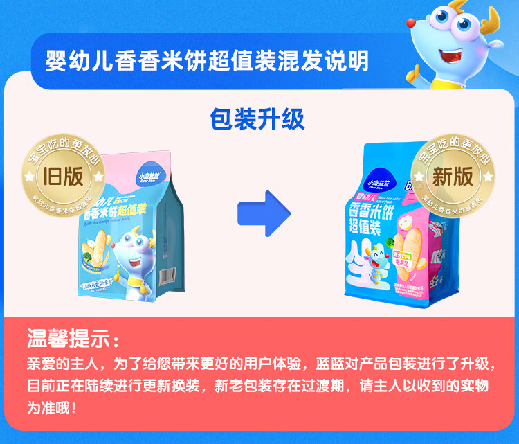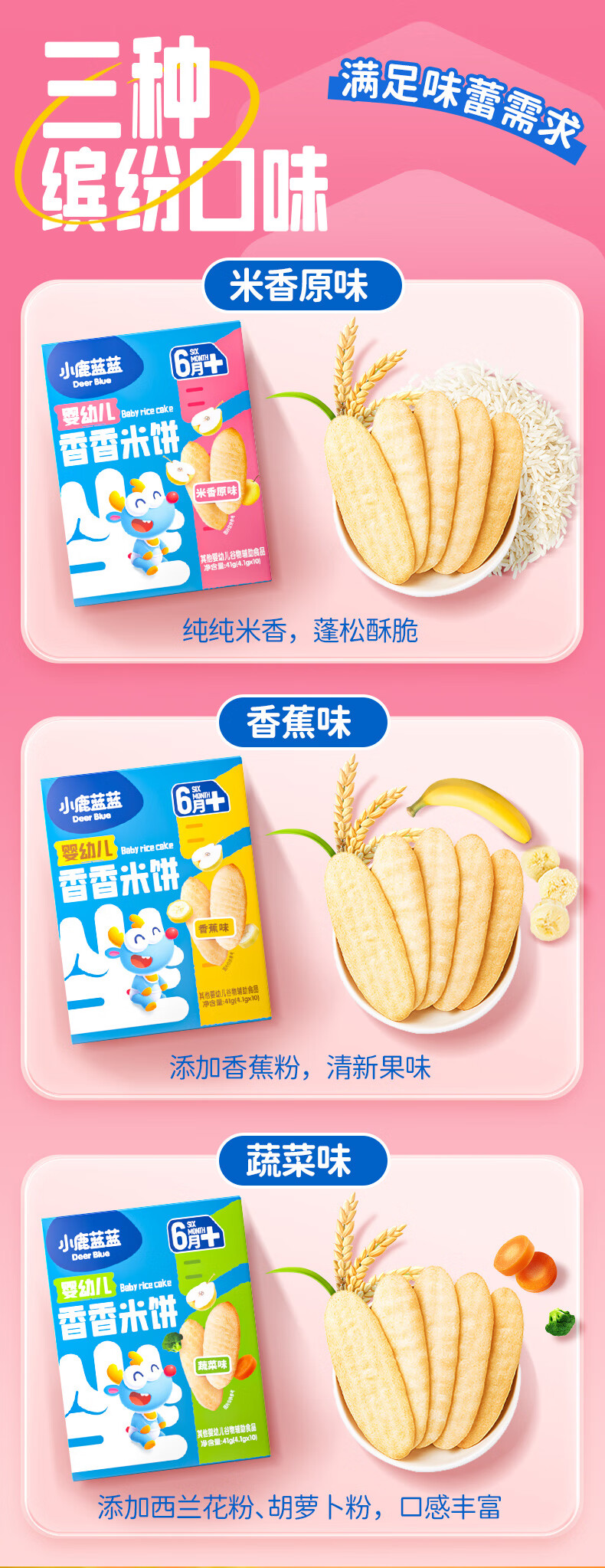 小鹿蓝蓝婴幼儿香香米饼 宝宝零食营养辅食温和磨牙米饼 入口易溶儿童零食 【6月+】混合口味60片120g