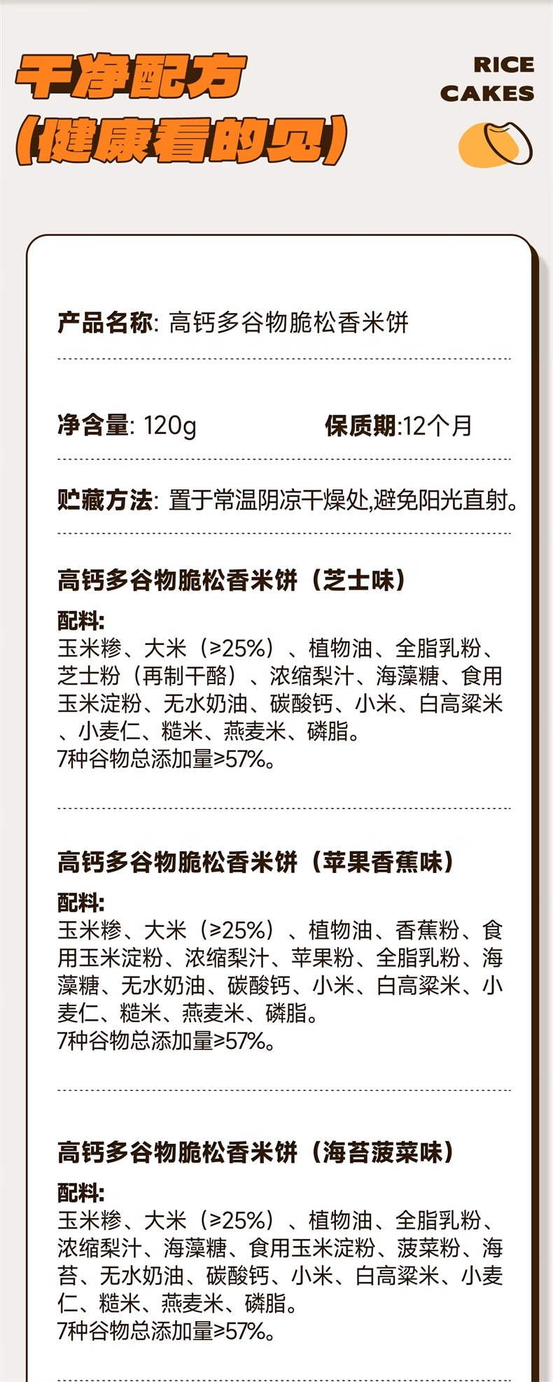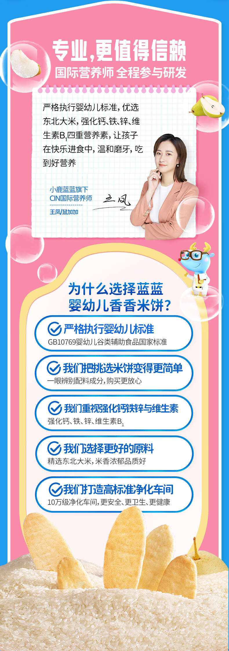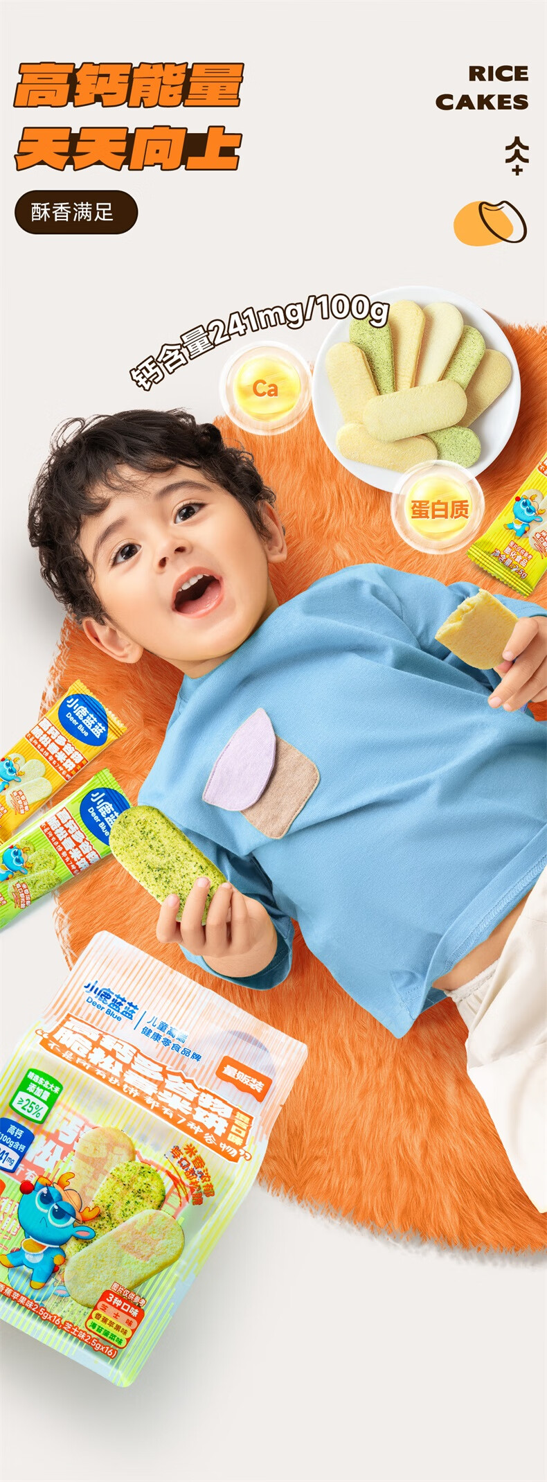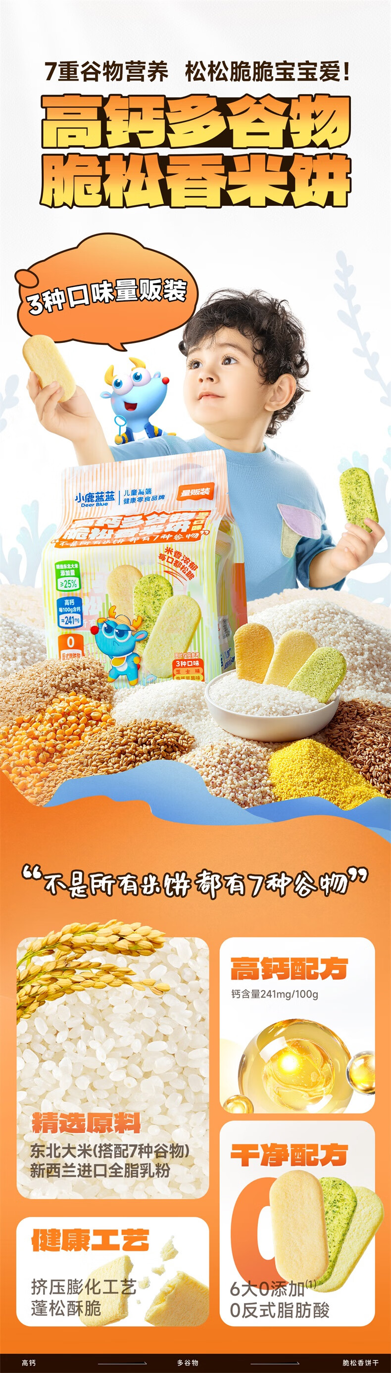 小鹿蓝蓝婴幼儿香香米饼 宝宝零食营养辅食温和磨牙米饼 入口易溶儿童零食 【6月+】混合口味60片120g