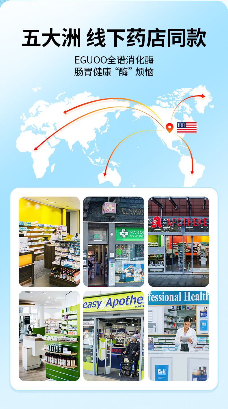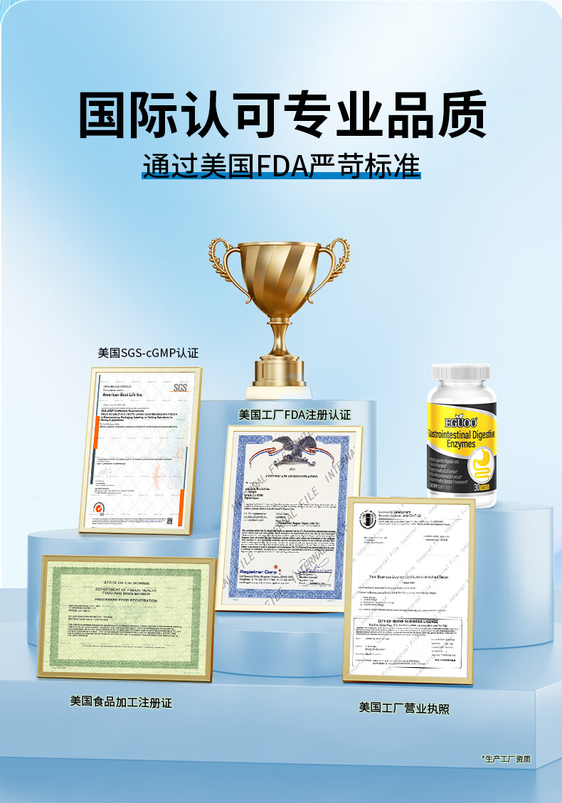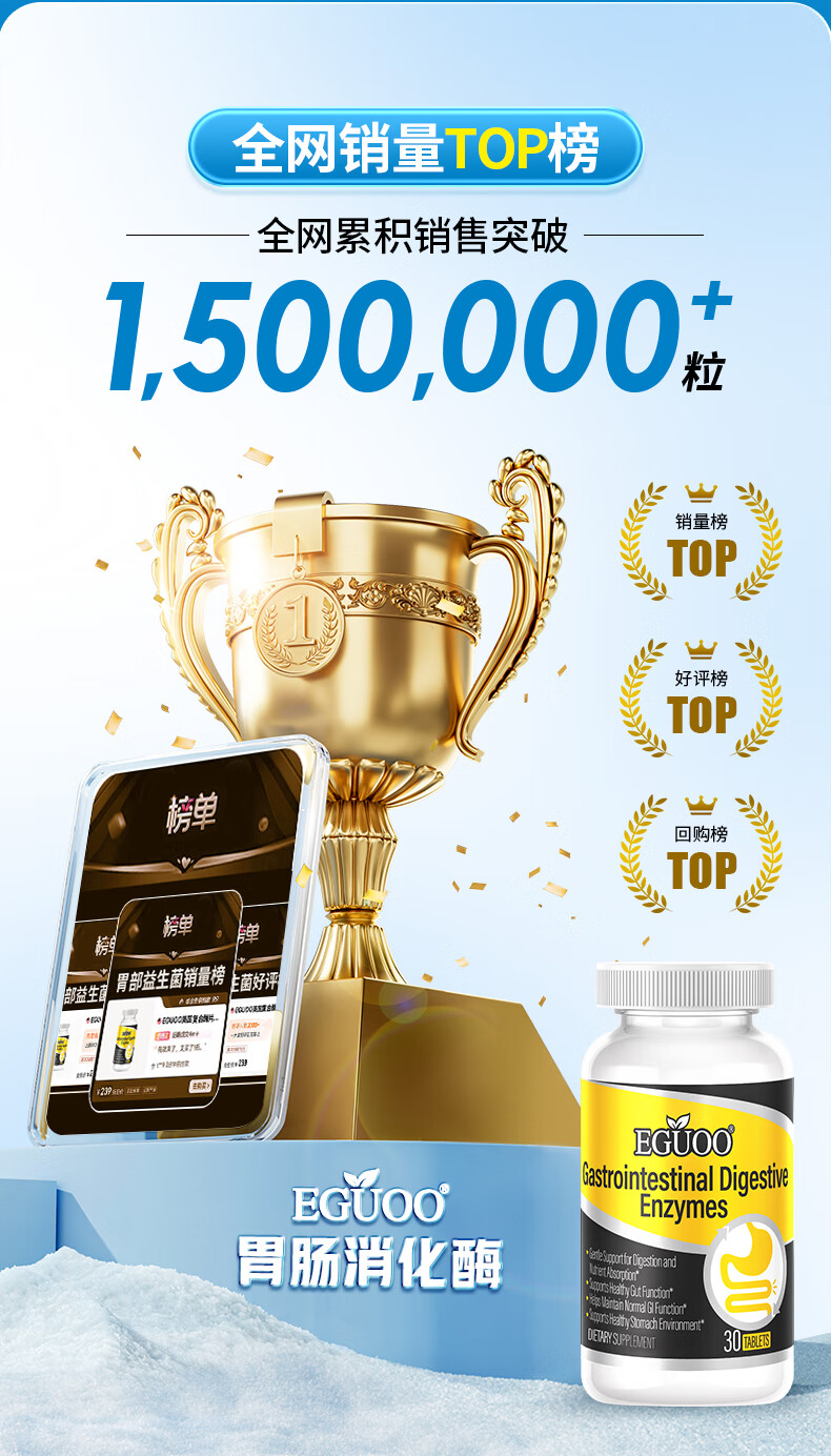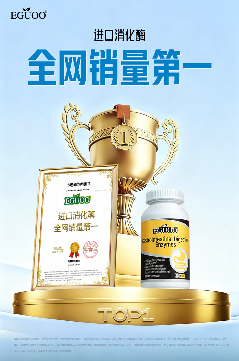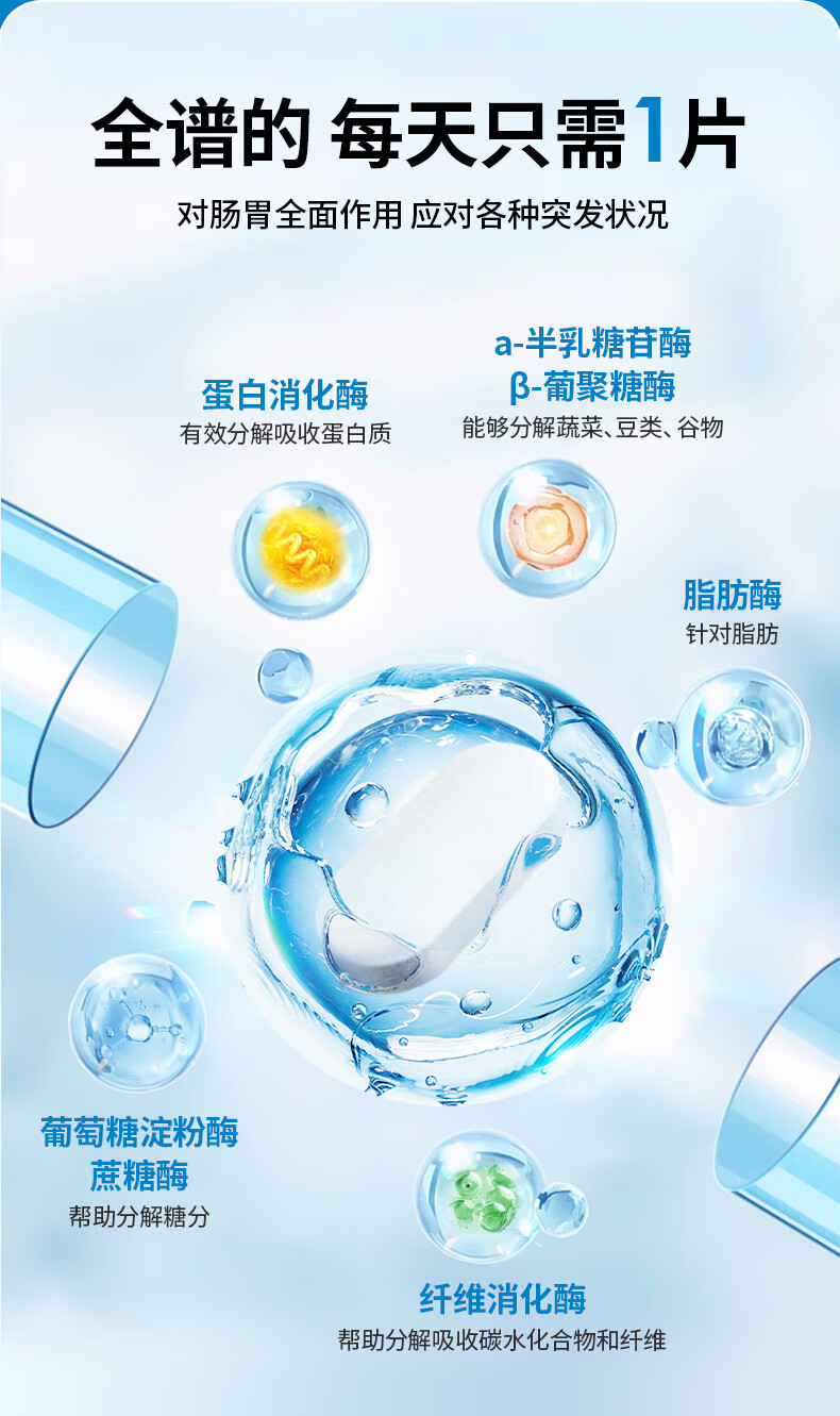 EGUOO原装进口复合消化酶肠胃片益生元 肠胃不适消化不良调理肠胃片 1瓶装(30天够用) 30粒*1瓶