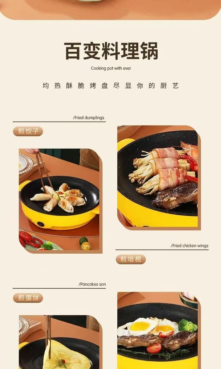 电烤盘烤肉锅烤肉盘烤肠机电烧烤炉家用烤肉盘室内外卖烧烤盘一体锅不粘锅 22cm电烤盘 1层