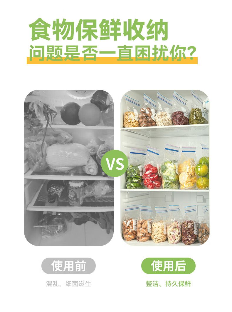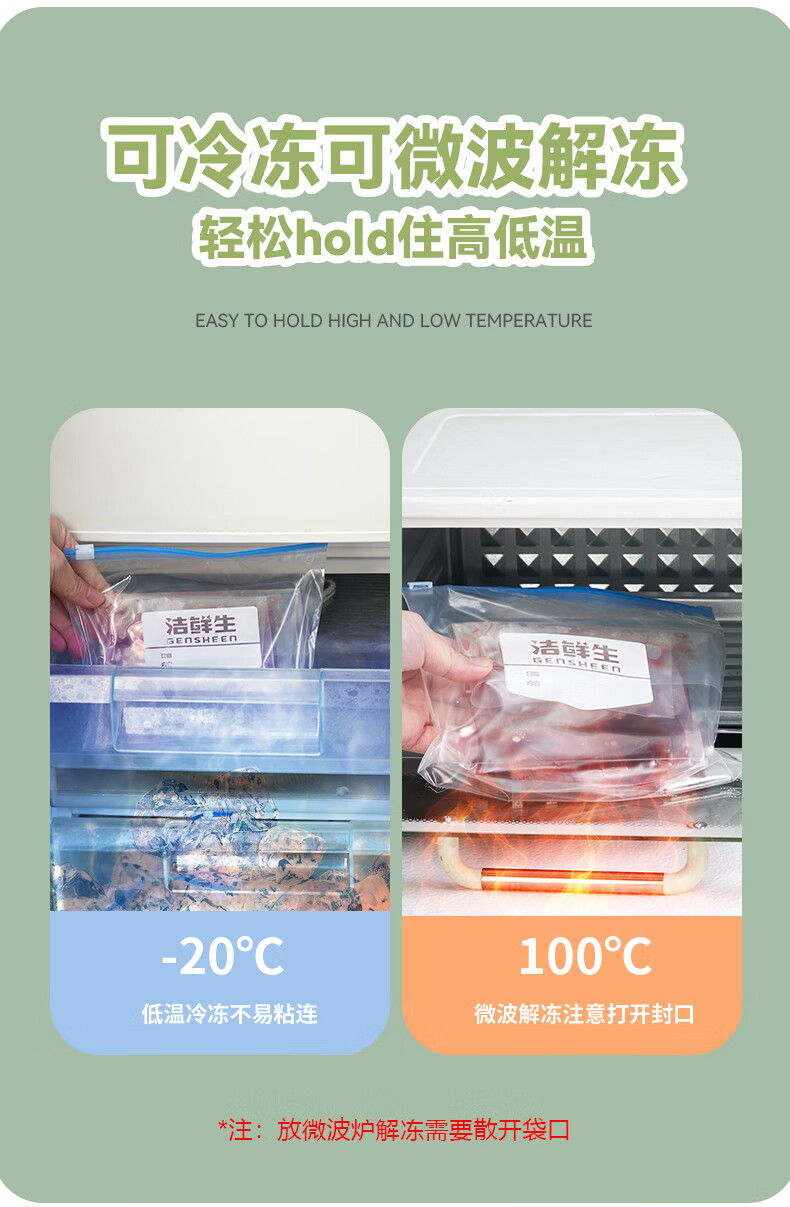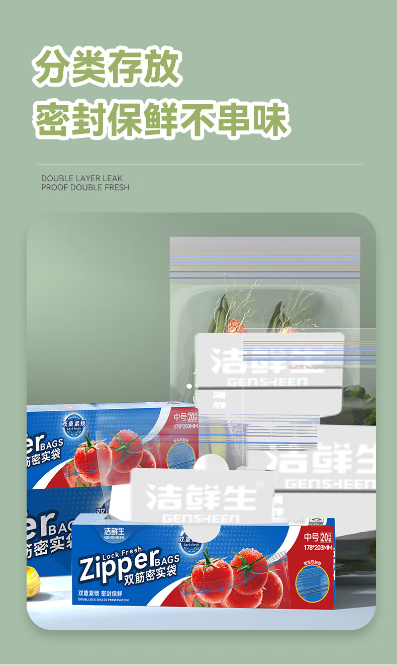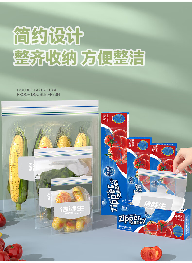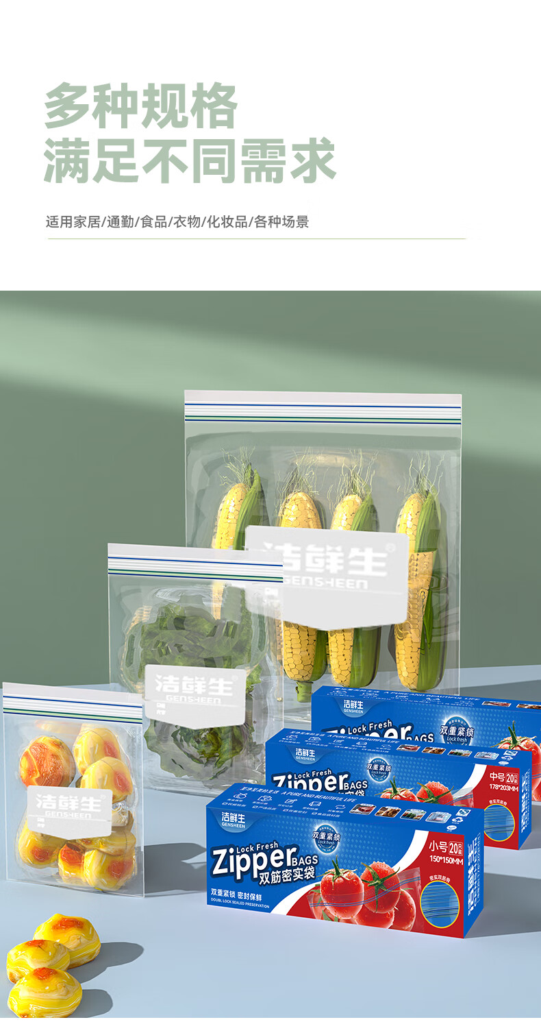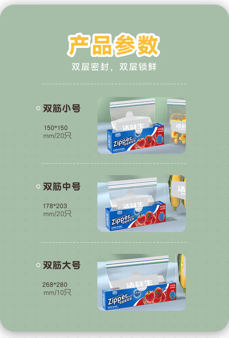 洁鲜生双筋密封袋收纳袋食品级加厚自封口PE啪嗒袋分装冰箱储物自封袋子 双筋小号+中号各1盒共40只