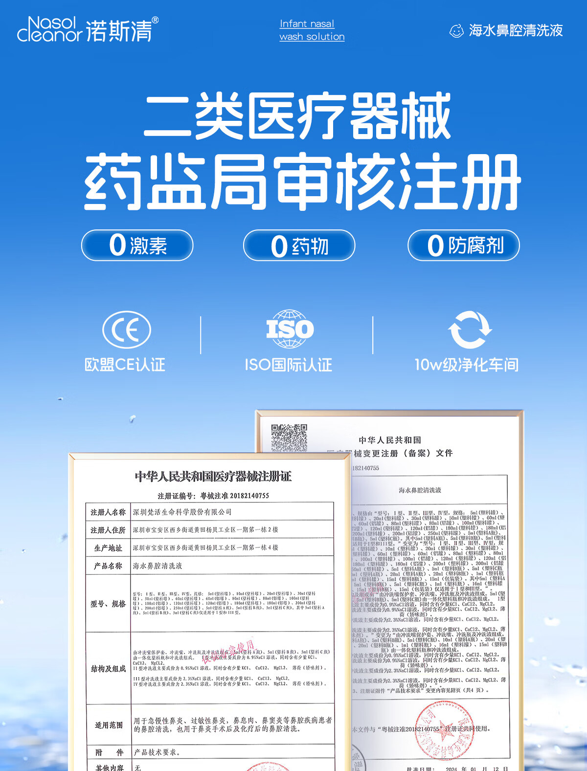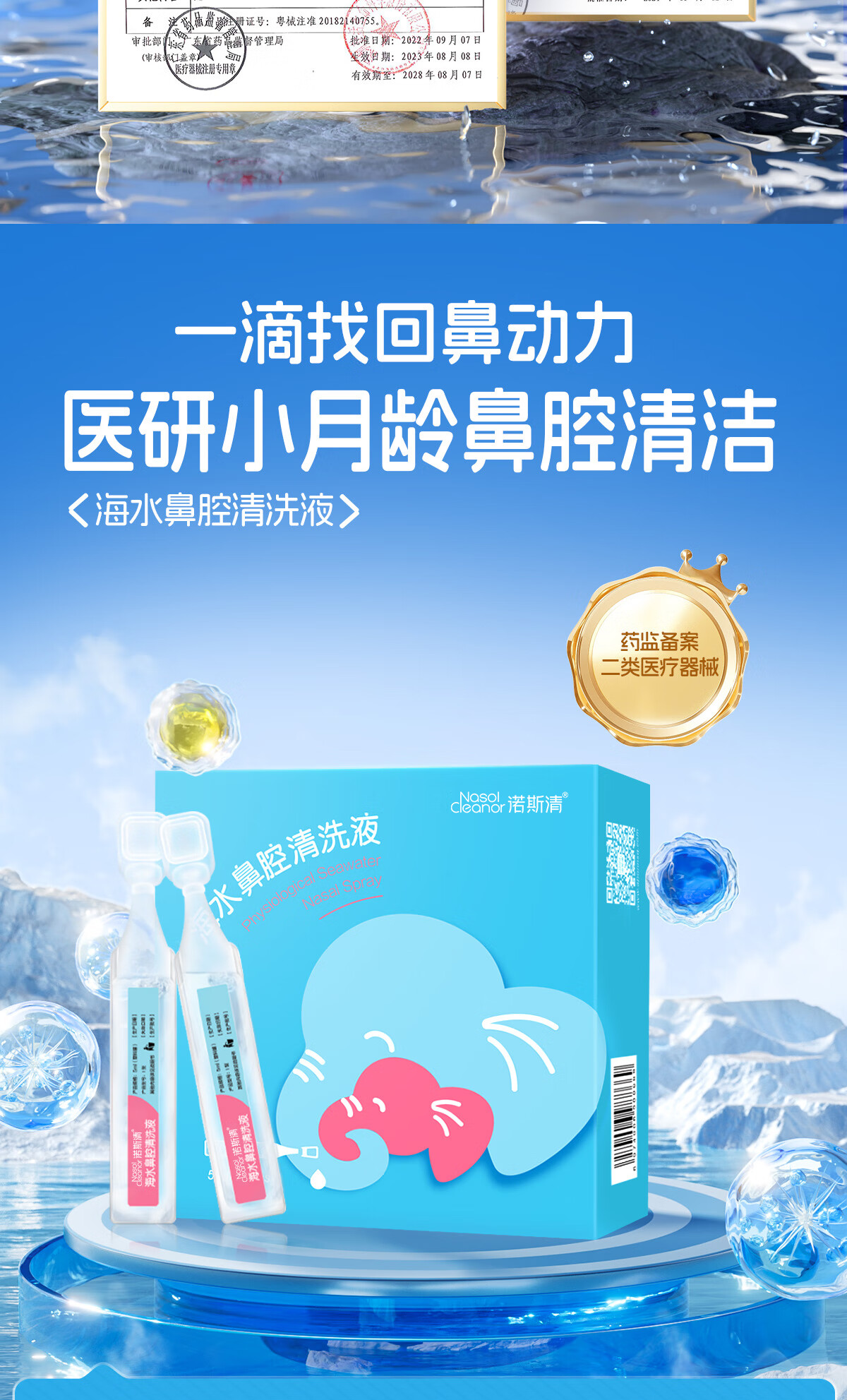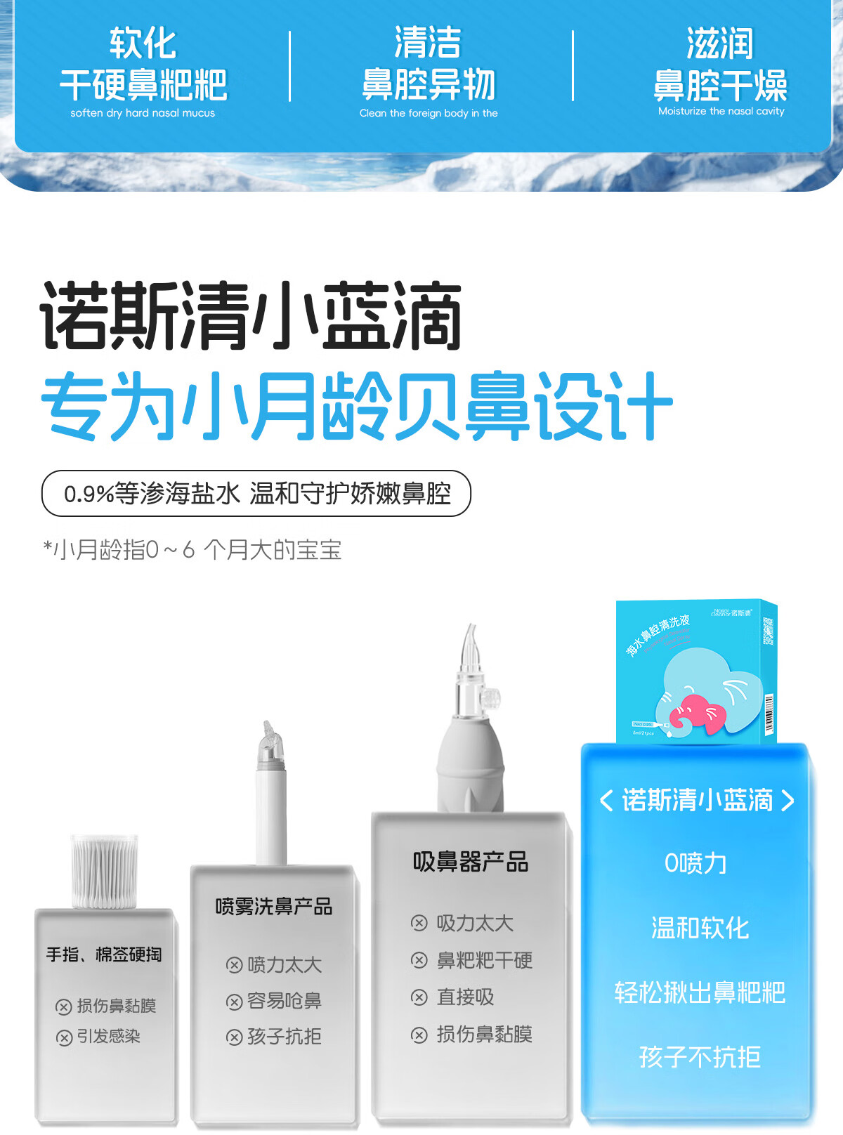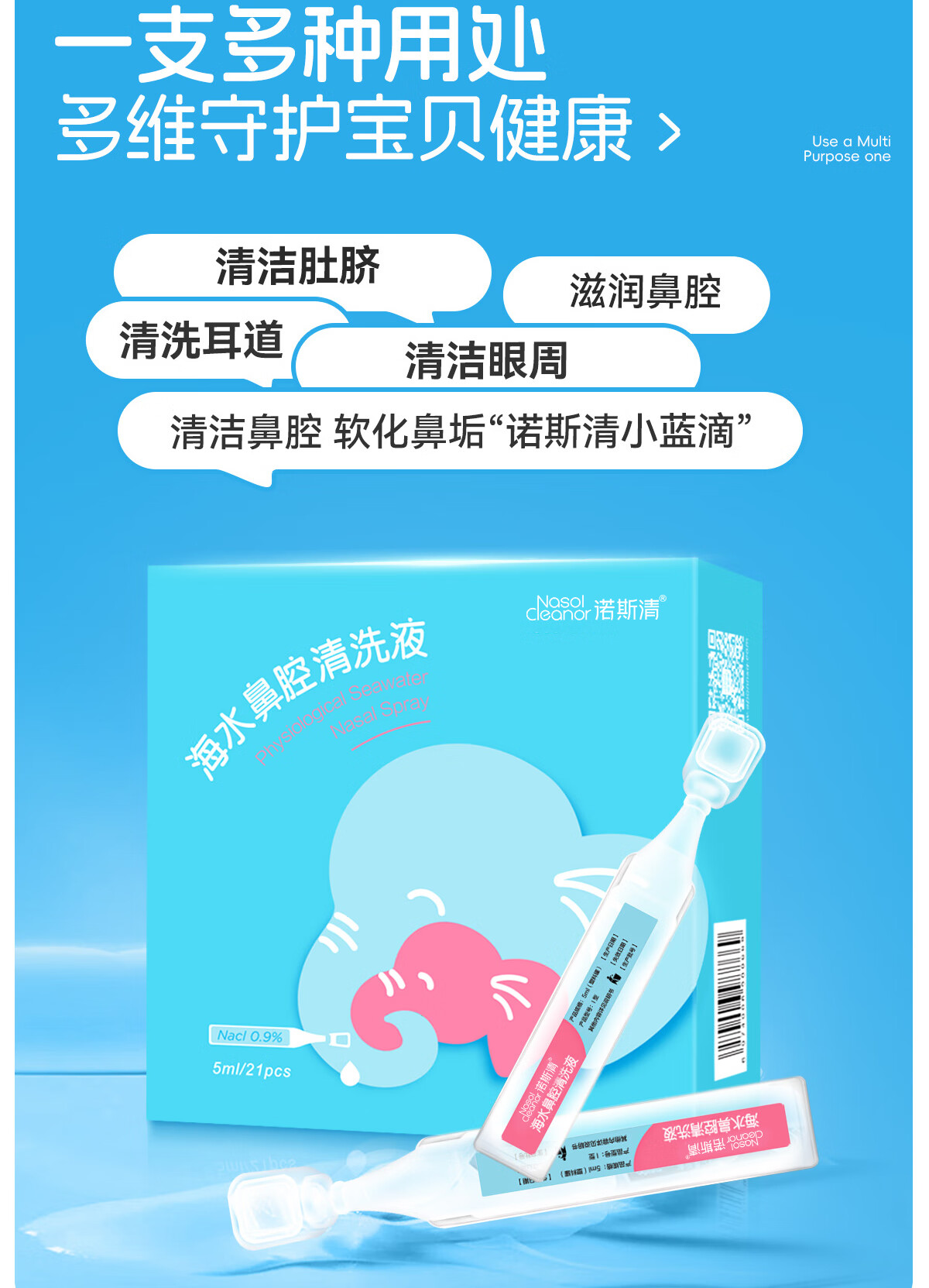 诺斯清生理性海盐水宝宝儿童滴鼻剂次抛洗鼻水通鼻屎鼻炎儿童生理盐水 【孕婴可用】次抛海水滴鼻剂5ml*21支