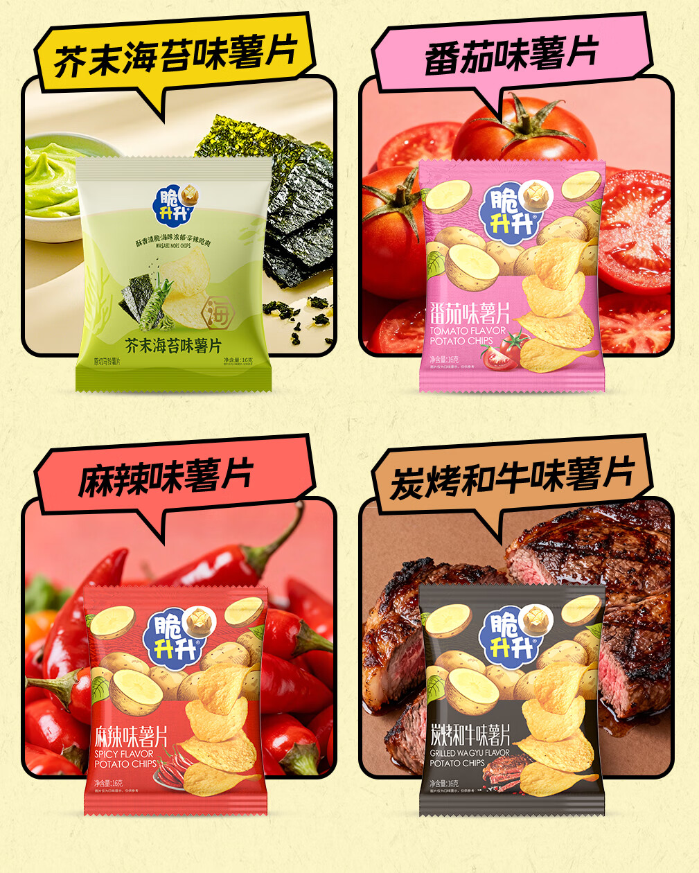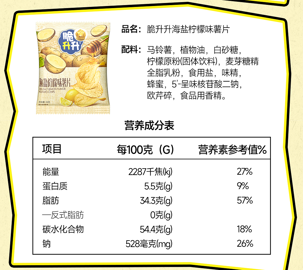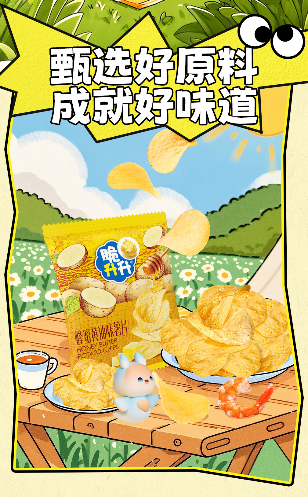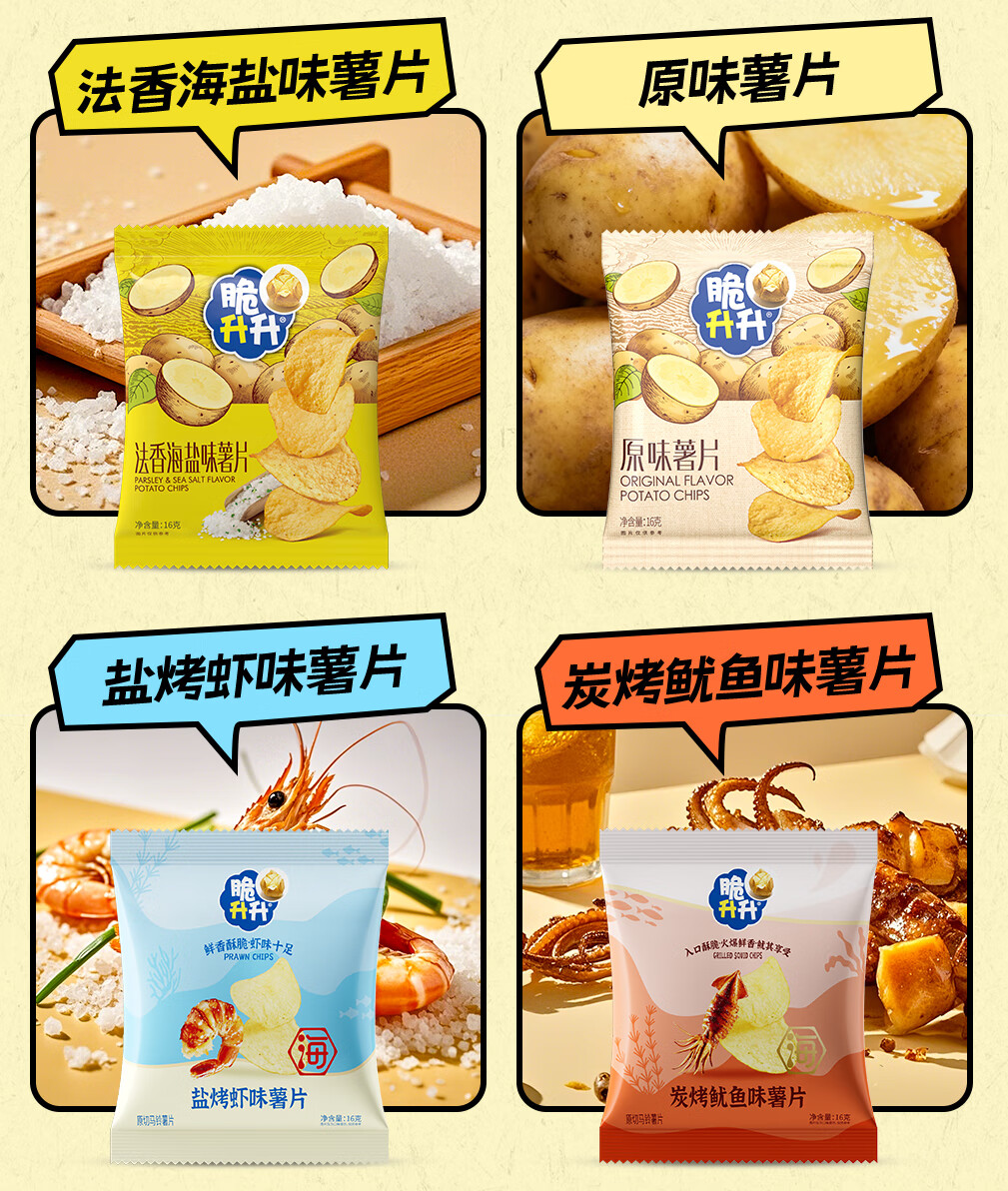 脆升升香脆薯片全口味16g*12包蜂蜜黄油和牛番茄鱿鱼味海盐柠檬休闲零食 蜂蜜黄油味12包