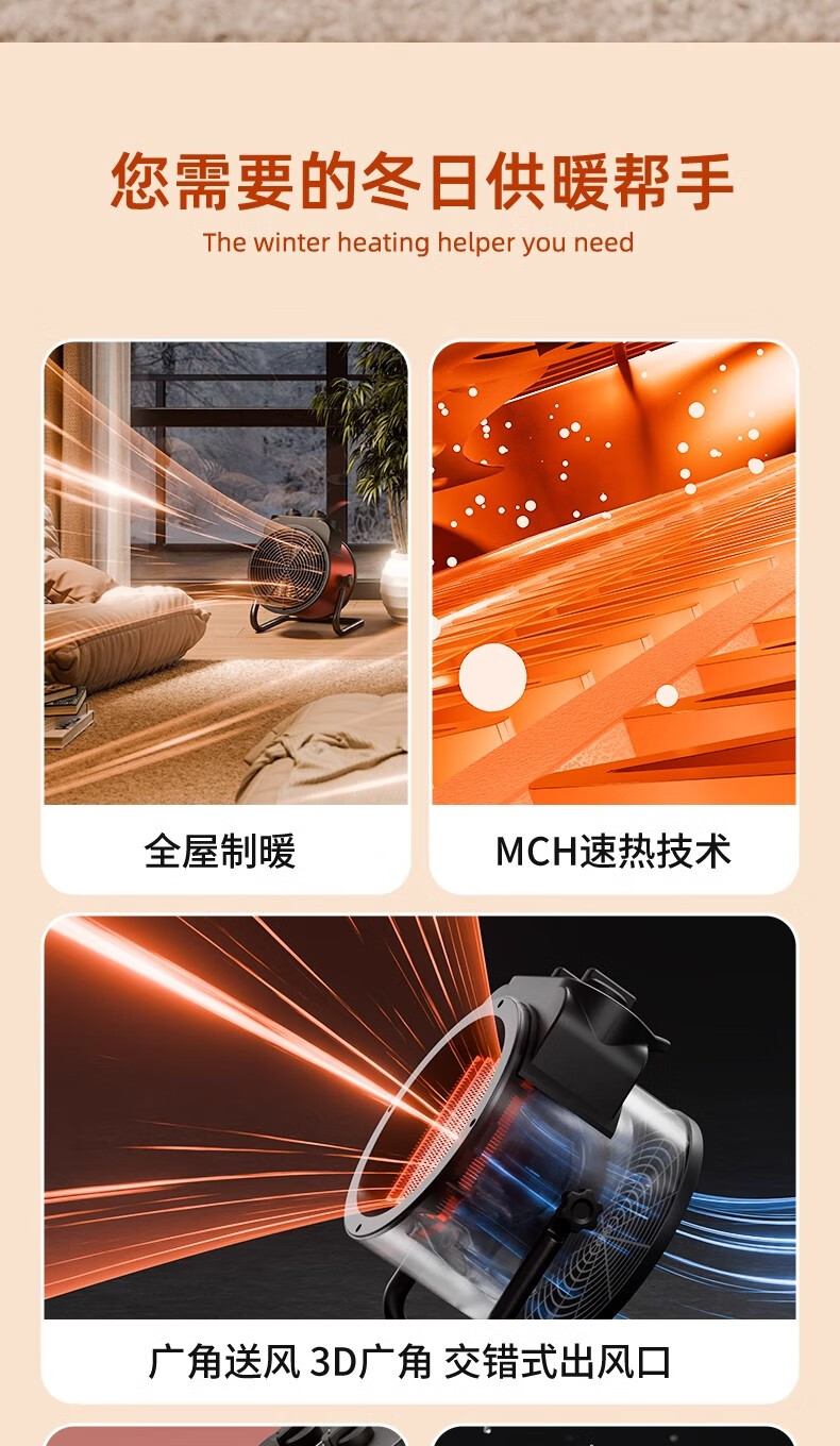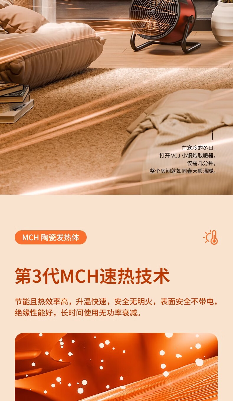VCJ暖风机工业取暖器家用节能小钢炮大功率热风机速热省电暖器2500W PTC陶瓷发热MGD2.5-P