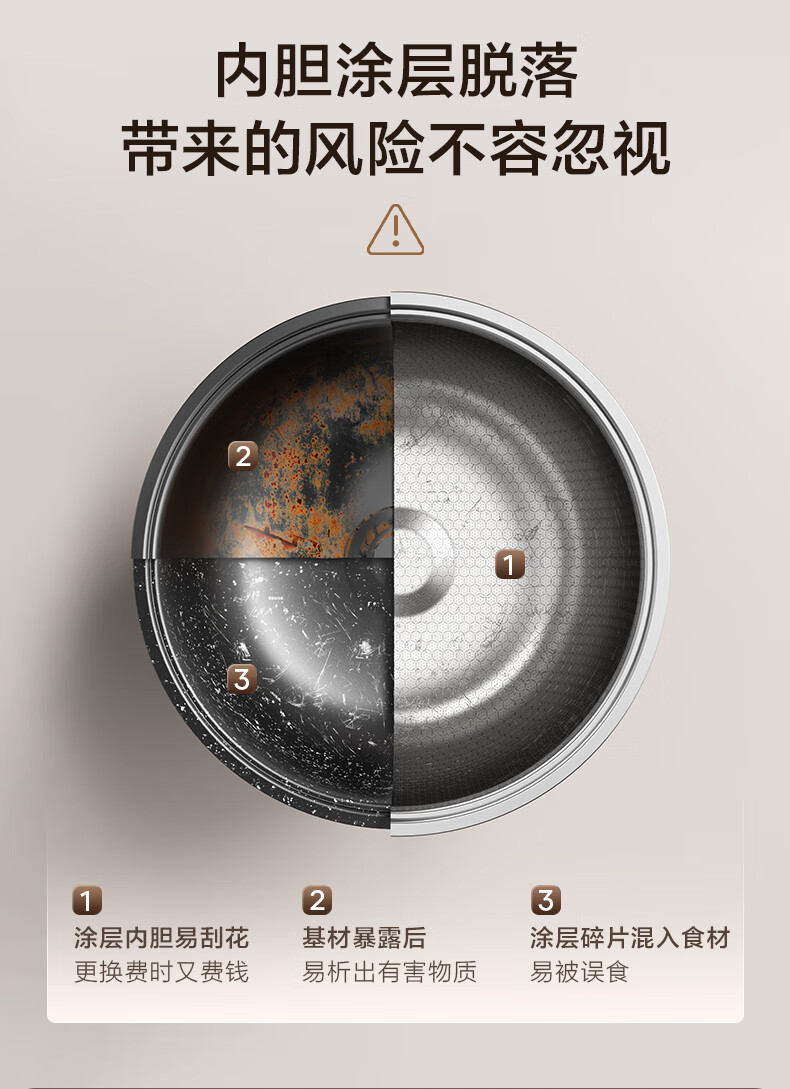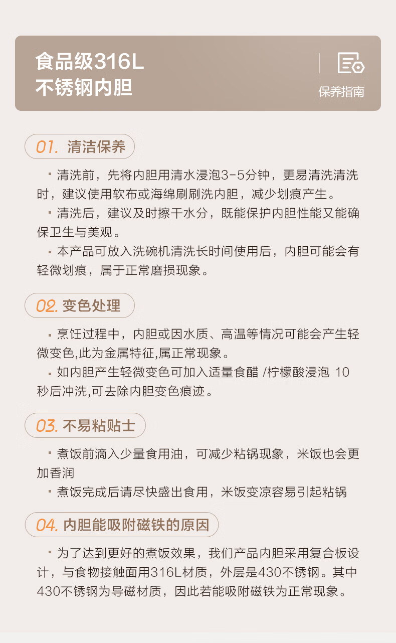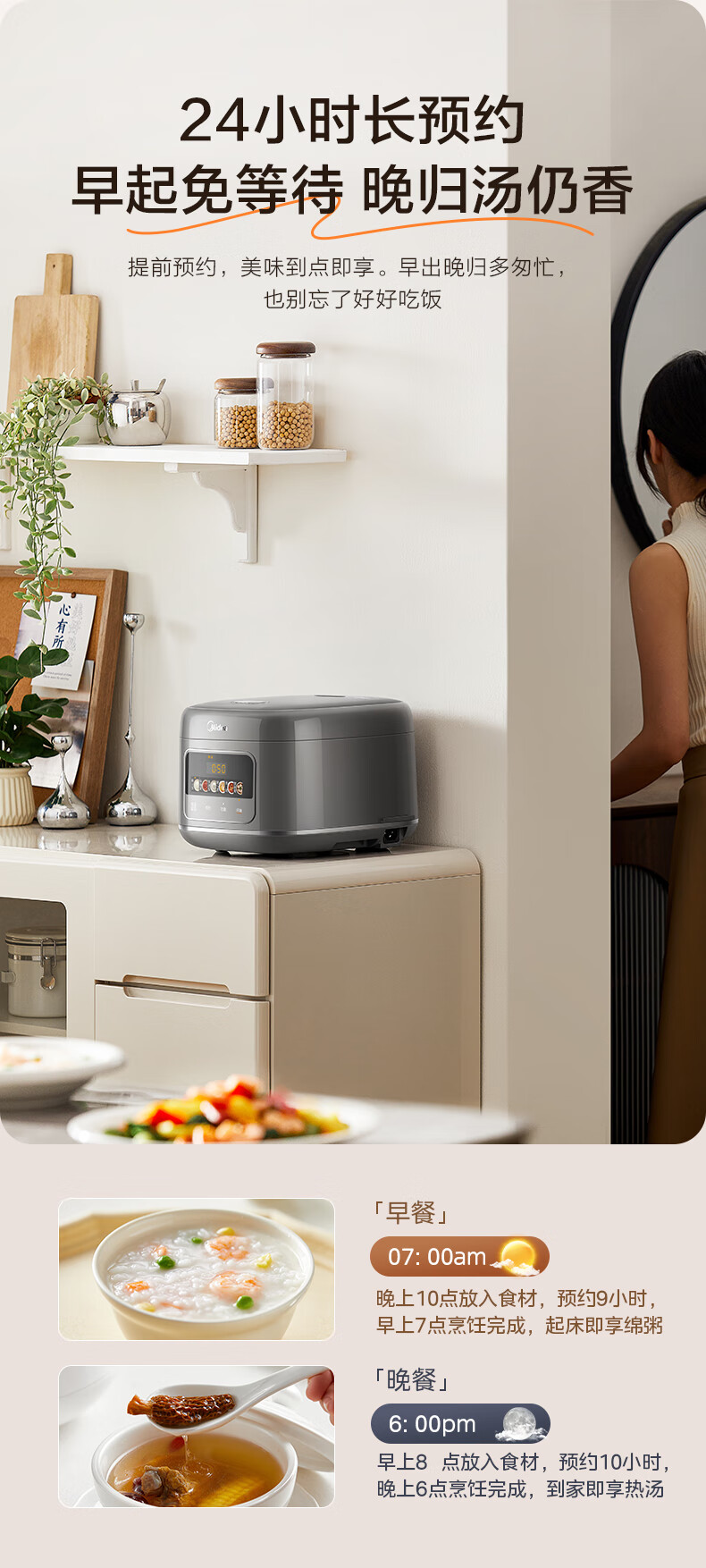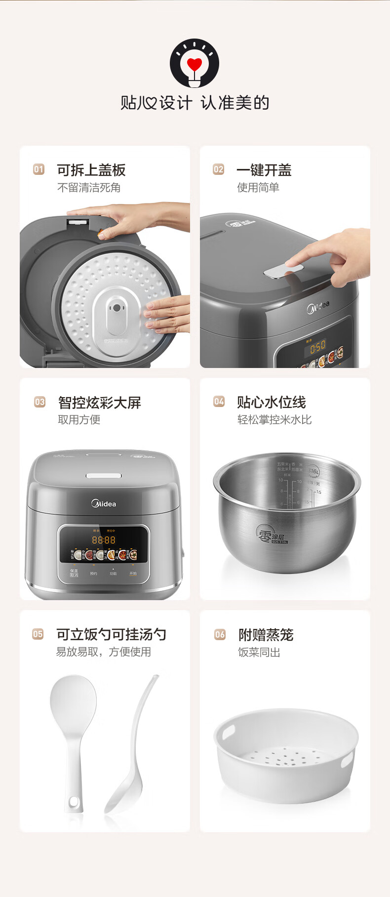 美的(Midea)电饭煲大布丁0涂层电饭锅4升316L不锈钢内胆3-4人家用多功能无涂层微压智能预约RE487S品牌官方