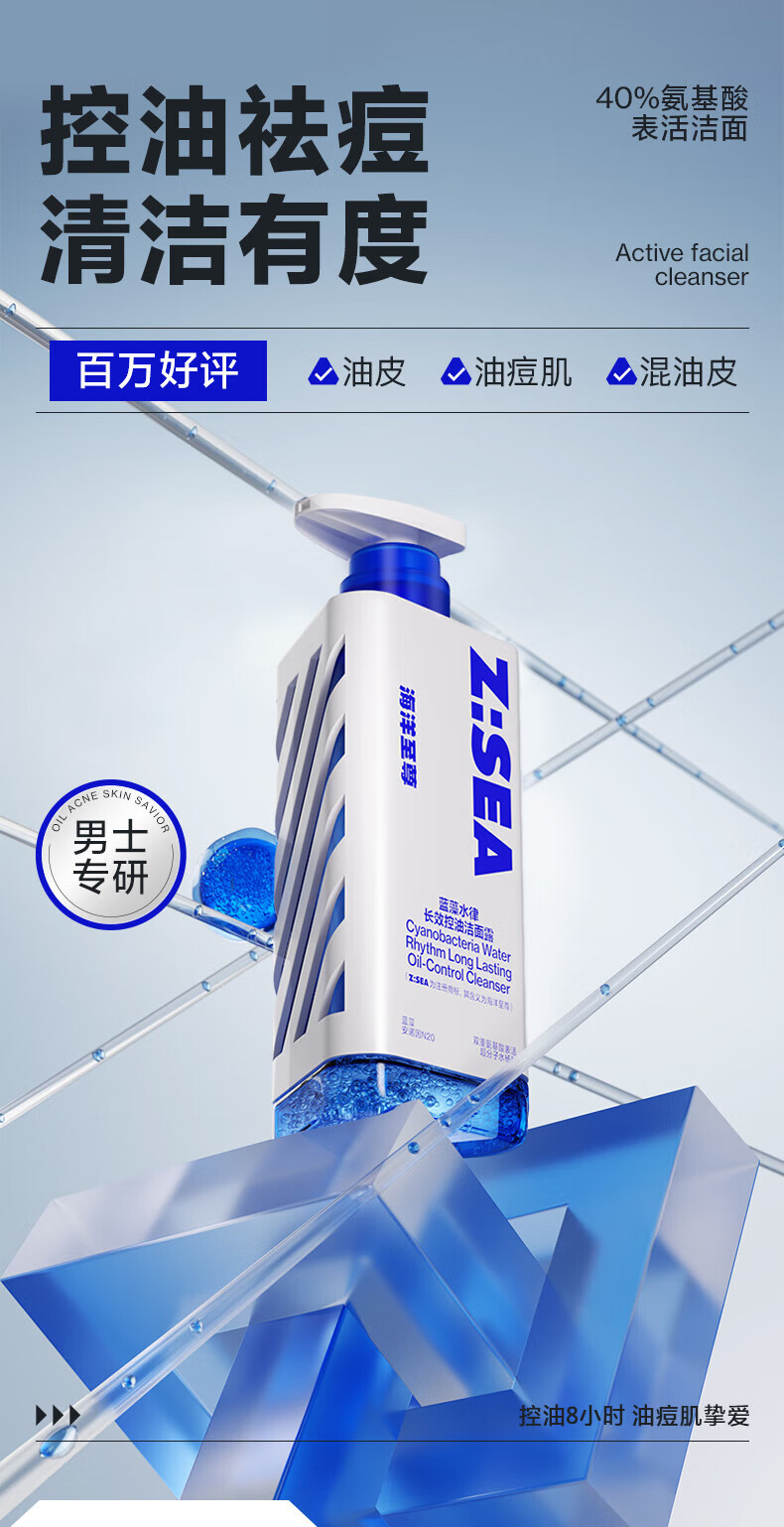 海洋至尊三棱镜氨基酸控油男士洗面奶150g去黑头祛痘洁面护肤品送男友礼物