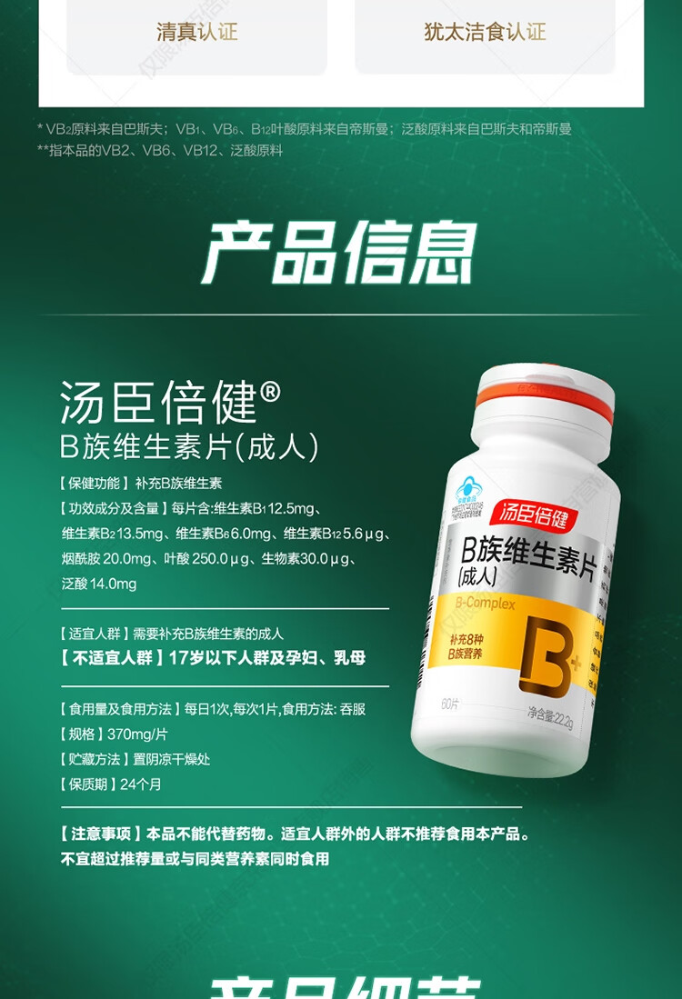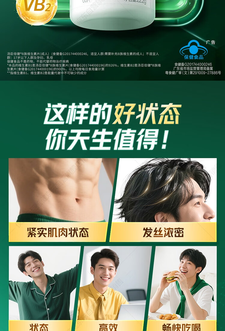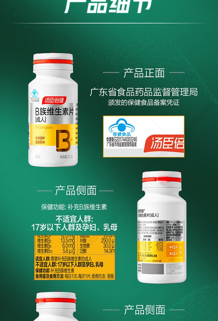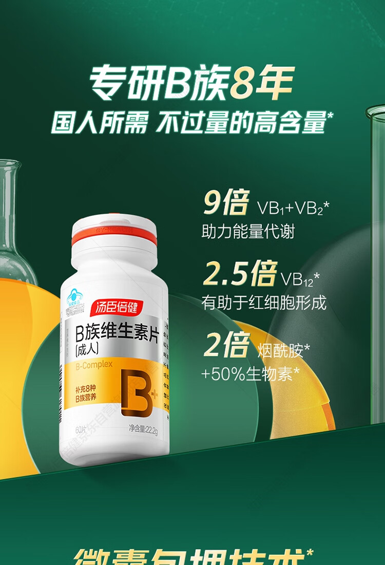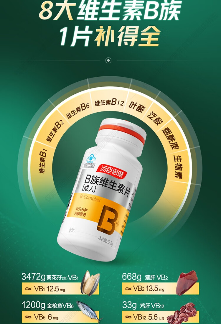 汤臣倍健复合多种维生素b族含8种维b1b2b6b12烟酰胺非甲钴胺生物素60片*2