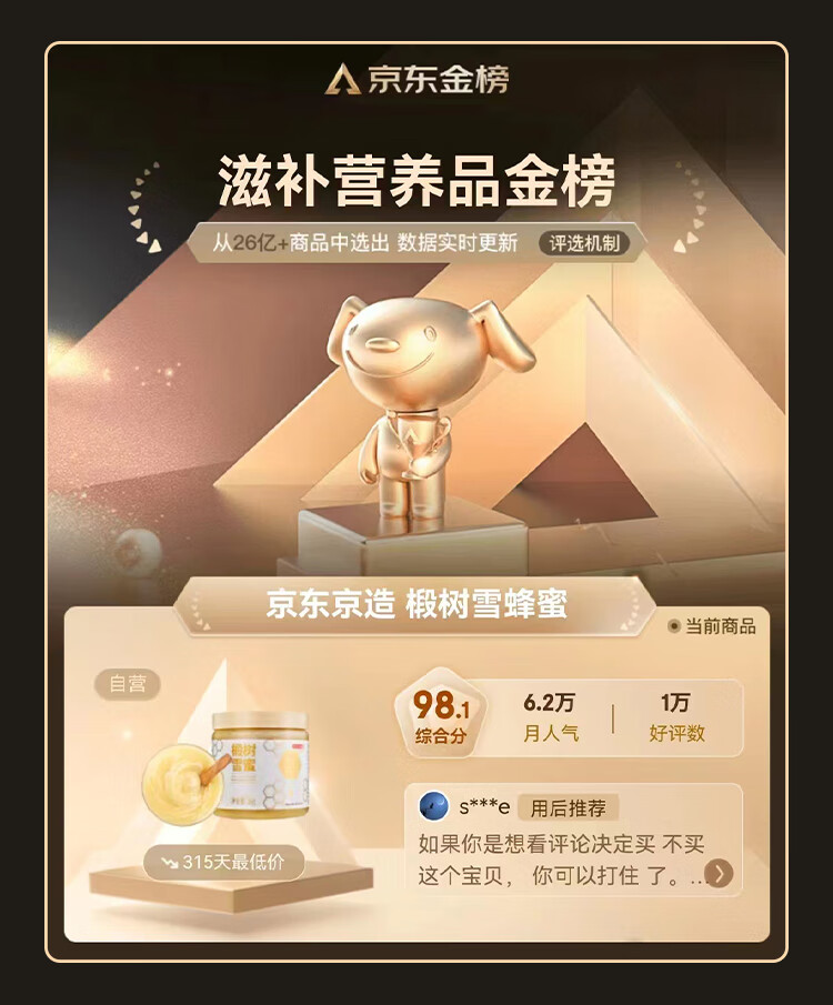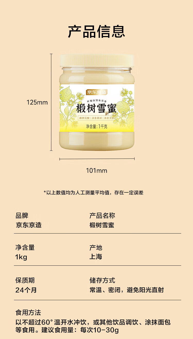 京东京造椴树蜜1000g长白山产纯天然蜂蜜营养品冲饮礼品送长辈父母
