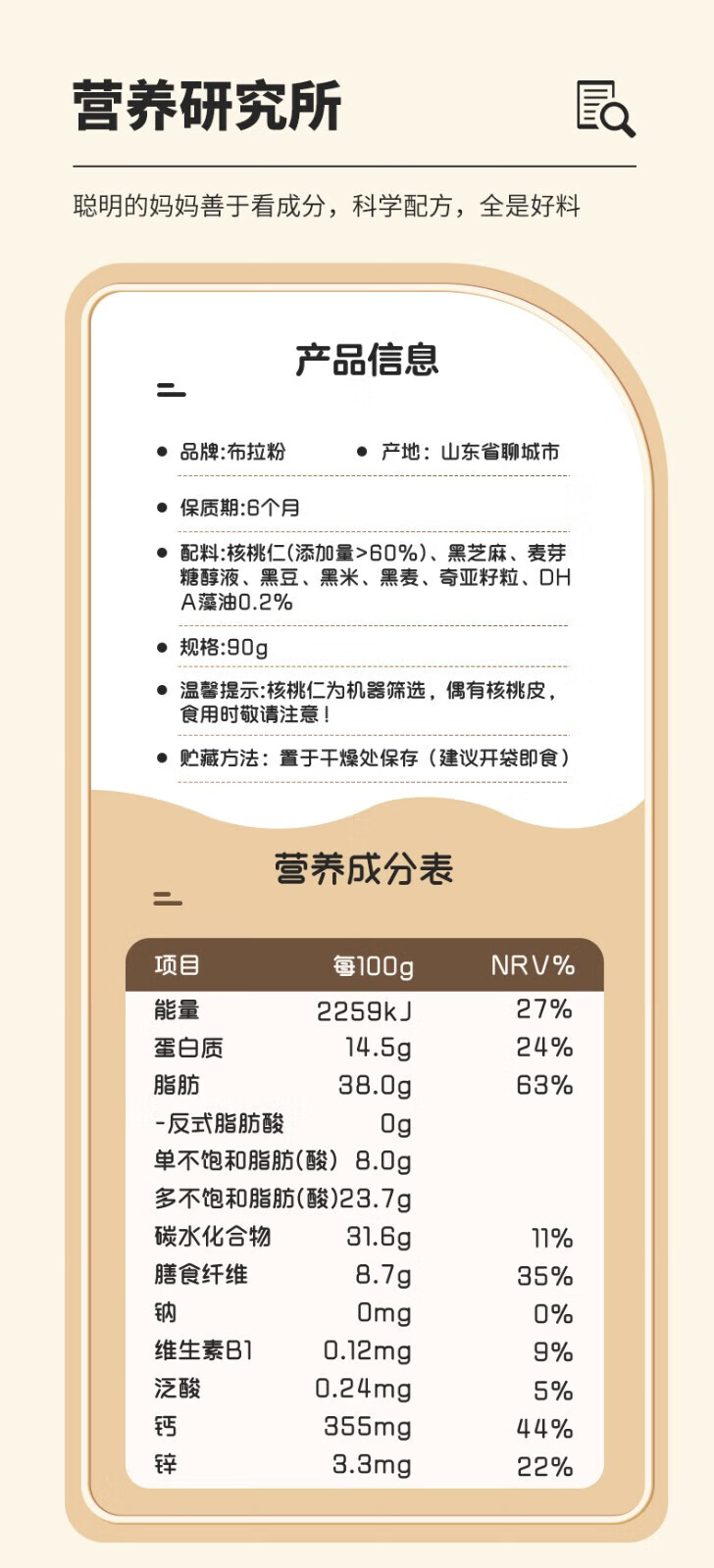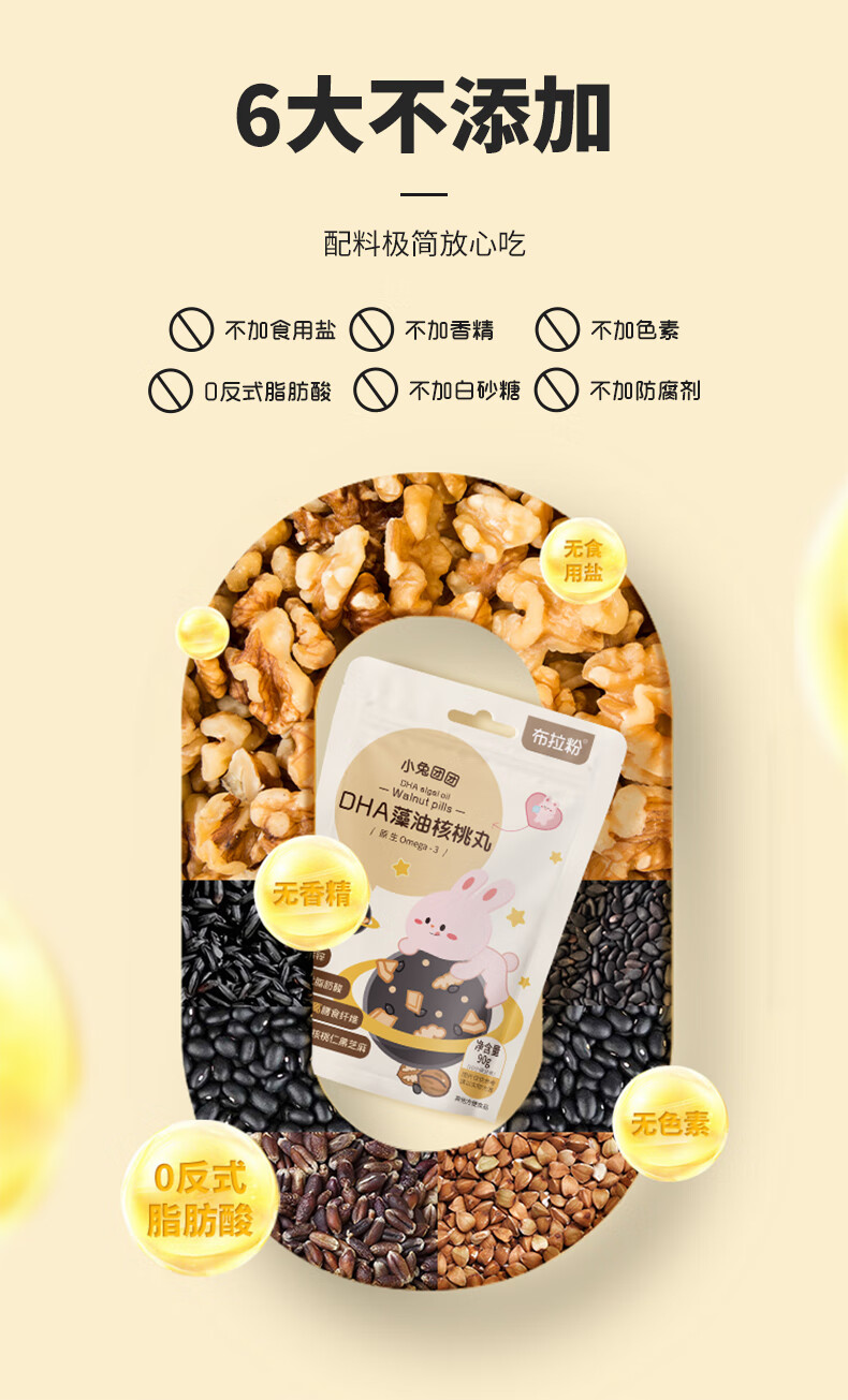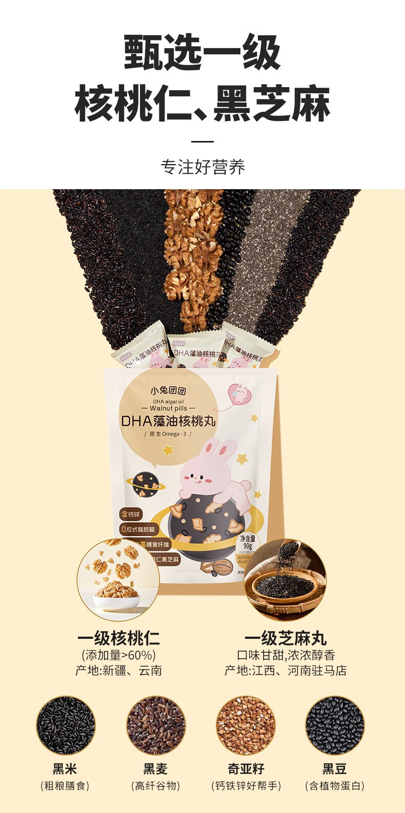 布拉粉DHA藻油核桃丸宝宝高钙黑芝麻丸奇亚籽核桃仁坚果儿童零食 【5袋】DHA藻油核桃丸