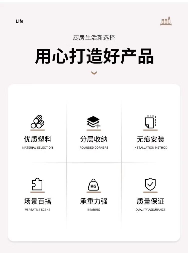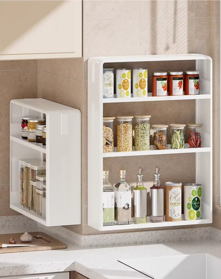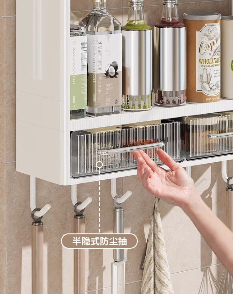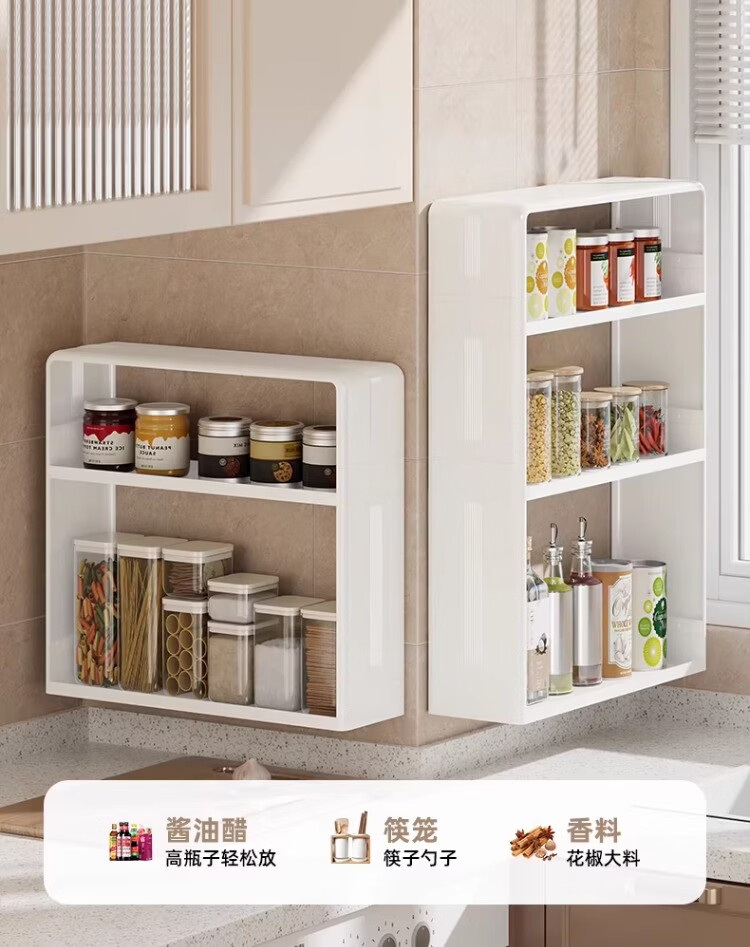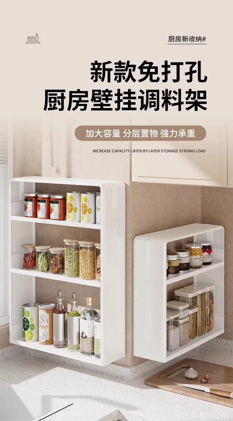 尔思家厨房调料置物架调味料免打孔壁挂式收纳架多功能免安装油盐酱醋架 【高款】三层无抽屉