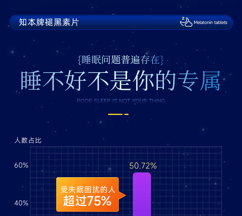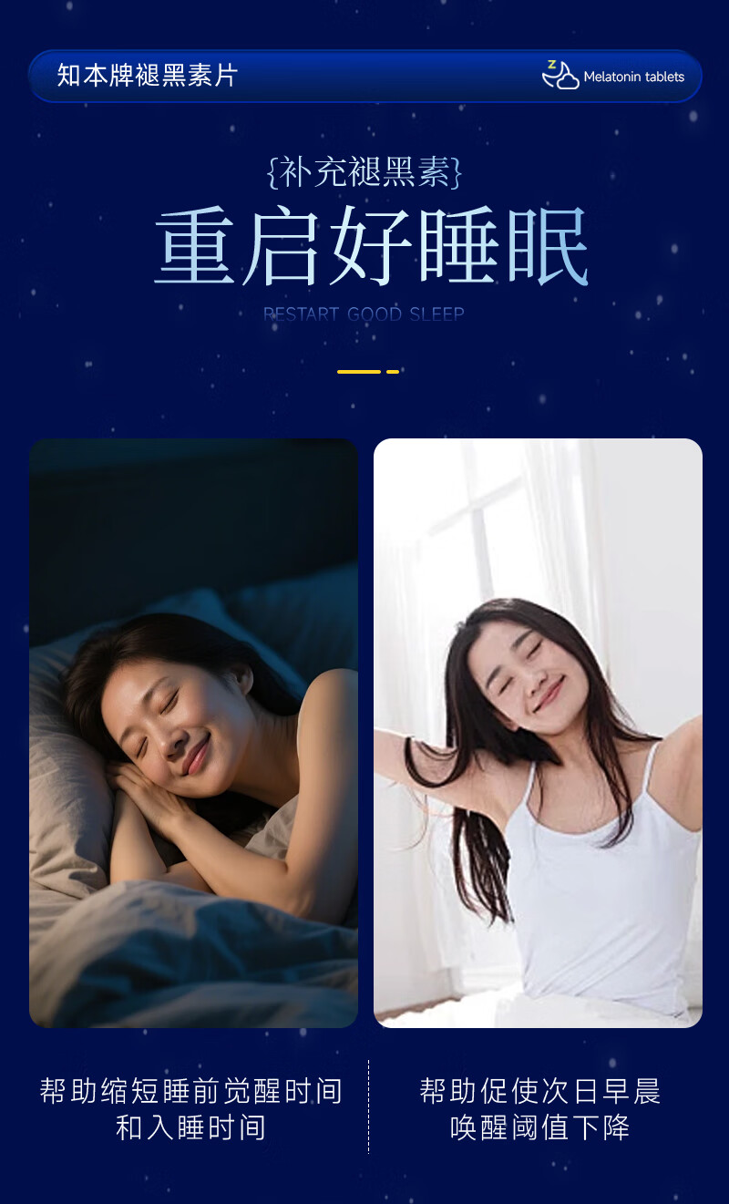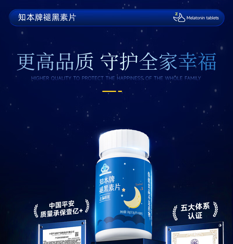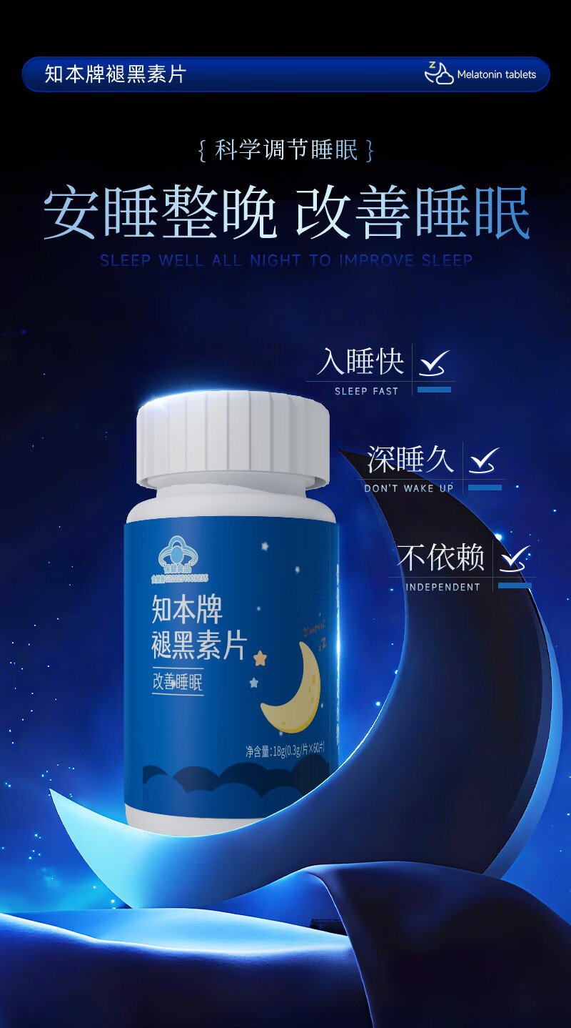 知本褪黑色素维生素b6改善睡眠失眠助眠 深度安睡眠60片退黑素非gaba 【升级版】褪黑素 60片*1瓶