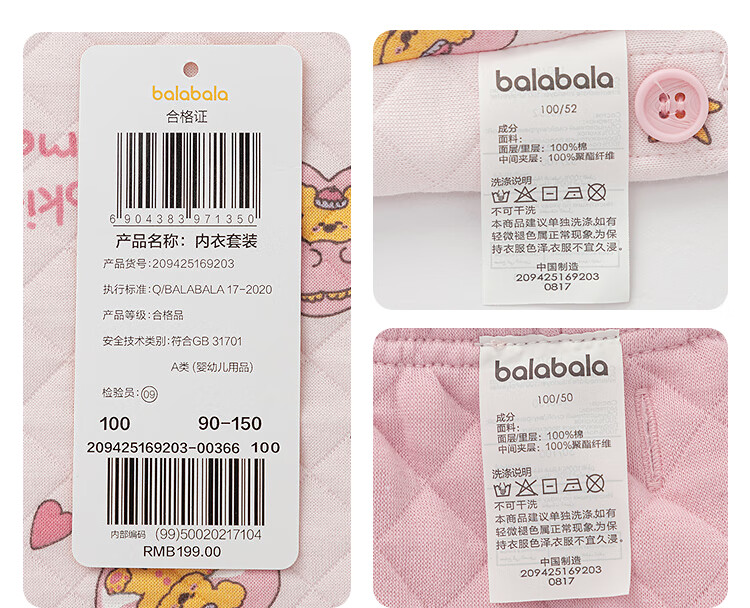 巴拉巴拉balaOne儿童内衣套装男童女童2件套童装2025秋冬夹棉209425169203