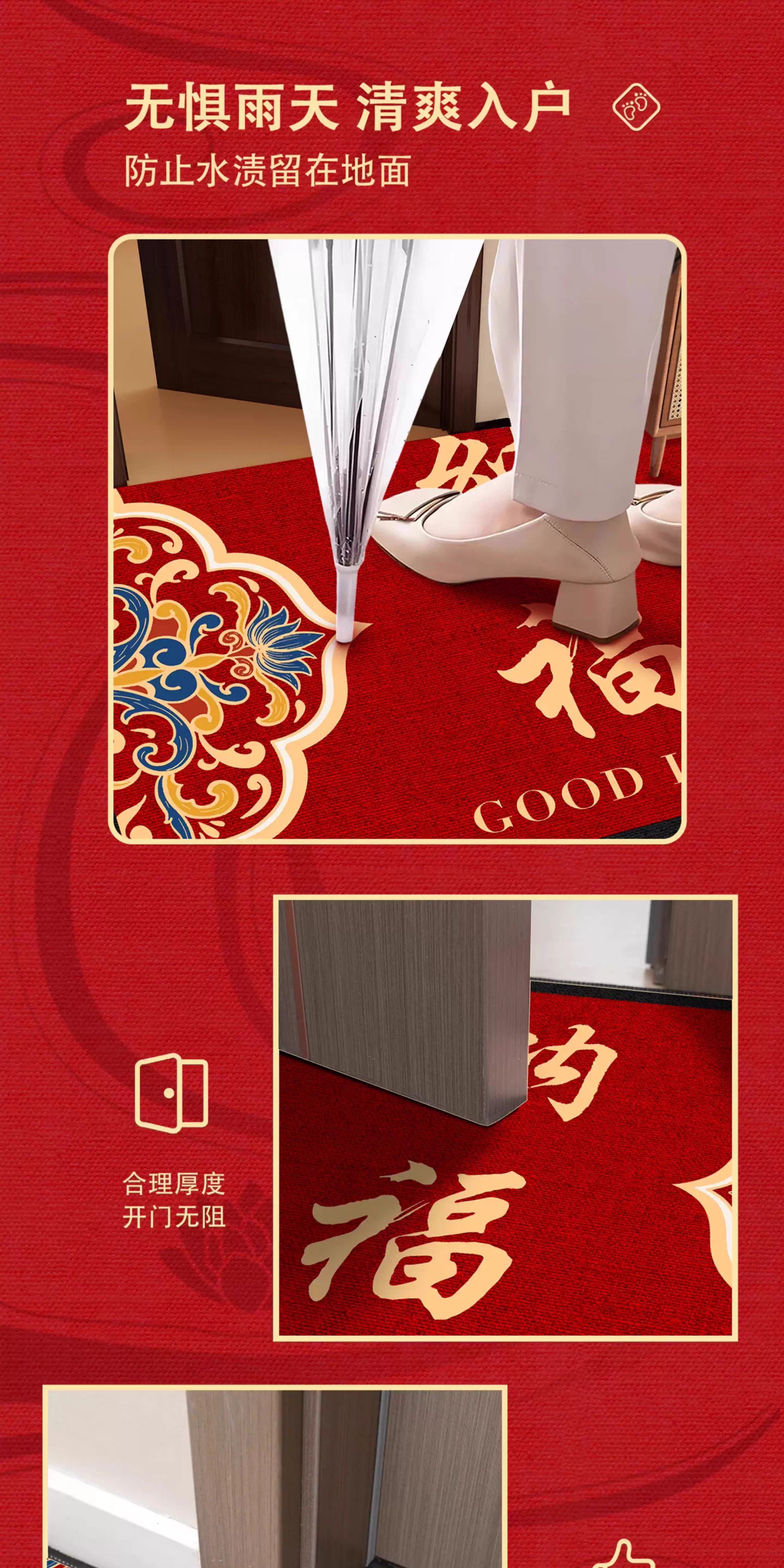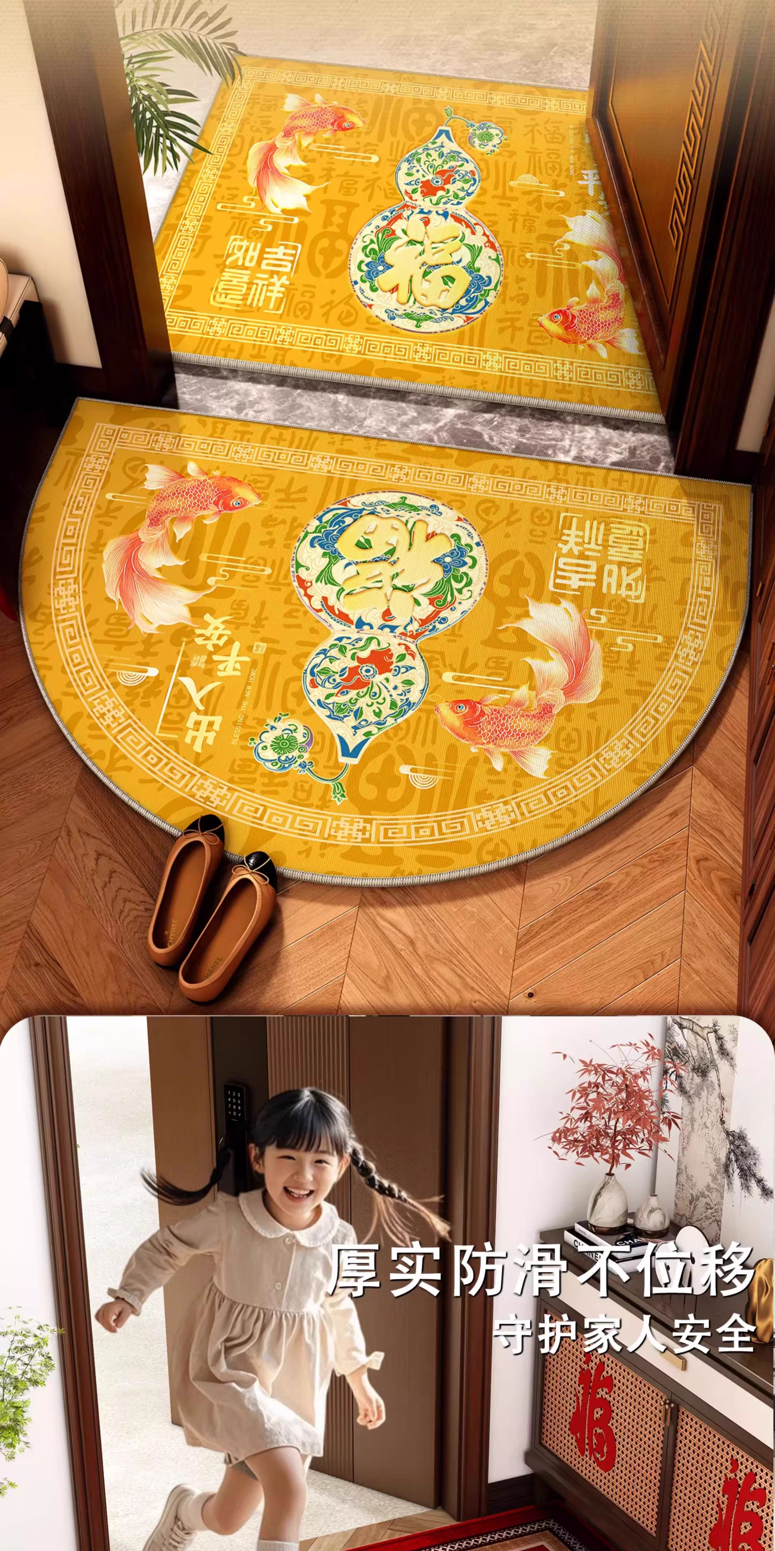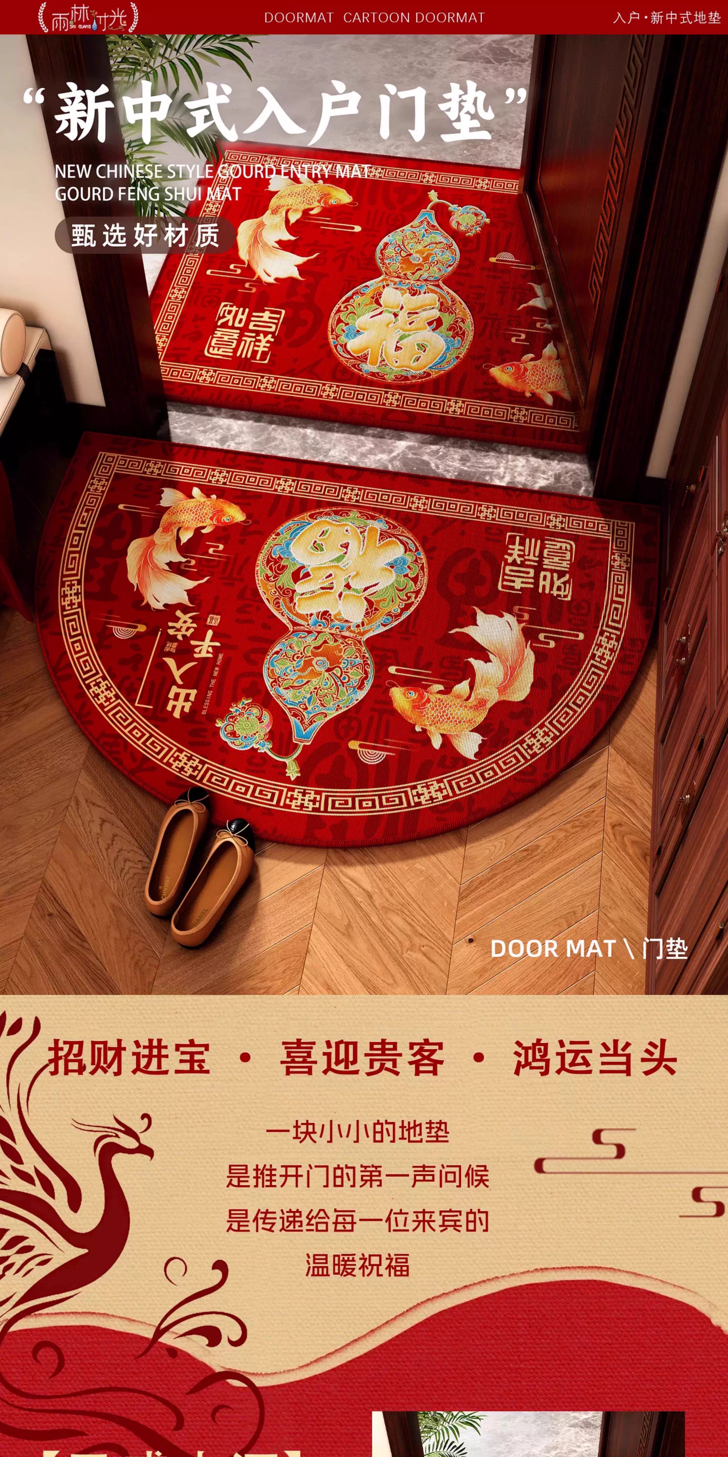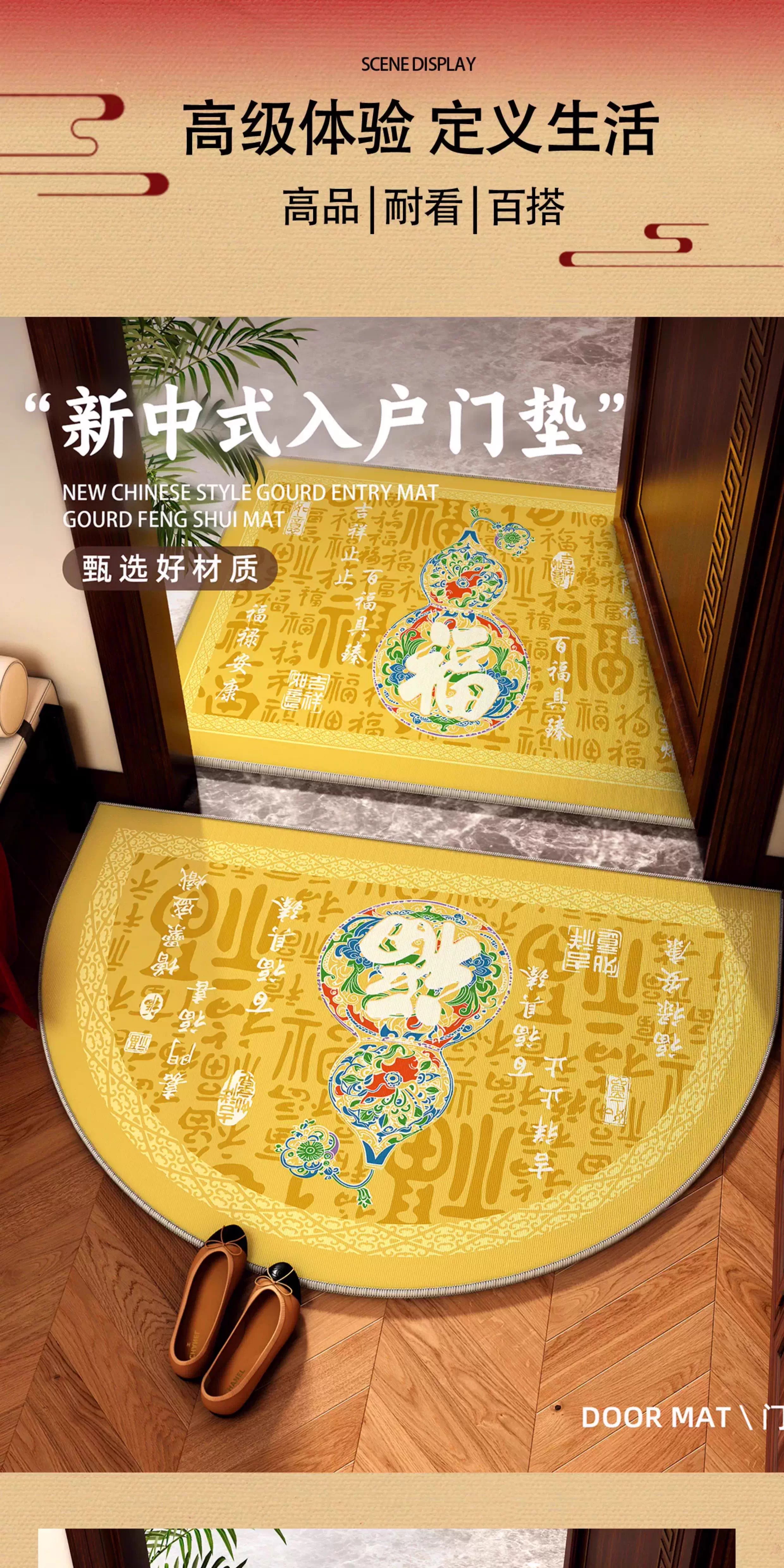 情更浓福禄平安新中式绿色入户门地垫半圆形进门喜庆乔迁门口脚垫地毯垫 G圆满F 40*60CM